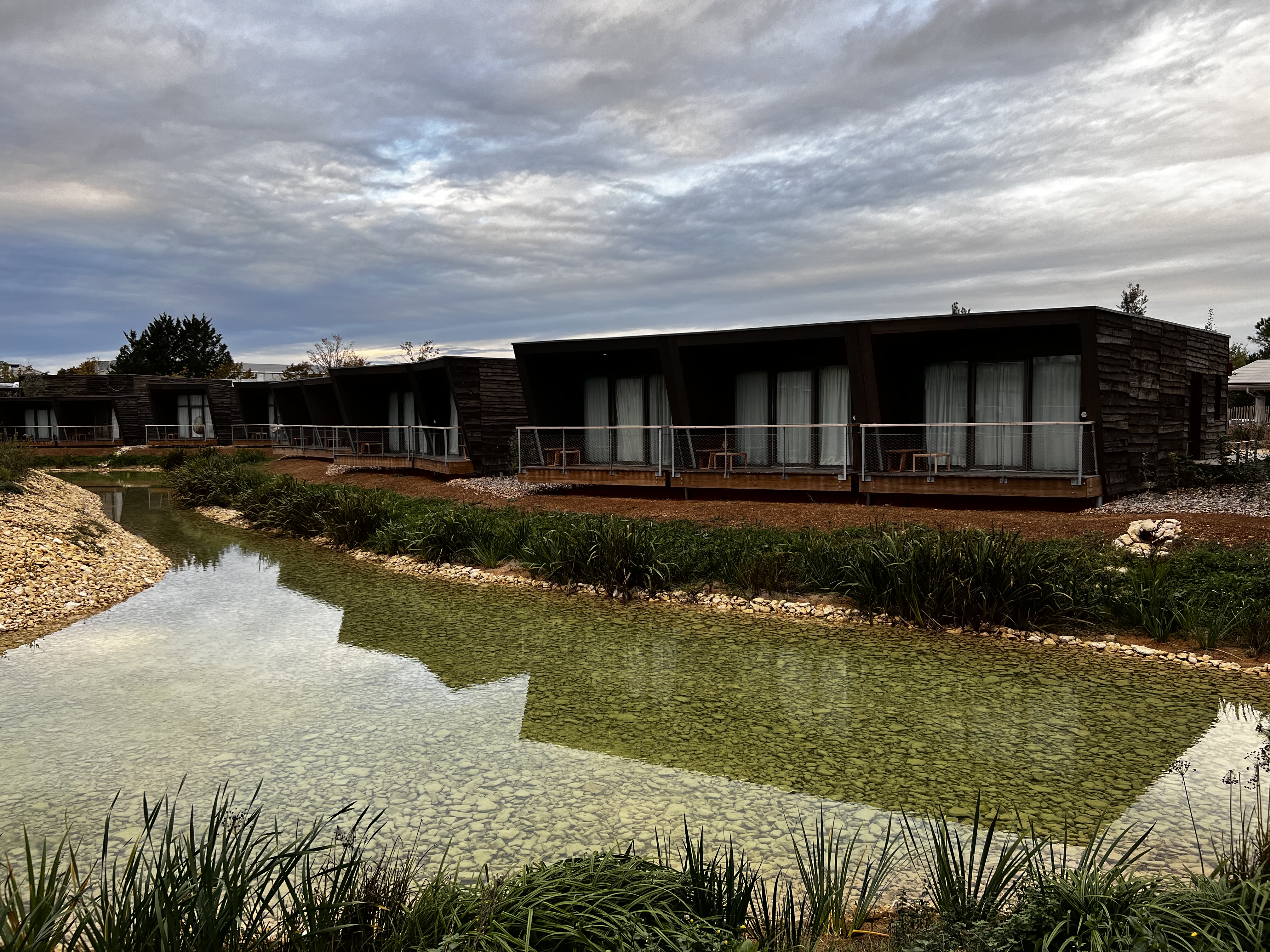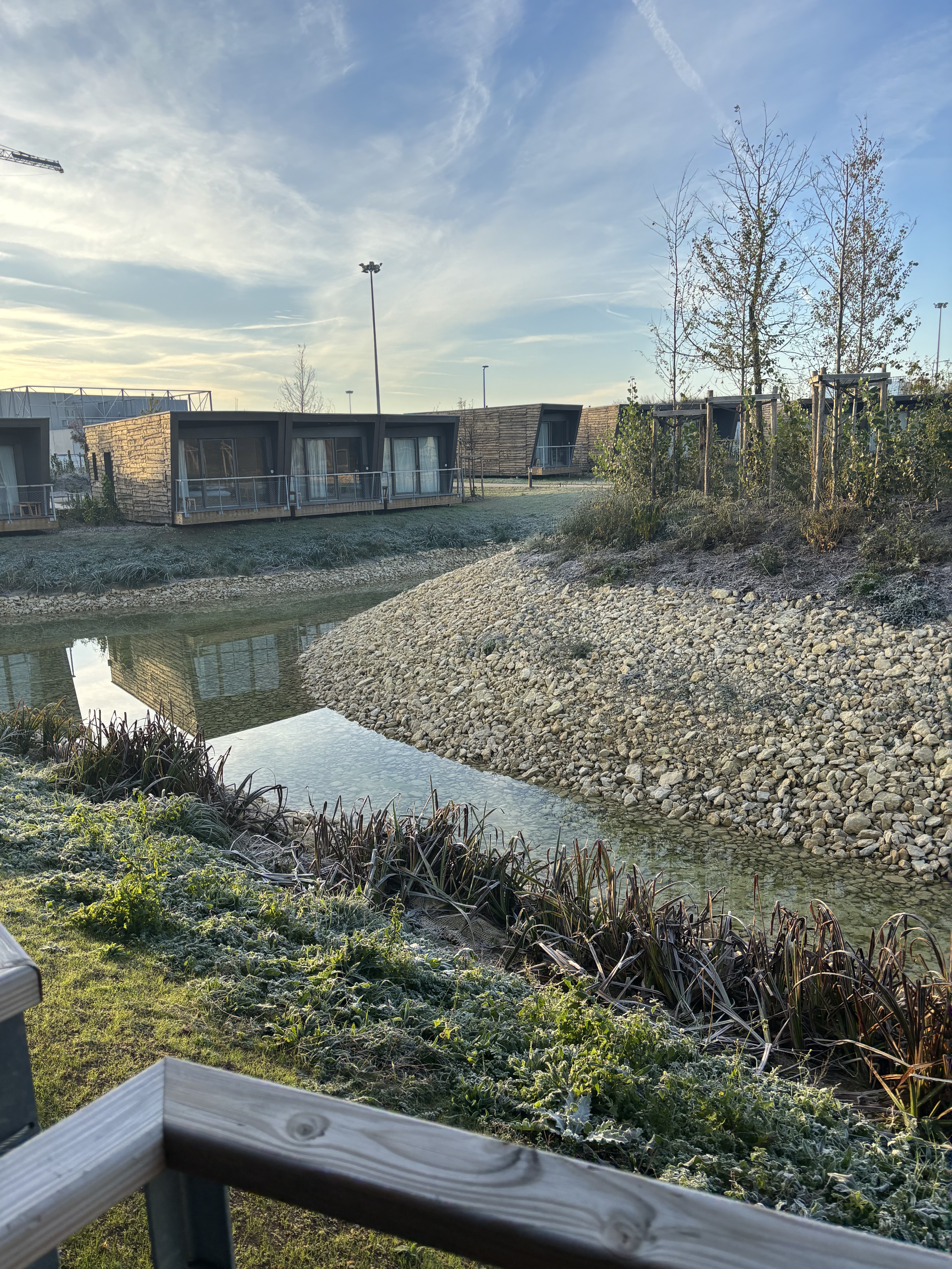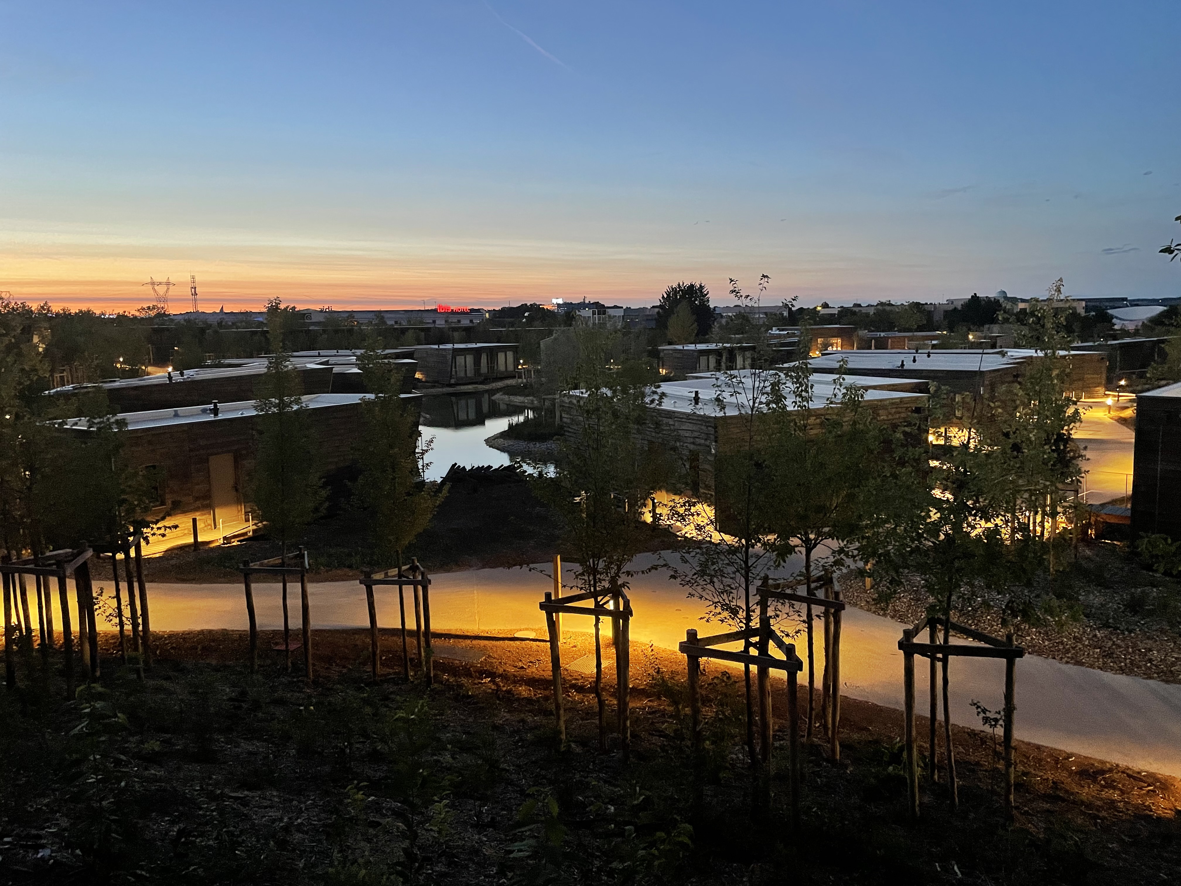 Concept hôtelier novateur (chalets en bois) à proximité de l'entrée du parc! Tout y est : le bois, l'eau et la nature naissante. A tester sans hésitation.