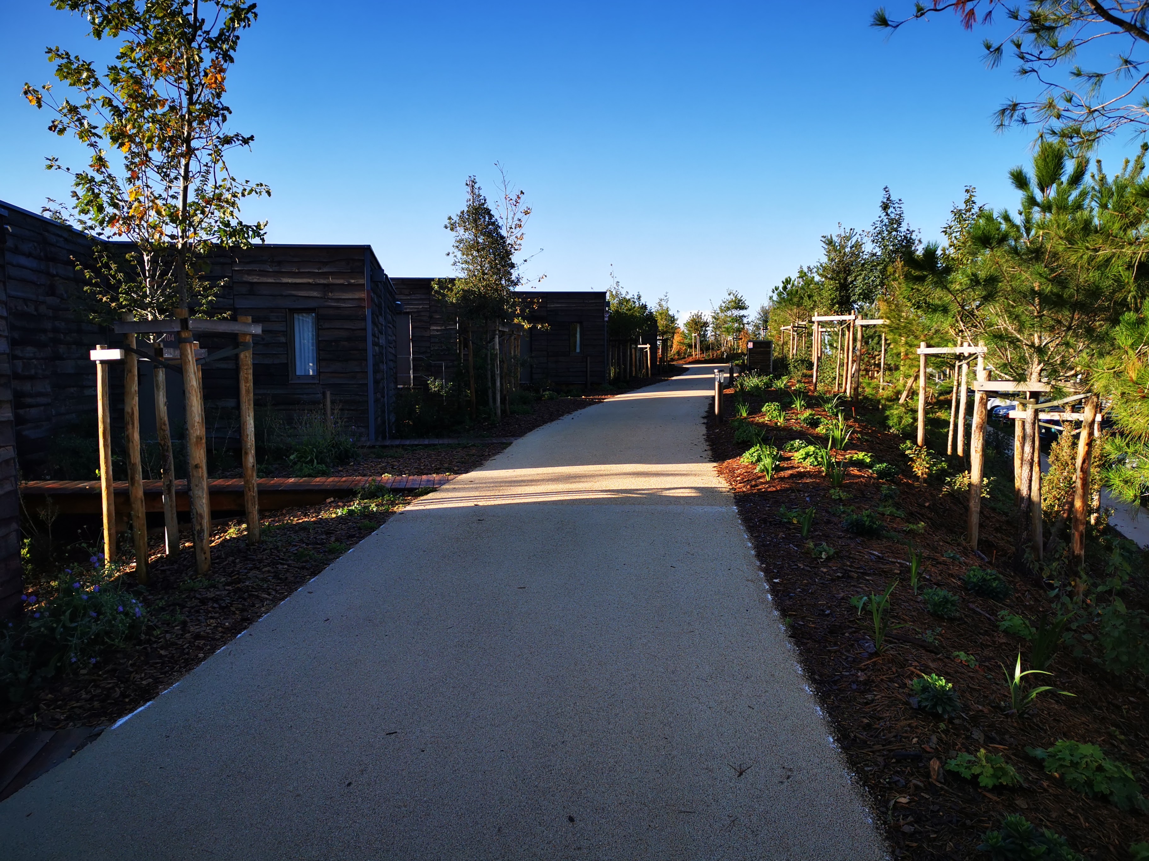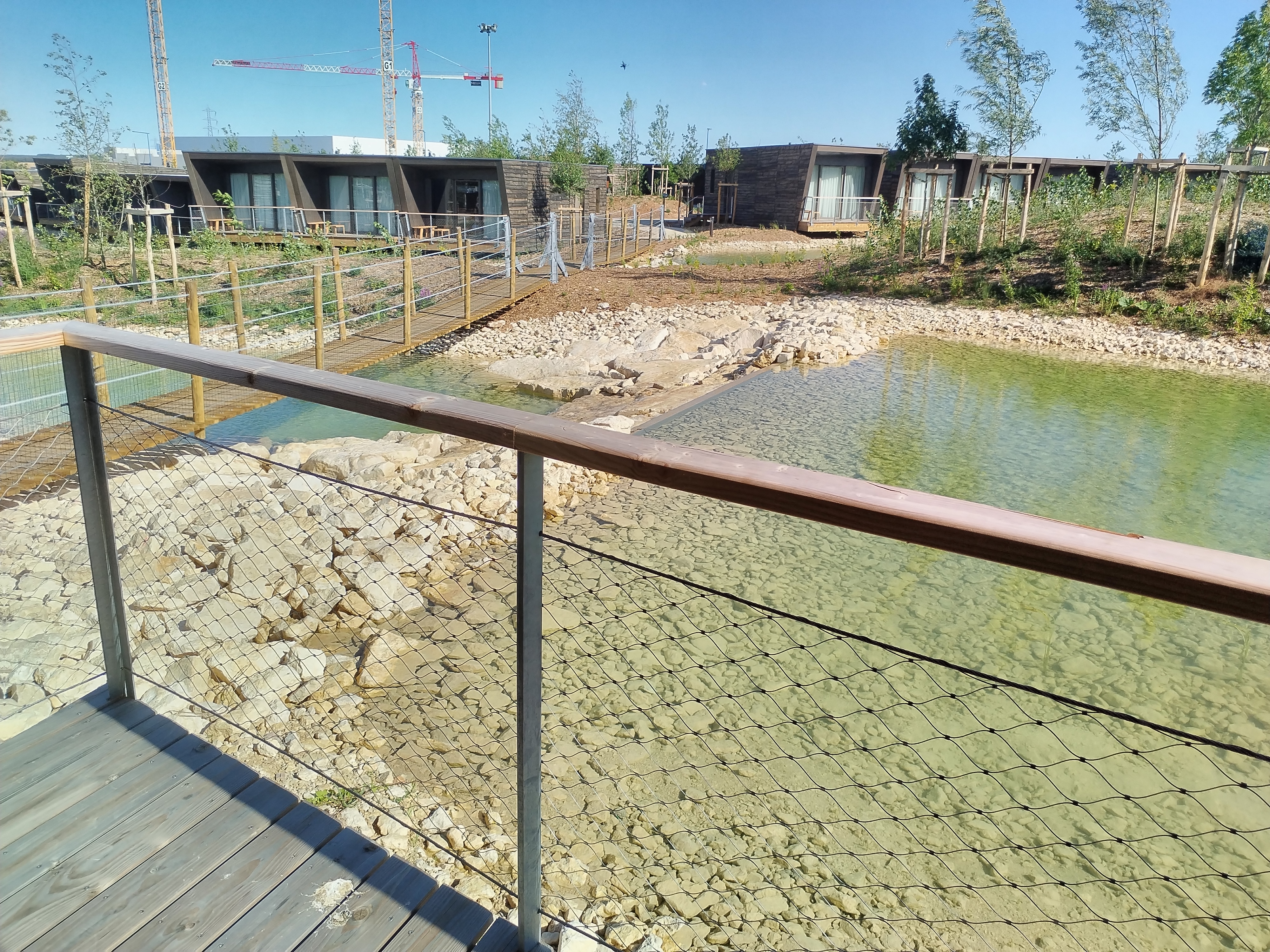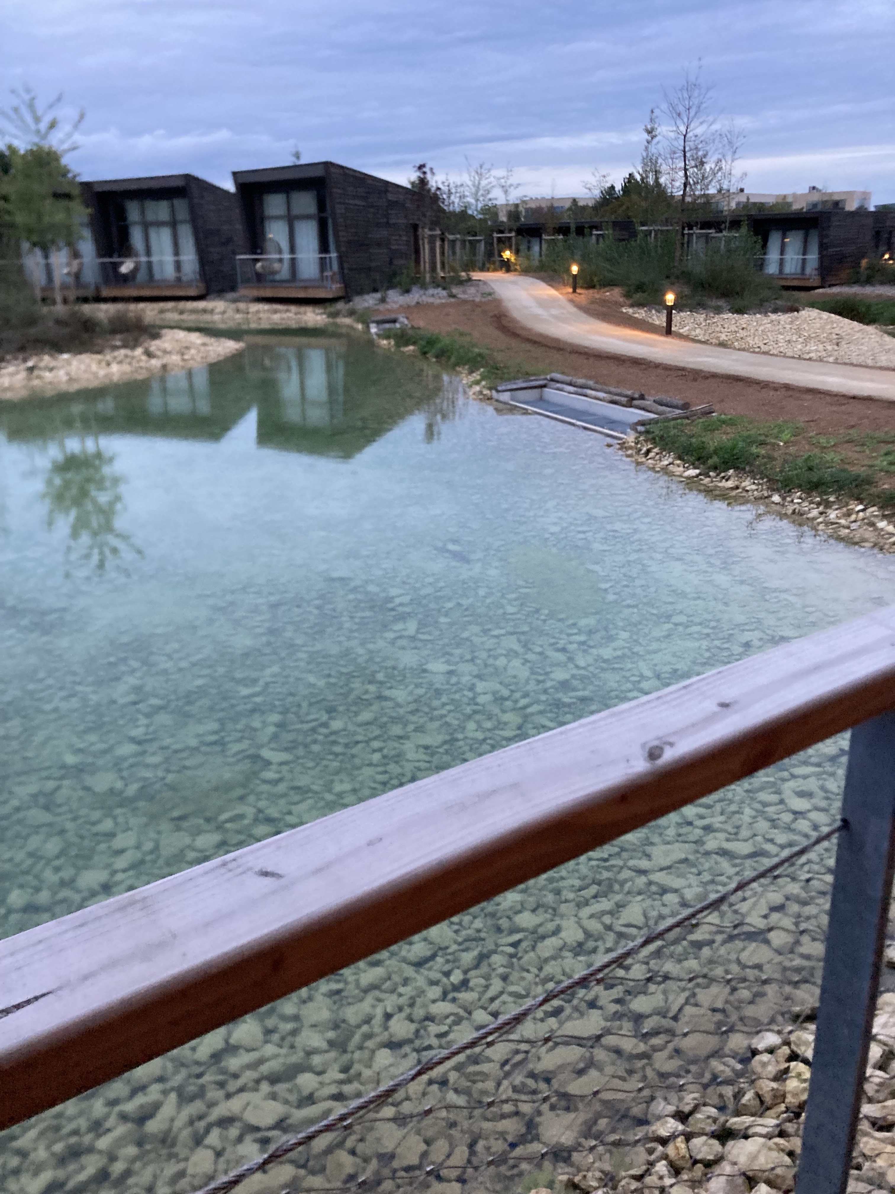 Concept hôtelier novateur (chalets en bois) à proximité de l'entrée du parc! Tout y est : le bois, l'eau et la nature naissante. A tester sans hésitation.