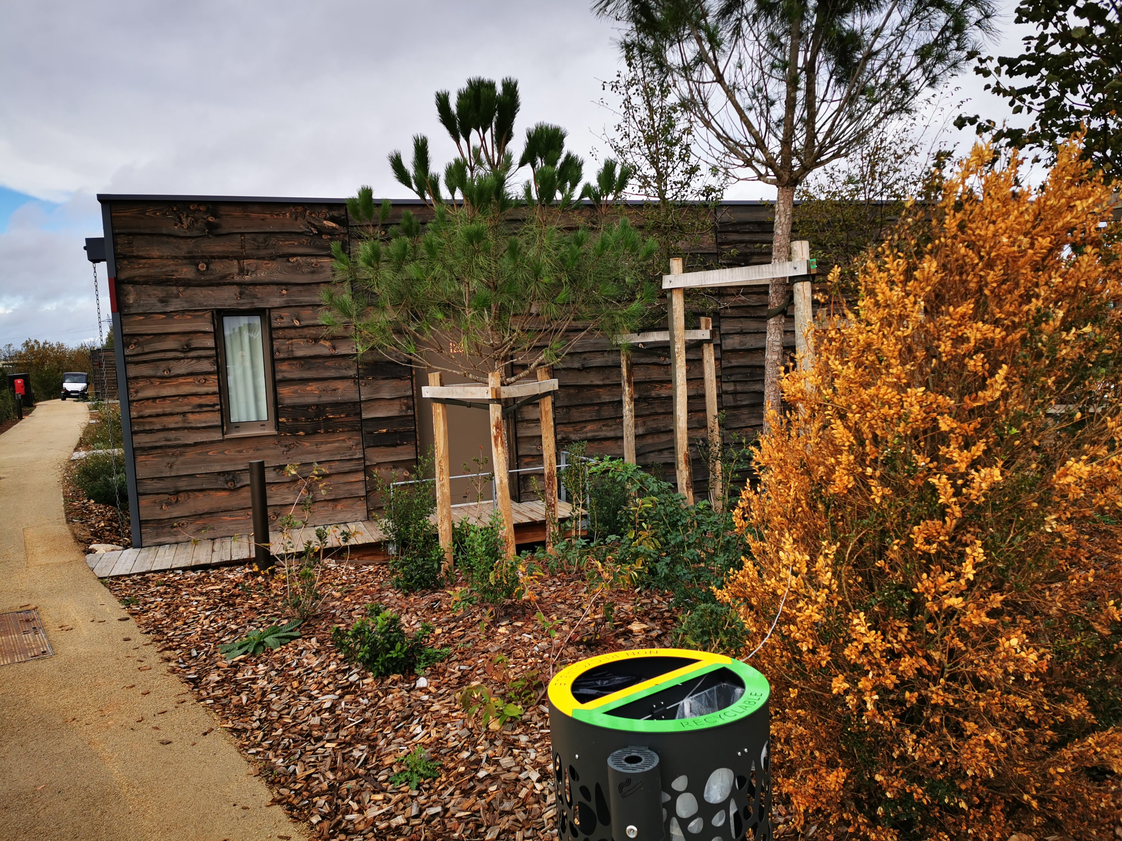 Très propre, neuf, materiau noble, bonne literie, douche chaude, chauffage au top pour 4 degrés dehors, place de parking d'abord pour les voit electr proche entrée et ensuite les autres motorisations. Petit dejeuner idée originale avec produits bio de qualité mais j'aurais quand même préféré buffet, personne accueil très professionnel, parc unique sympa, vis a vis si dehors en même temps que dautres. Et pour ce qui nous concerne, j'aurais pu mettre 1 étoile mais c'est exceptionnel, pas de téléphone à l'accueil qui fonctionnait à 1h du matin, pas de telephone qui sonnait au numéro indiqué, la cata. Mais voilà globalement très bien.