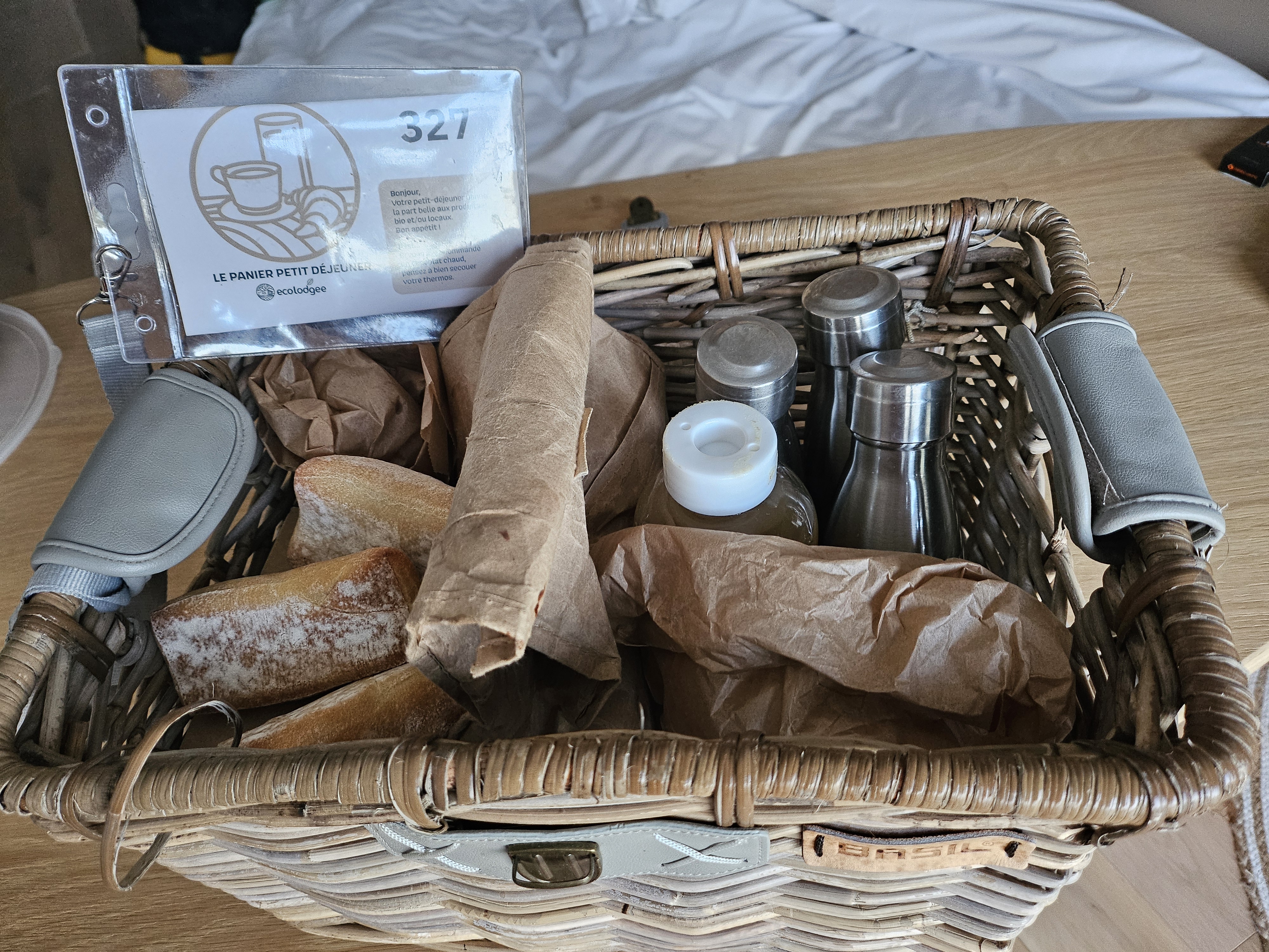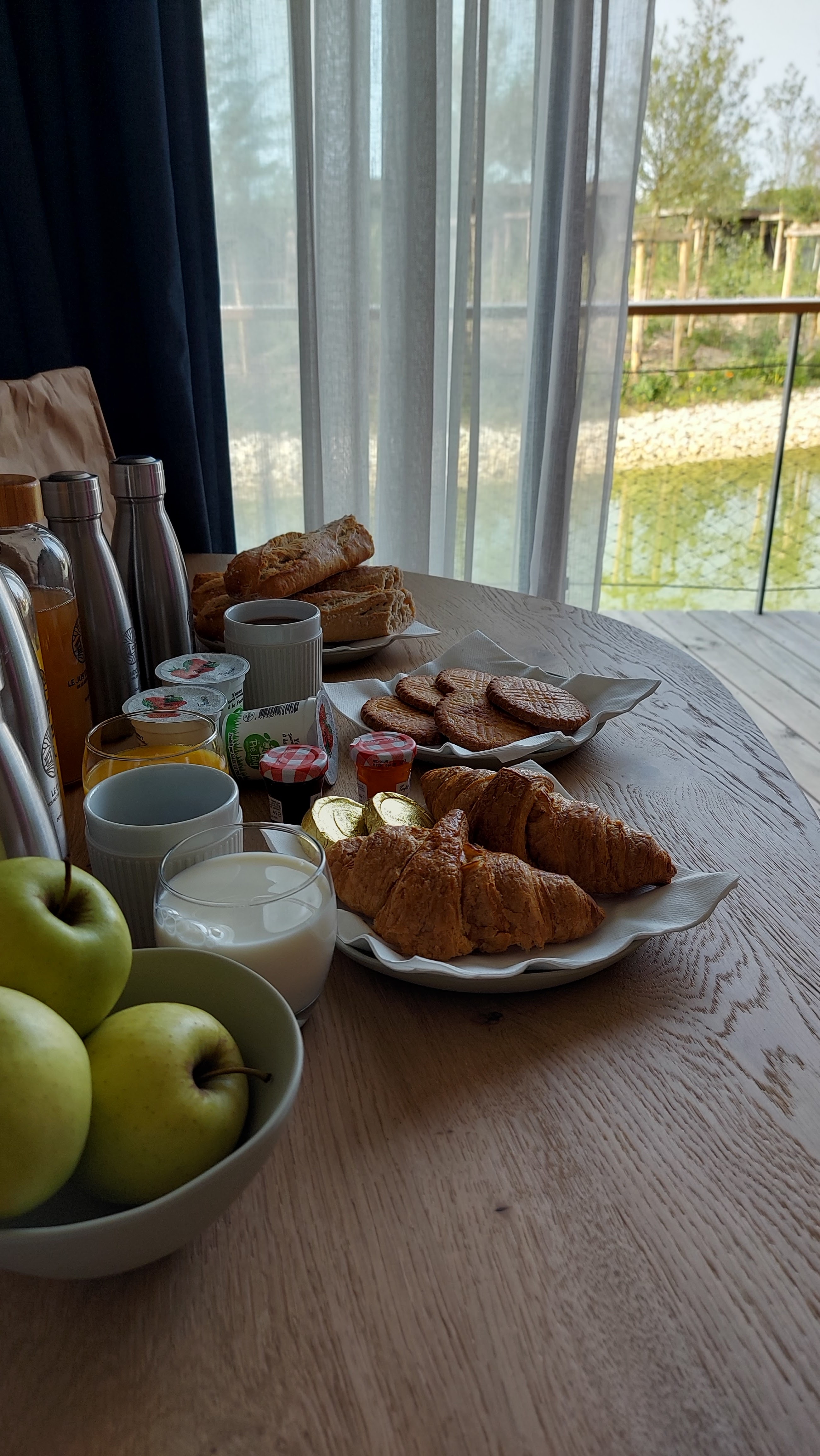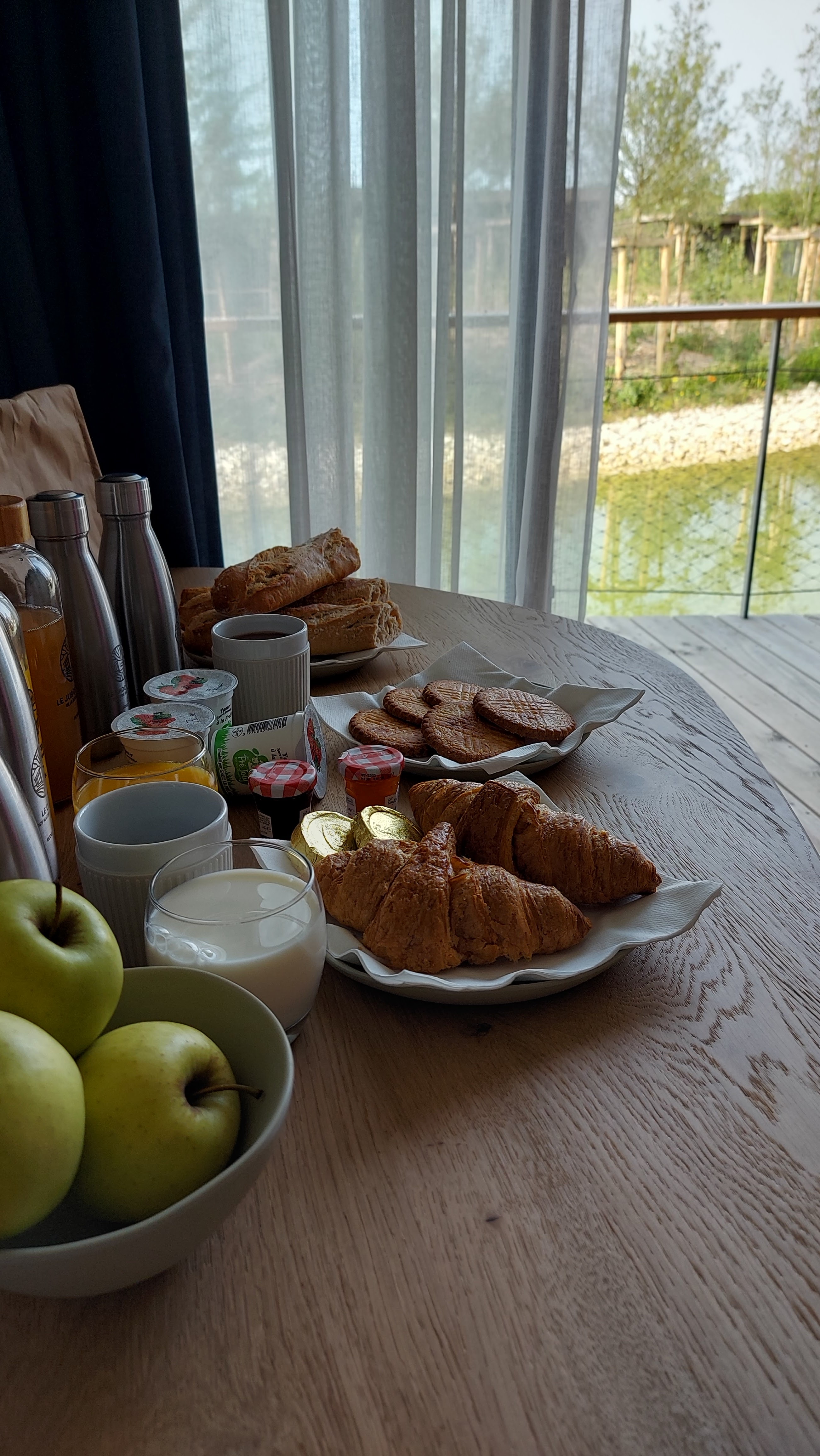 Très bon lodge, bien placé et calme. Quel plaisir de dormir dans cet univers de bois grâce au sol et aux meubles. Bonne réception. Dommage de ne pas avoir pu profiter du balcon, des moustiques (j'ai compté une cinquantaine) collés aux baies vitrés ou la vitre de la chambre enfant. Hors de question que ça rentre et que cela gâche mon séjour donc je n'ai pas ouvert. Mais le point noir reste que le petit déjeuner soit aussi peu nourrissant : 1 petit pain carré, industriel alors que le panier arrive à 07H45, il y a des boulangeries ouvertes + 1 pain au chocolat... Le reste étant du yaourt ou purée de pommes. Il faudrait vraiment améliorer cela en proposant à la réservation ou à l'arrivée à la réception de remplir un fichet avec des choix à cocher et la quantité souhaitée pour éviter trop de gaspillage inutile.