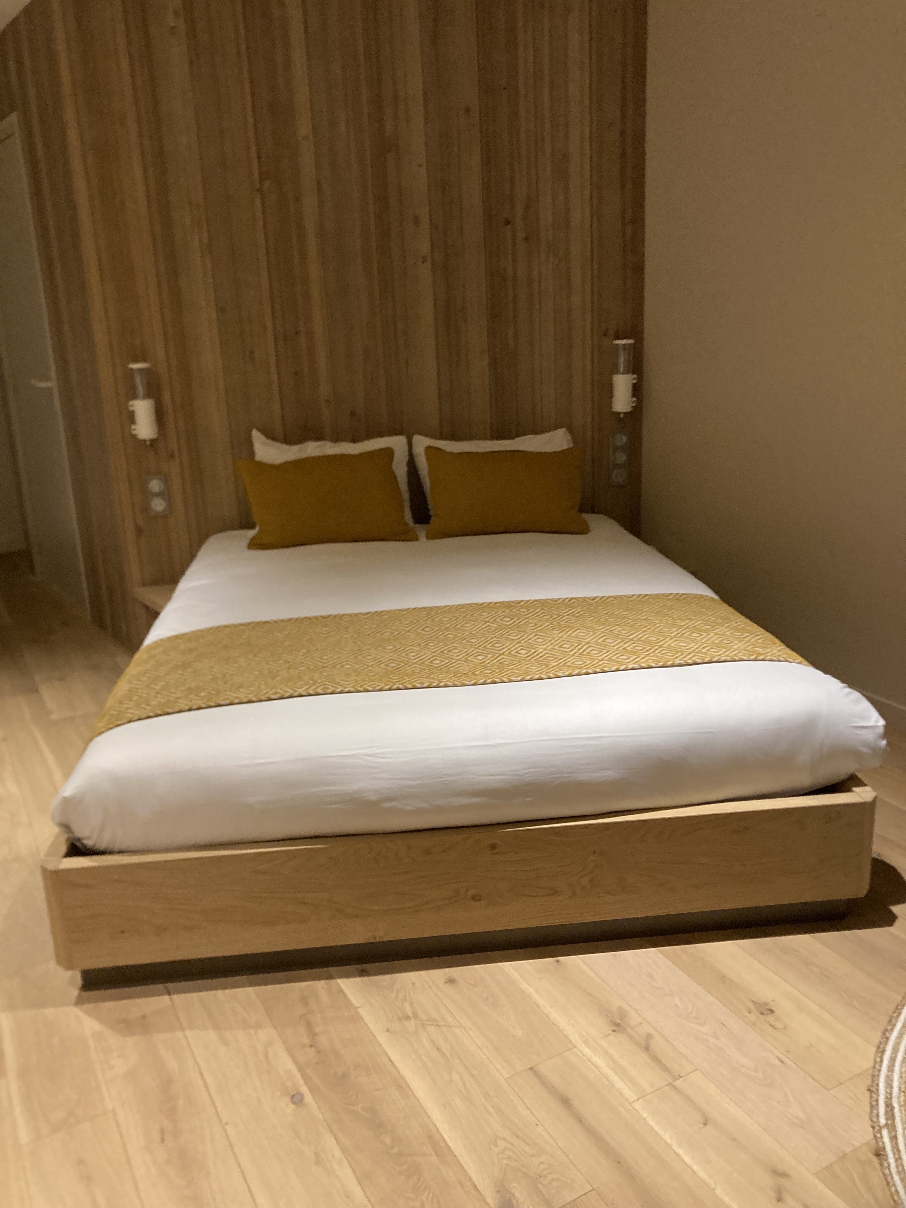 Franchement top! L'accueil du personnel à été impeccable tout à été très bien expliqué. La carte biodégradable avec les graines c'est vraiment sympa bravo ! La chambre était très propre, les lits confortables la chaise de terrasse agréable. Pas de tv et c'est parfait ! Le petit déjeuner parfait ne fait pas plus c'est le top (et je sais de quoi je parle...) La salle de bain est spacieuse, attention cependant ( je sais que ce n'est pas évident pour le personnel de ménage) mais le ciel de douche certaines buses était bloqué et ça peut détériorer le ciel de douche. Il suffit juste de passer un doigt dessus pour le déboucher. Et pour ceux qui se plaignent de la chaleur c'est normal ce genre d' hôtel c'est toujours comme ça et il l'est impensable de mettre des clim. Je n'ai pas trouvé de borne électrique pour ma voitures cependant