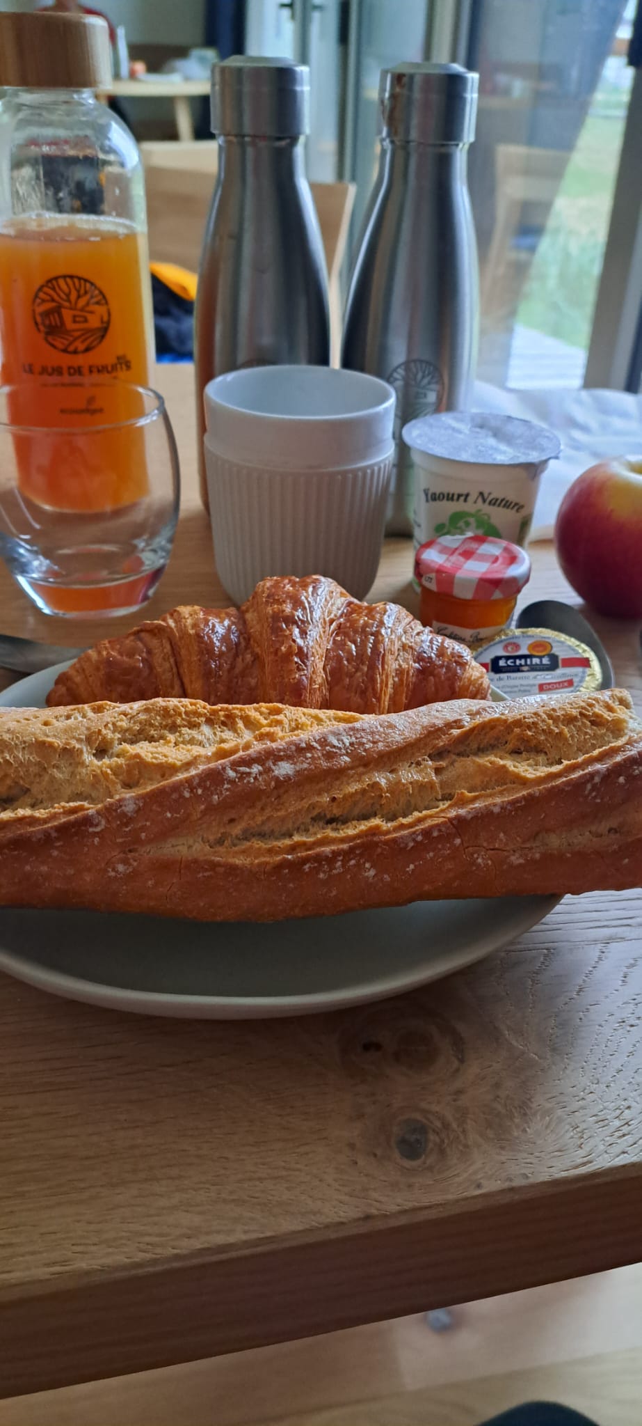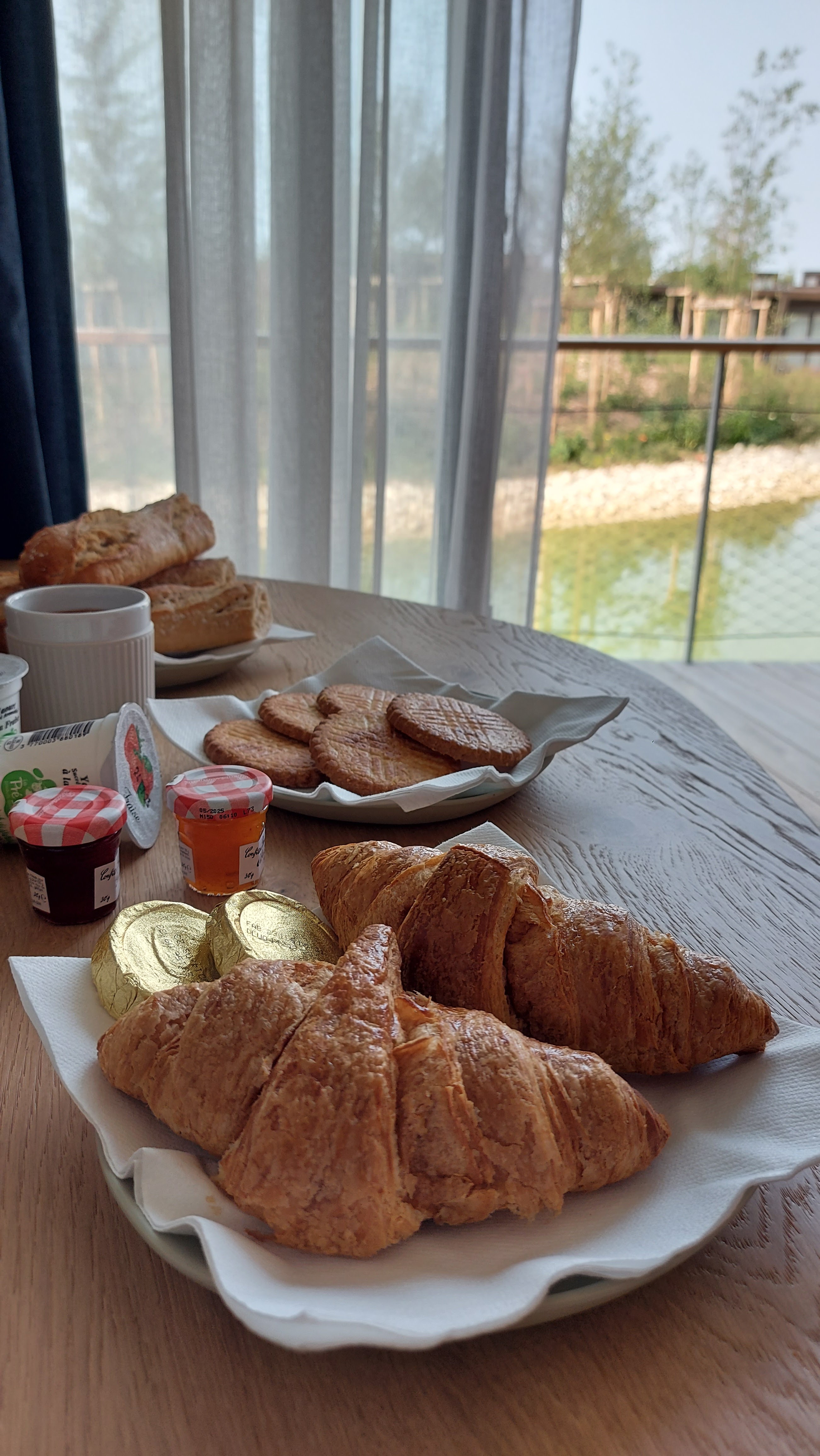 Nous avons passé un très bon moment. La chambre est spacieuse et permet d'accueillir une famille de 5, ce qui est suffisamment rare pour être noté. Bon débit de la douche, la vue de la terrasse est très reposante, ce doit être très agréable aux beaux jours. Le petit déjeuner est livré devant la porte et est très copieux. Jus, boissons chaudes, pains et viennoiseries, salé si vous préférez, Super. Mention spéciale pour le personnel, souriant et aux petits soins. Nous y reviendrons.