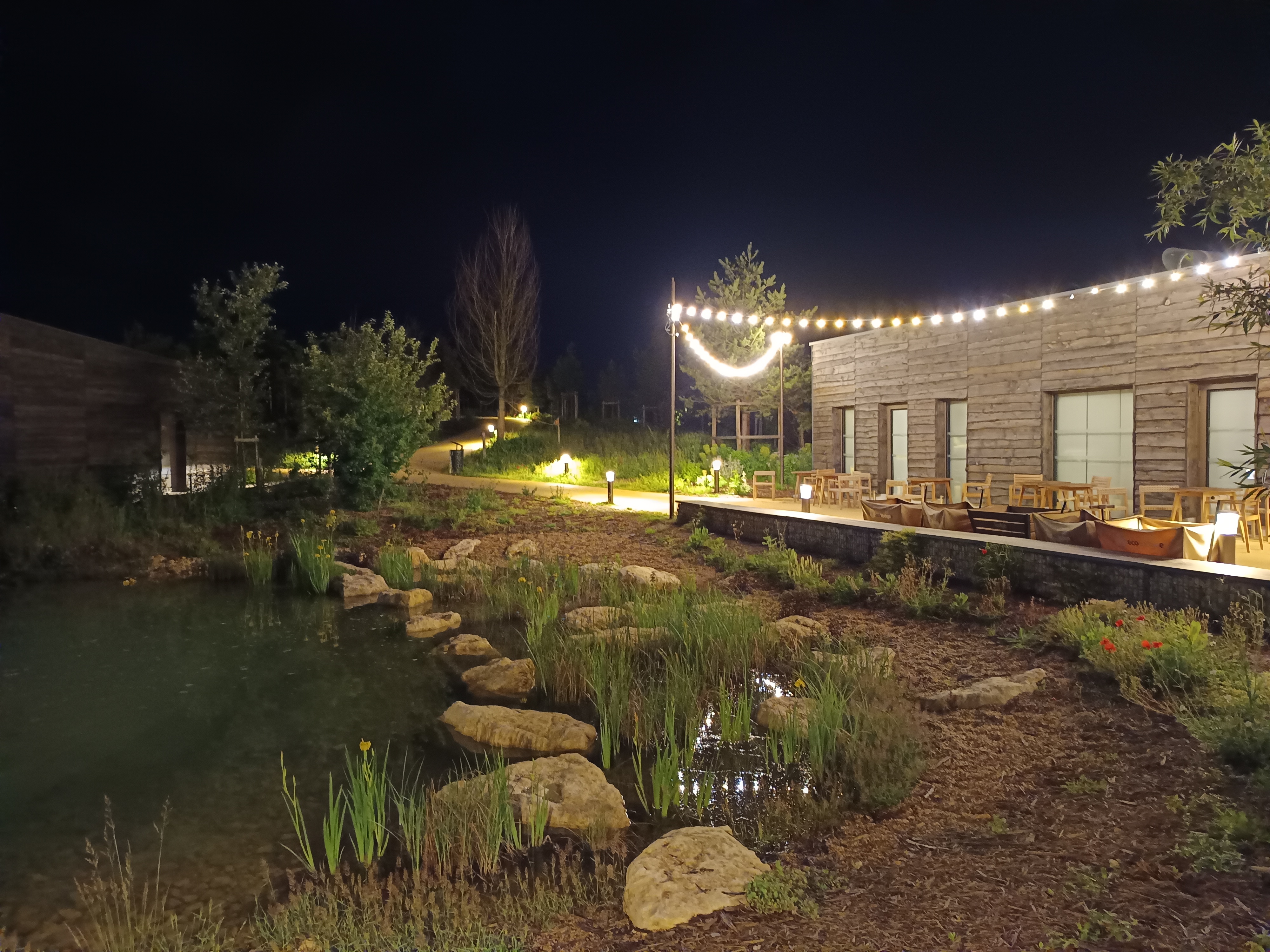 Très beau avec des éléments en bois. La petite terrasse en bois donnant sur le petit cours d'eau aménagée, manque plus que quelques poissons colorés. Bravo