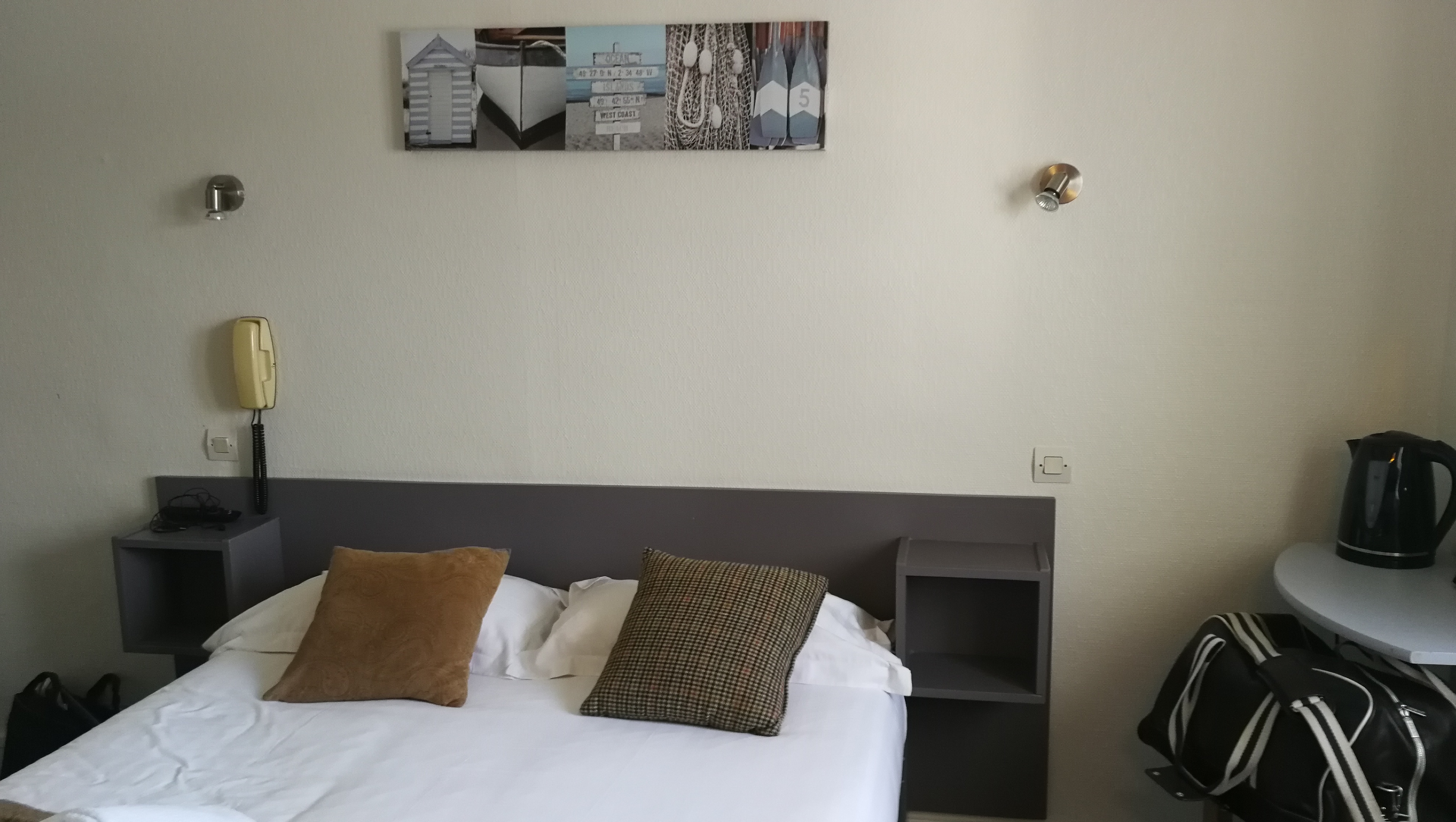 Hotel à éviter. Passez votre chemin. (Avis sur l'hôtel uniquement). Mauvaise isolation acoustique (dehors : bruit de palettes sur le bitume tôt le matin au déchargement des camions pour livrer le supermarché ! Dedans : vous pourrez parler à vos voisins). Fermez les fenêtres et vous mourrez de chaud car pas de clim. Les toilettes acceptables mais petit. Les grands auront les genoux dans le mur ! Salle de bain toute petite et pas clean. Bloc de douche très petit. Sauf à être contorsionniste il sera difficile de vous laver le bas du corps. Pommeau de douche principal non branché, seul la pomme de douche manuelle était fonctionnelle. Fuite au niveau du branchement de la pomme de douche. SDB trempée si vous ne fermez pas correctement les portes. Pas de tablette, posez votre gel douche à l’extérieur du bloc (très pratique !). Je constate que le propriétaire ne fait aucun effort depuis longtemps puisque beaucoup de commentaires revendiquent des SDB d'un autre âge. Le ménage à l’arrivée n’était pas clean (Mouche morte, poussière sur les tablettes à coté du lit. Le ménage quotidien oubliez ! En période de COVID vous devrez faire avec votre unique serviette. Nous avons demandé au réceptionniste qui devait remonté à la direction. Toujours pas de nouvelle à ce jour. La literie très moyenne (15cm d’épaisseur). 1 Prise électrique pour tout le monde. Débrouillez vous avec vos 3 portables. Le petit déjeuner est correcte et le serveur fais bien son boulot. Nous avons abrégé notre séjour d’une journée et demandé (via booking) a ne pas payer cette dernière journée et uniquement cette dernière journée. La direction refusera catégoriquement. Nous sommes parti sans payer. Erreur de ma part, je pensais que booking allait déclencher le paiement à la fin du séjour. Prévenu par le gérant, booking m'a contacté le JOUR même à l'heure de fin de réservation prévue. Quelle efficacité pour le coup ! Je constate donc que la direction est plus apte à gérer les règlements que son hôtel. Le virement de la totalité a bien évidemment été effectué le jour même. Bye bye Jullouville, à jamais !