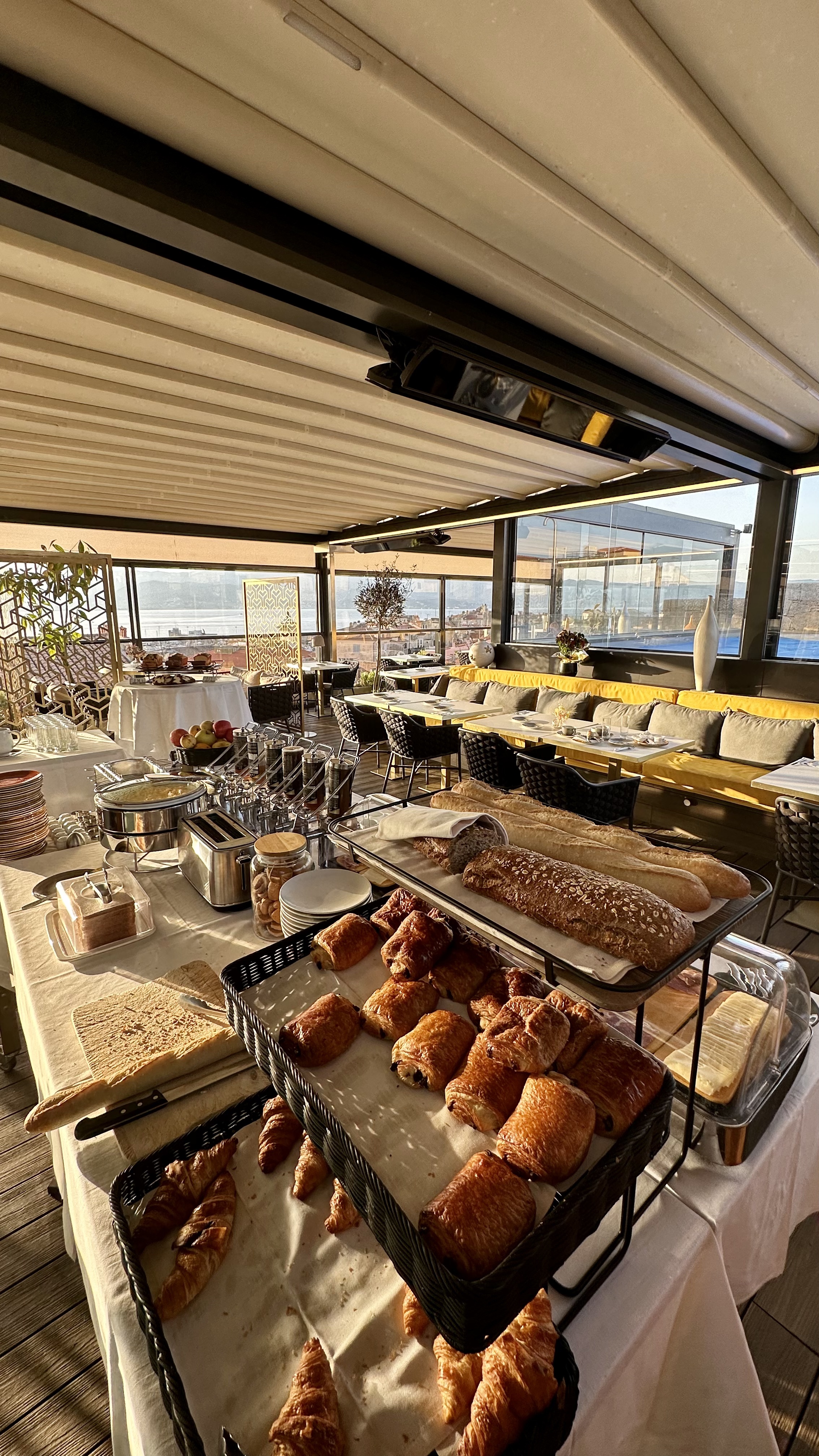 J'y étais déjà venu l'été dernier et ça s'était bien passé, J'ai voulu y retourner là début juin et manger au restaurant du rooftop, alors à éviter, le prix très élevé ne justifie pas du tout ce que l'on a dans l'assiette. J'ai mangé du pagre avec accompagnement pommes de terre, il y avait un tout petit morceau de poisson et surtout 2 rondelles de pomme de terre! Comment peut t'on faire payer 32€ ça !!! Jy retournerai peut être pour le spa ou le rooftop mais qu'au petit déjeuner...