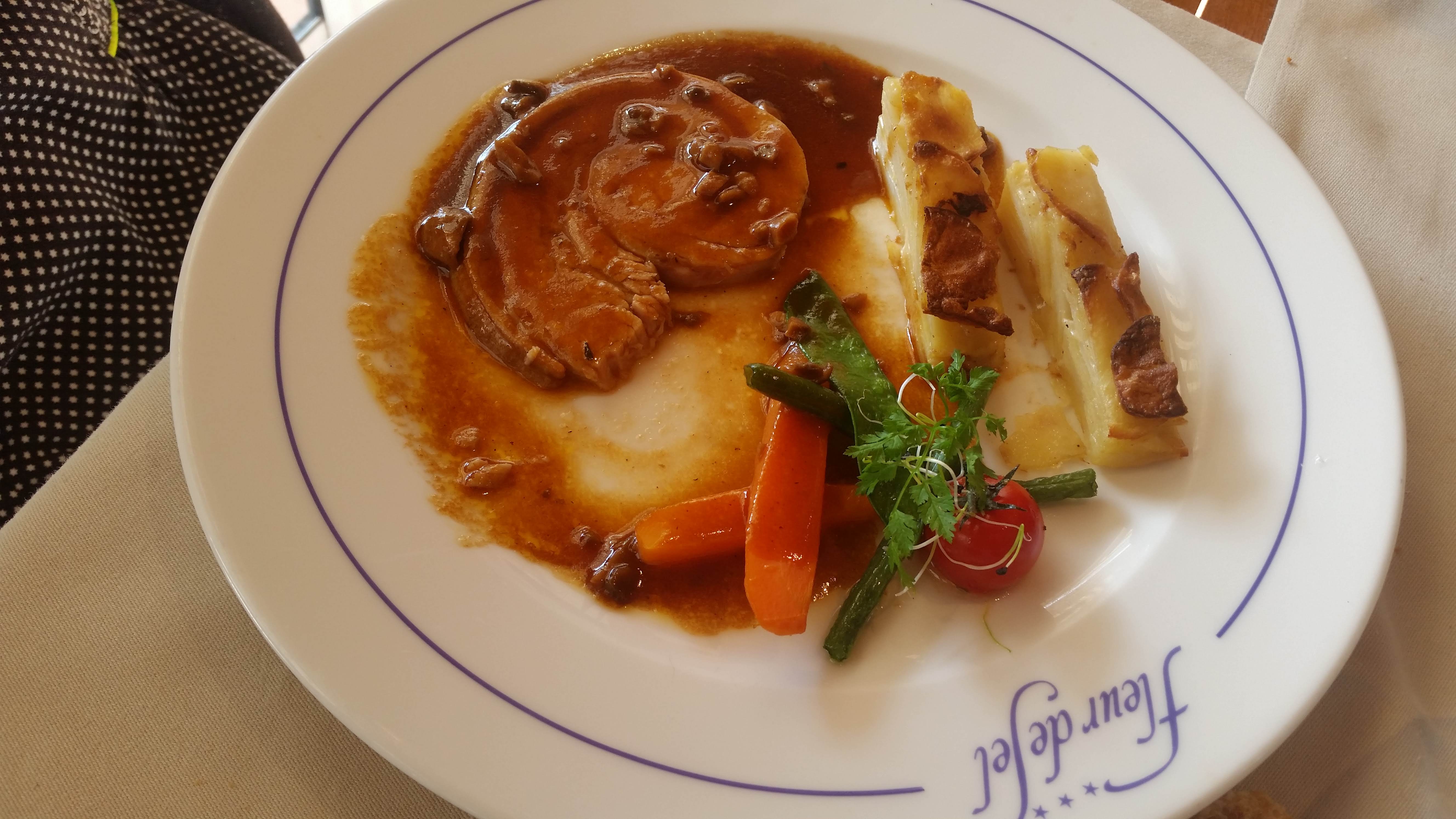 Nous avons mangé, ce jour, au restaurant de l’hôtel Fleur de Sel, tout était top, entrée (saumon confit), plat (Sole meunière), plateau de fromage ainsi que le dessert (harmonie à la fraise) les vins étaient très bons ! Quelques petites erreurs sur le service mais bien rattrapées par la suite. Je recommande vivement, excellent rapport qualité / prix, 50€ par personne sans l’apéritif (une bouteille de ruinart Blanc de blancs / 120€ la bouteille) Nous reviendrons, c’est sûr !