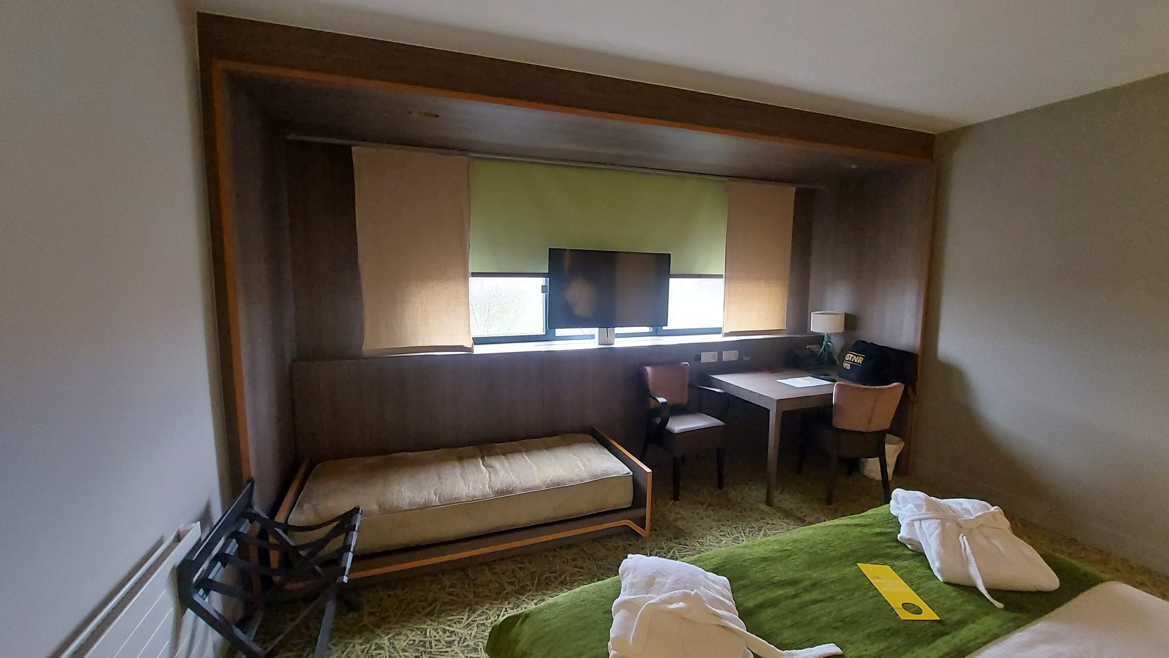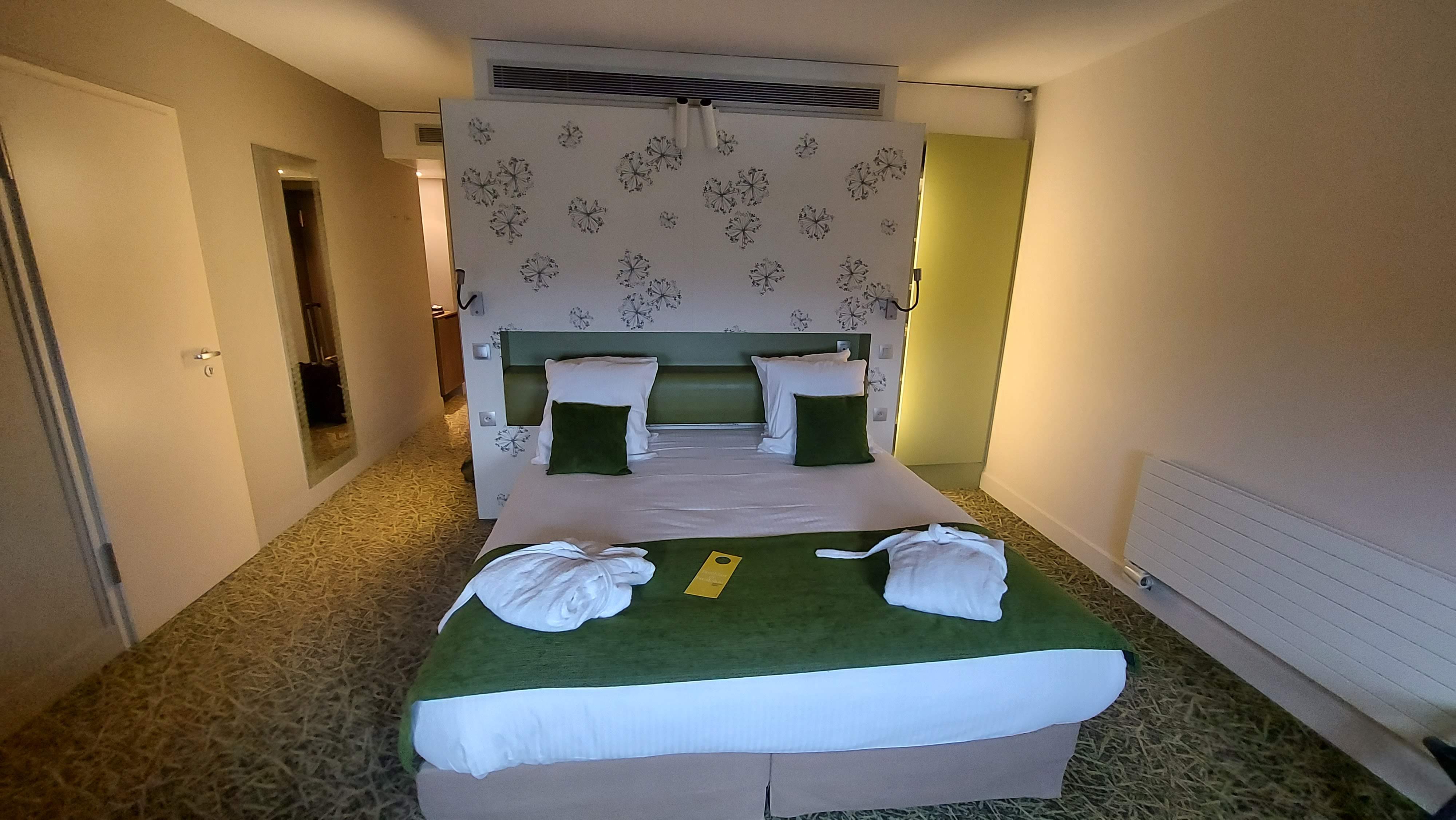 J'ai séjourné dans une magnifique chambre très confortable. Je n'avais pas réservé. Le personnel propose de choisir entre une salle de bain équipée d'une douche ou d'une baignoire. La possibilité de faire ce choix est rare sans réservation préalable. C'est définitivement un plus. L'emplacement de l'hôtel permet d'accéder rapidement aux restaurants, kinépolis et thermapolis, etc. Je reviendrai très certainement après cette première expérience très positive !