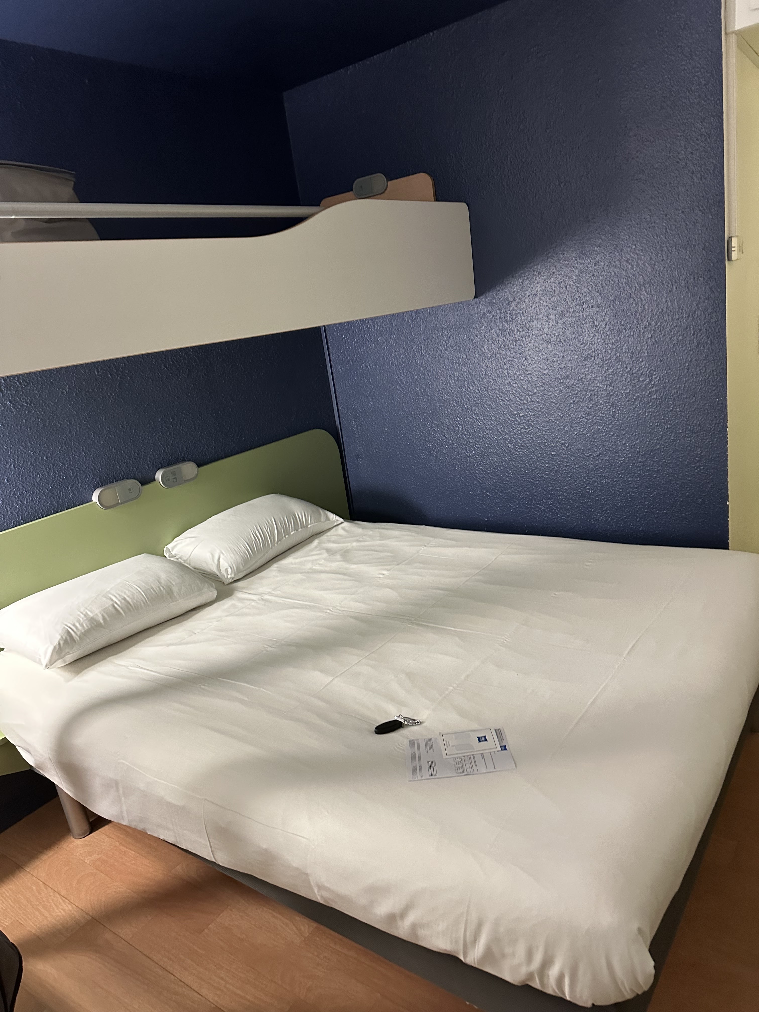 Panne informatique depuis 1 mois et non résolu !!! Pas de carte de chambre à l'arrivée ! Lit superposé pas de draps pas de housse de couette et oreiller taché ! Fixation de douche qui ne tient pas. Matelas trop dur. Le petit-déjeuner était correct heureusement car le prix de la chambre est relativement élevé vu tous les soucis. Bref nous ne recommandons pas cet hôtel.