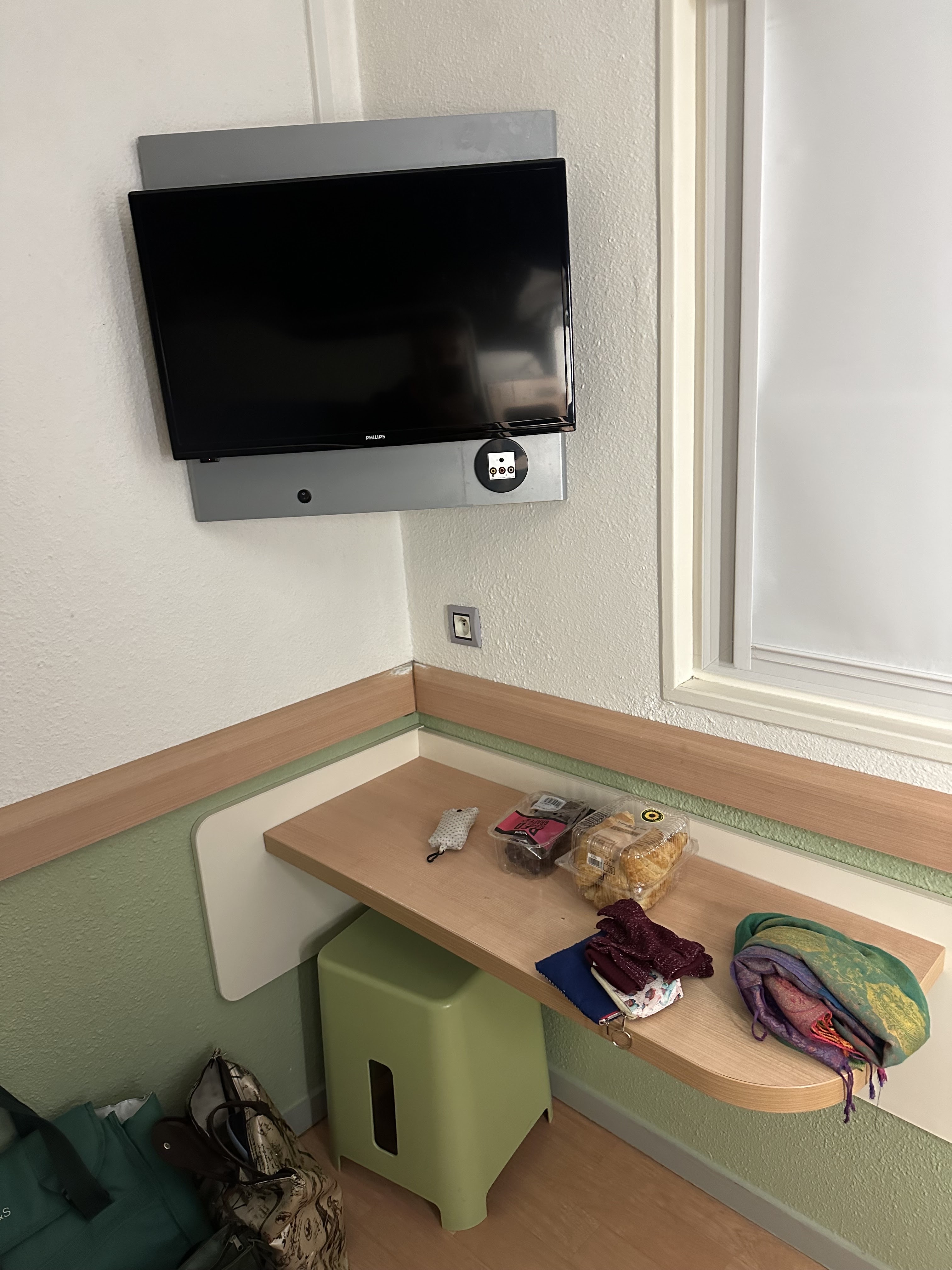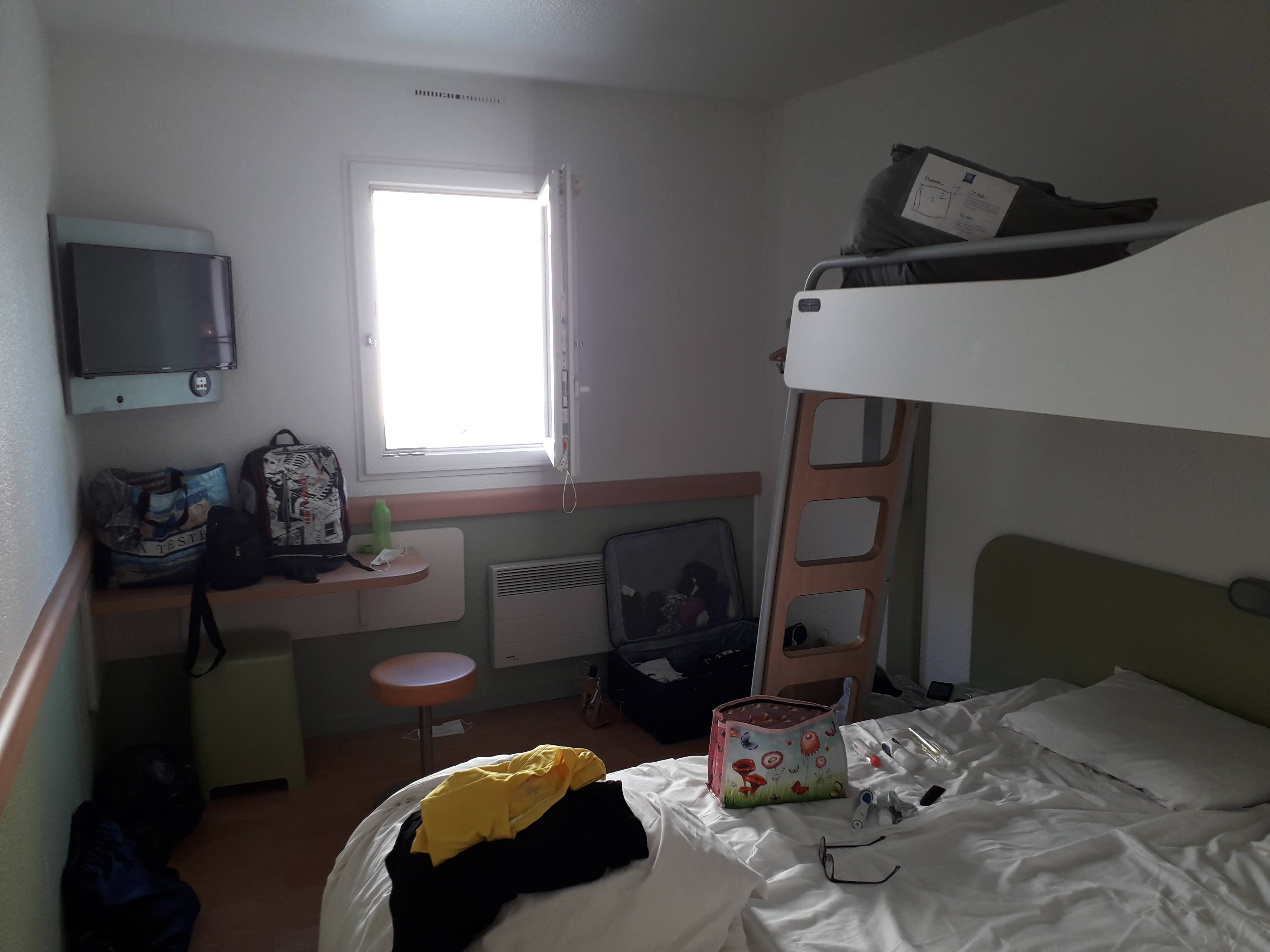 Hôtel ibis gare...Chambre de passage, rien pour travailler correctement, peu de place dans la chambre, tabouret sans dossier et en plastique...cher pour ce que c'est..ok on est a côté de la gare...mais ça ne fait pas tout!!!