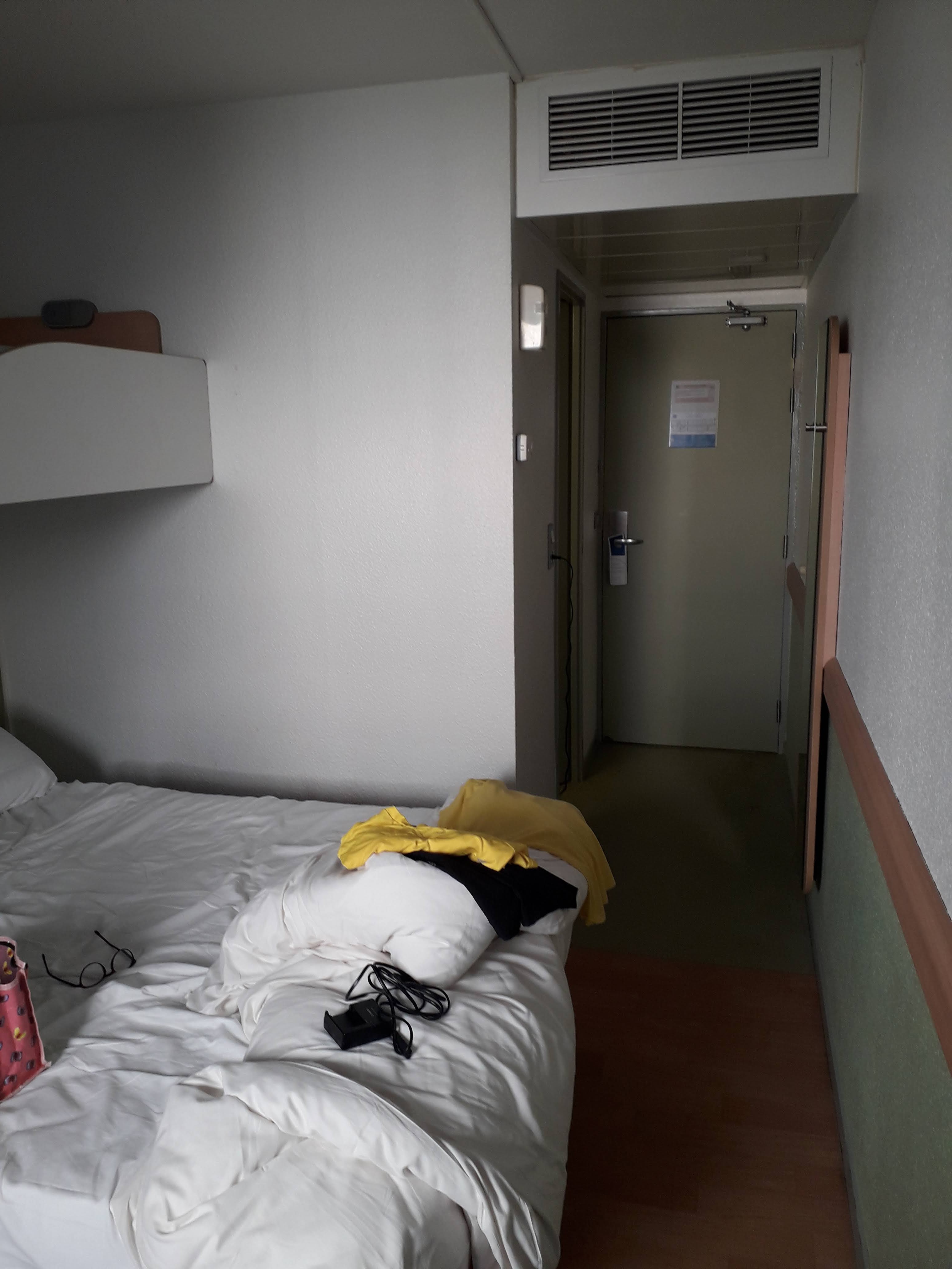 Réservation de 2 nuits début octobre: une catastrophe! -Chambre et salle de bain dans leur jus. La cuvette des toilettes pourraient être changée vu l’état déplorable. -Les murs sont fins on entend tout ce qui se passe dans les chambres autours et dans le couloir. -propreté à revoir (saletés collées au sol et cheveux dans la chambre) et un minimum de nettoyage entre les clients pour le petit déjeuner ne seraient pas négligeable. -Problème de sécurité: nous sommes rentrés le soir pour notre deuxième nuit et notre porte était ouverte après le passage de l’agent d’entretien sûrement et la carte d’accès ne fonctionne plus. On le fait remarquer à l’accueil qui nous répond juste « D’accord ». Vraiment pas professionnel. On aurait pu nous voler toutes nos affaires. Vraiment un hôtel à fuir. Allez dans un autre ibis budget celui la est pire qu’un f1.