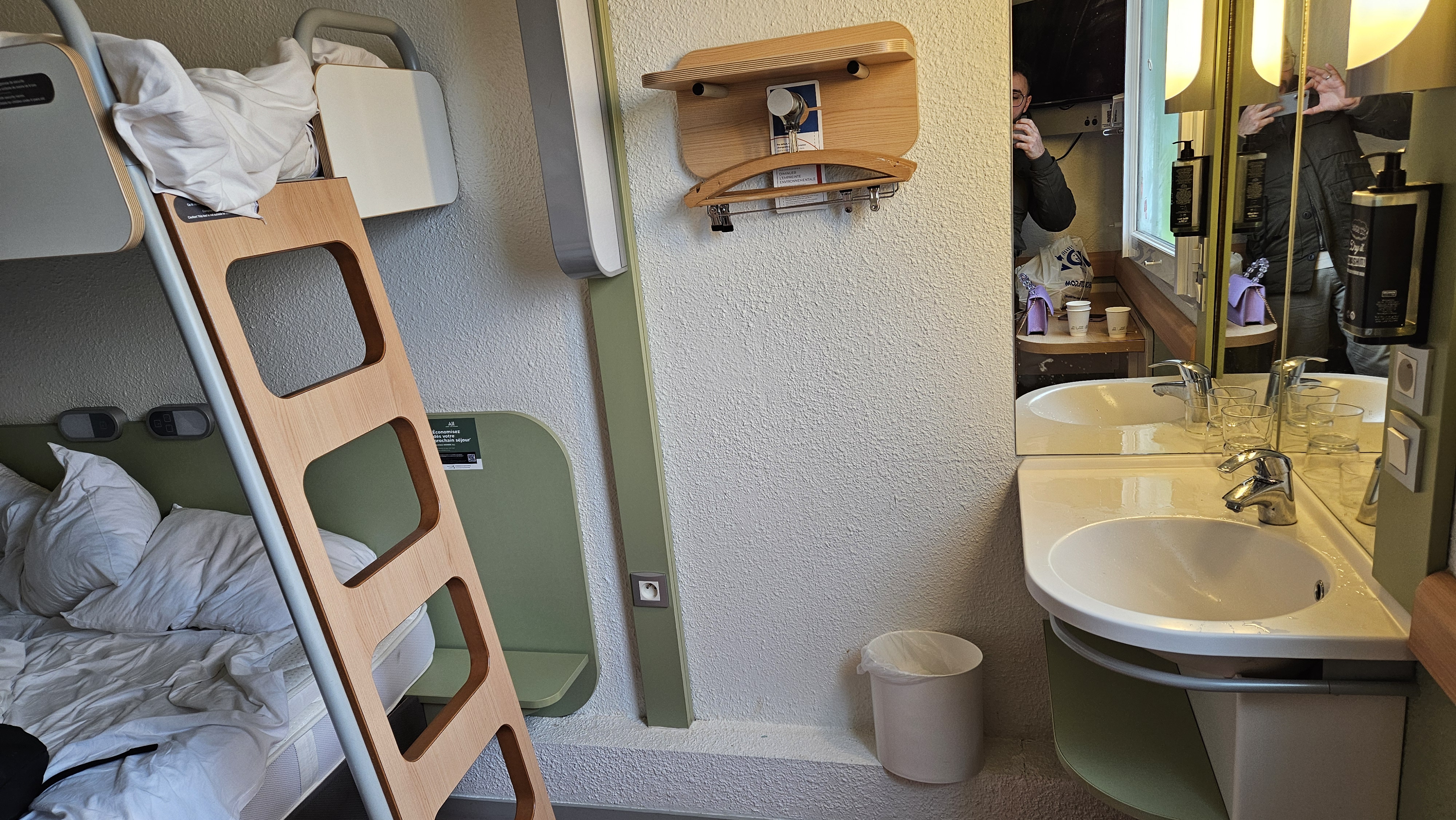 Facile d'accès et pratique pour les late check-in. Dommage que le parking était plein et que nous ayons dû nous garer plus loin, tard le soir avec un enfant, ce n'est pas idéal. Bémol aussi sur l'odeur dans les WC en arrivant dans la chambre... vraiment pas top ! Sinon la literie est confortable, la chambre était propre et suffisante pour une nuit avec notre fille qui a beaucoup aimé le lit superposé.