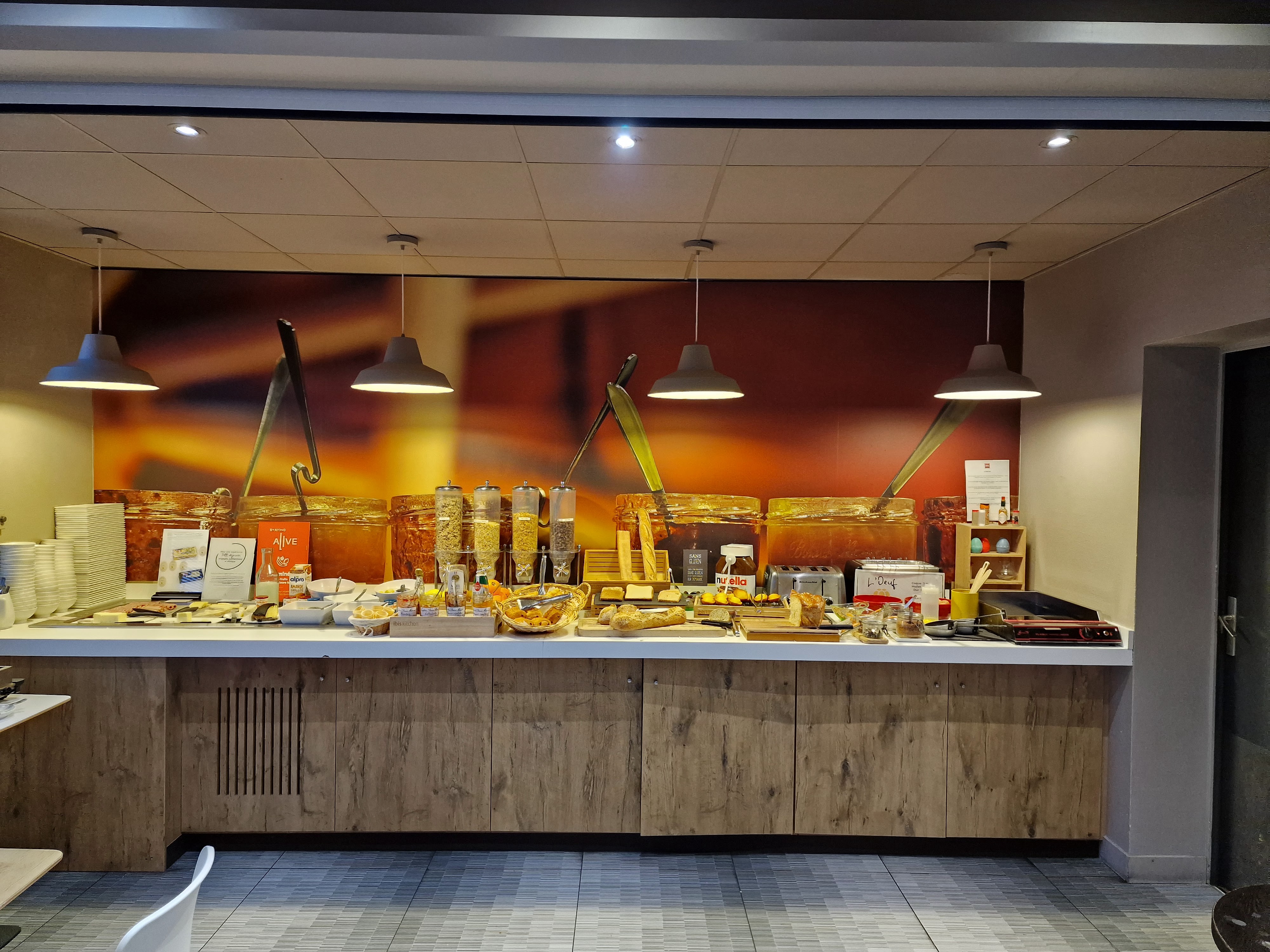Nous avons passe hier soir le diner a la brasserie -succulent- la nuit Ibis 3 * literie formidable mais Petit dejeuner execrable, pas de cafè pas de pain table et sol degoutant je me suis faire insulter par La receptioniste - je lui devrais le respect !! Je suis aller chez MC Do en face acceuil souriant Et double expresso excellente