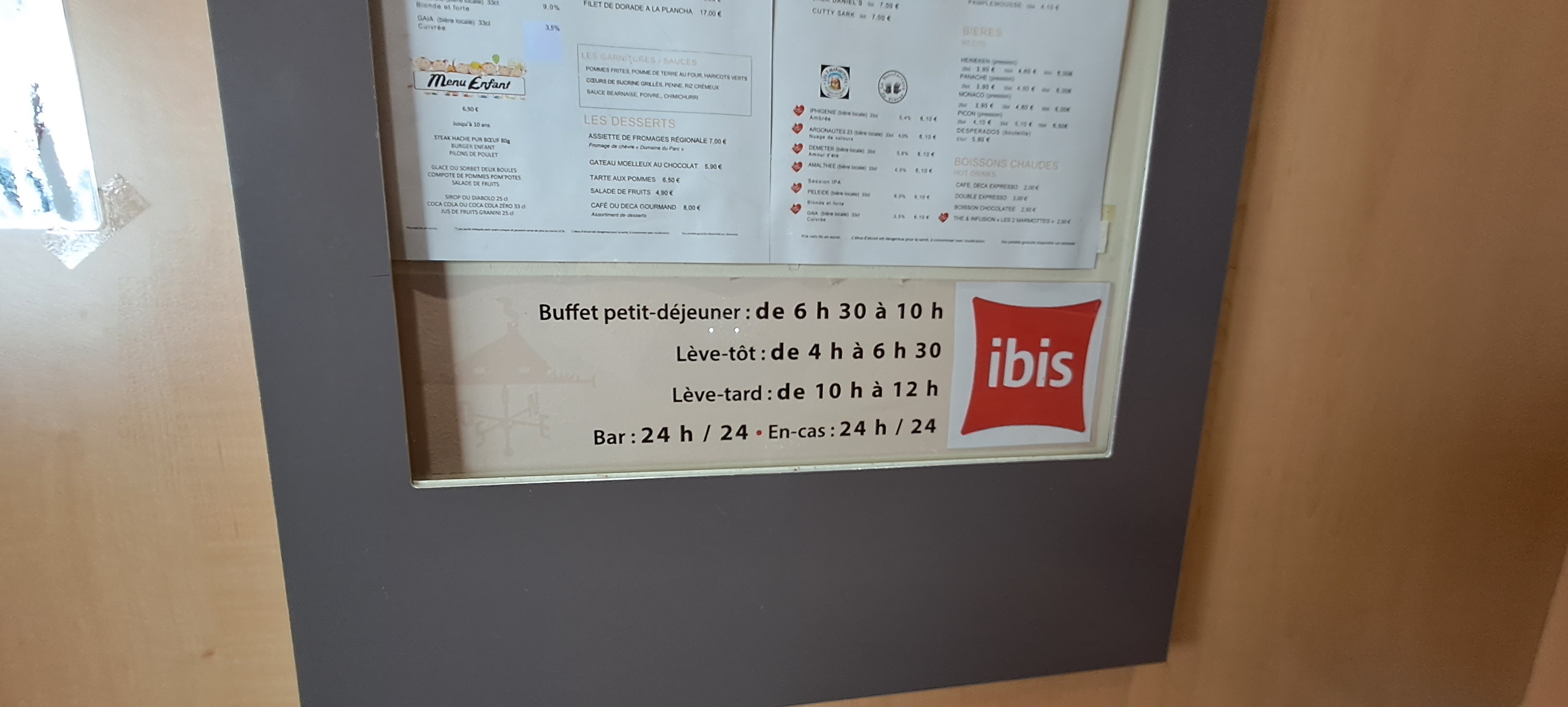 Désolé d'avoir dérangé, nous ne reviendrons pas. Client des hôtels du groupe depuis de nombreuses années, j'ai vu du bon, du très bon et du mauvais. Les hauts et les bas peuvent arriver. Je n'ai jamais ressenti le besoin de laisser un avis mais cette fois ... L'attente longue et l'accueil étrange ou même le ménage approximatif dans l'une de nos 2 chambres passaient encore, peut être parce que ce n'était pas la mienne et que nous étions contents d'arriver. Mais si vous envisagez une étape simple et agréable en famille en dinant au restaurant sur place, oubliez ! Même sans attente exceptionnelle, la déception est grande. Accueil glacial, service long (malgré la présence en salle de 1 couple seulement) et désagréable, silence ambiant funèbre, pénombre, carte réduite à 2 ou 3 plats dont la moitié est finalement en rupture, ... Pas de frites, plus de purée et finalement plus de pommes de terre, pas de steak, etc. Il semblerait que nous aurions pu commander une saucisse salade mais impossible de confirmer si on nous proposait une assiette par personne ou à partager. Nous sommes partis diner ailleurs. Si je n'avais pas eu besoin de me reposer après une journée de travail suivie de plusieurs heures de route, j'aurais quitté l'hôtel aussi. SVP Ibis, gardez la salle pour le petit déjeuner uniquement, c'était pas mal. Mais ne mentionnez pas dans la fiche de l'hôtel un restaurant de grillades qui est inexistant, c'est un mensonge. Sur ce point l'accueil au restaurant a été honnête : Vous avez vu la carte, on a que ça. Je vous préviens on a pas de grillades. Je ne me souviens pas d'un Bonsoir mais seulement qu'un match télévisé semblait particulièrement captivant. A l'avenir j'éviterai cet établissement et si j'ai vraiment besoin d'une nuitée dans cette zone, je me tournerai vers l'hôtel voisin de rang inférieur du même groupe qui lui était plein ... La soirée ne sera de toute façon pas pire.