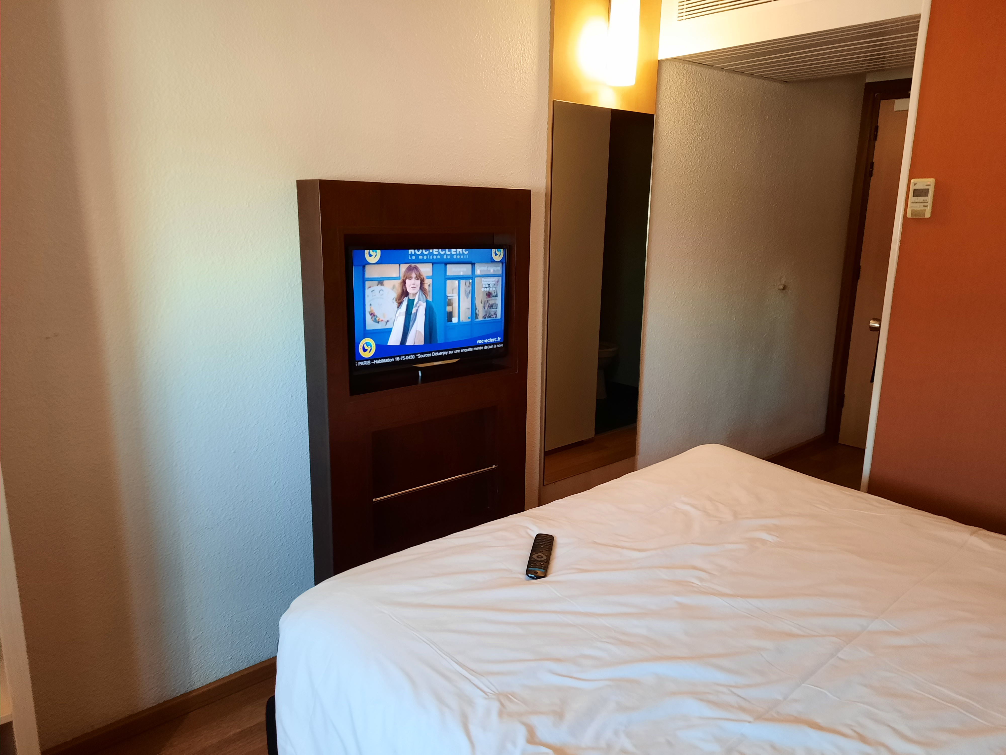On est sur du standard ibis. Rien à redire, la télé est un peu daté, de même que les sanitaires et le manque de prises proche du lit, sinon rien à dire, c est calme et la literie est bonne. L accueil est top et le service de restauration a la hauteur. Bien pour les pros.