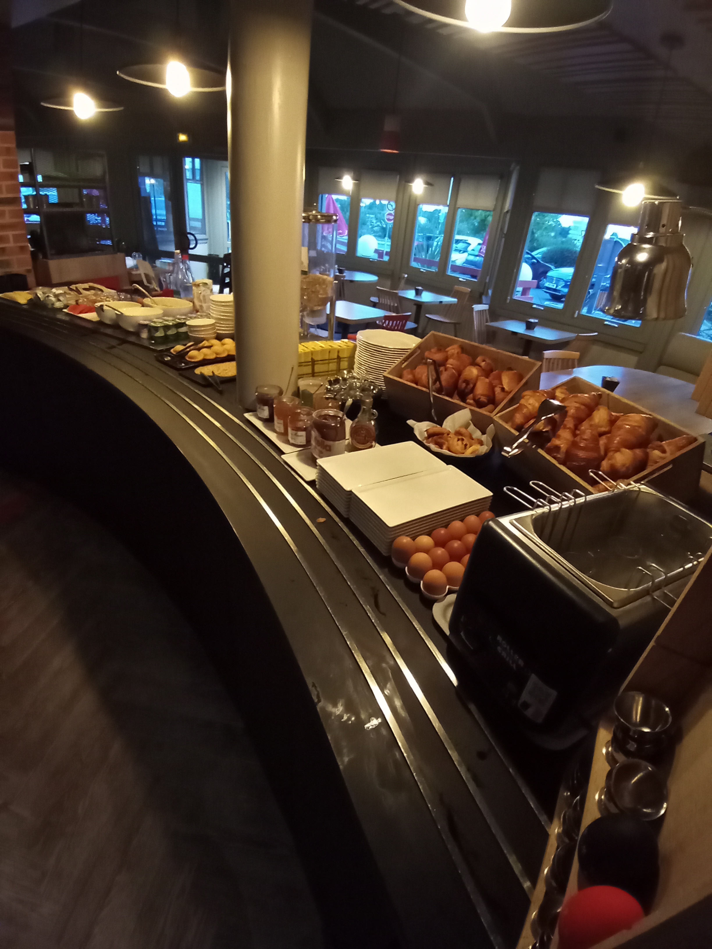 Arrivée ici à la suite d une panne de voiture sur l autoroute. Nous avons accueilli agréablement à 5h du mat. Le petit déjeuner offre un grand choix de pain frais, viennoiseries et plein d'autres choix. Le personnel est souriant, au petit soin et très efficace. Merci à eux d'avoir transformé notre mésaventure en moment agréable.