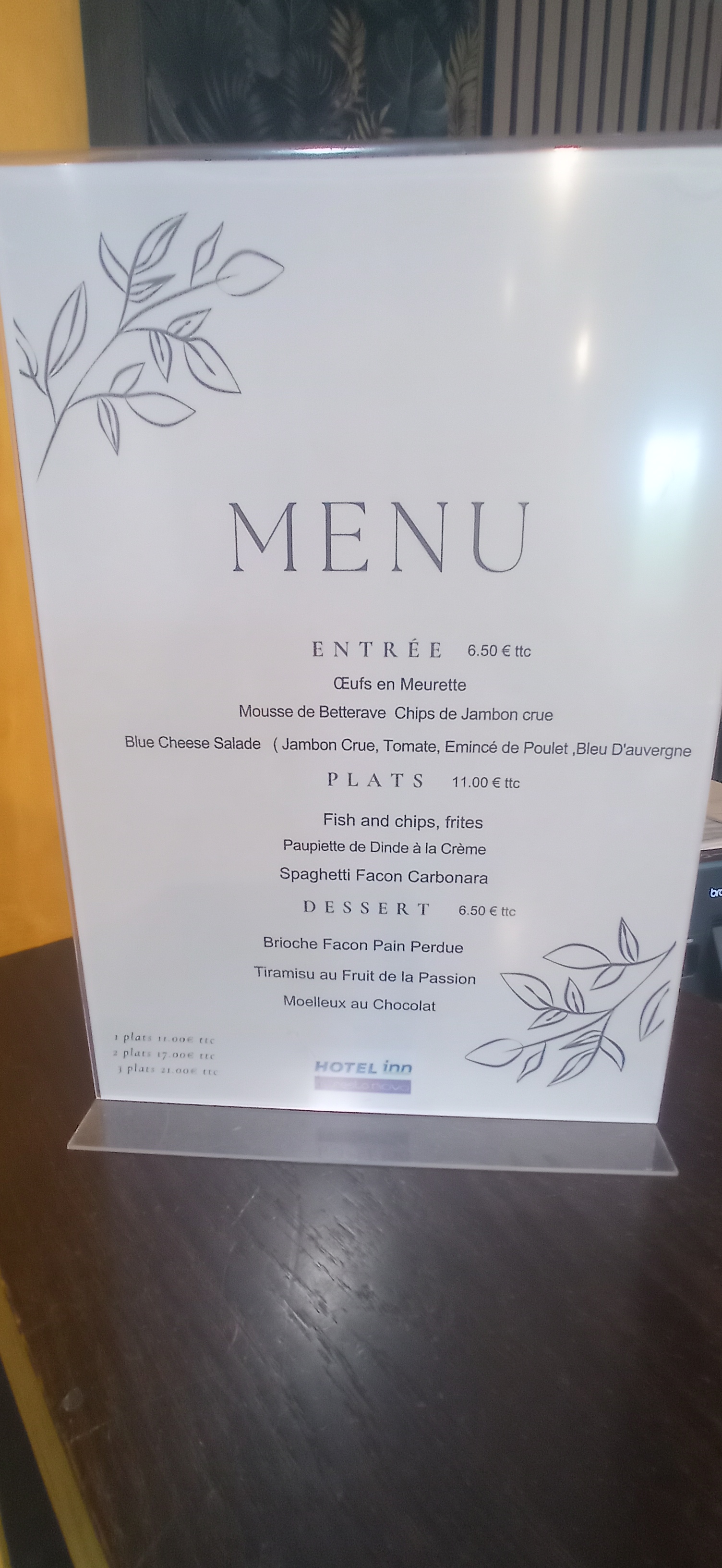 Actuellement en week-end pour 2 nuit du 3 novembre au 5 novembre avec petit déjeuner pour 2 personnes. Chambre relativement mediocre, poussière, saleté, trou dans la porte de la salle de bain, impact au milieu de la baignoire, chaînes tnt fonctionnent peu seulement 4 chaînes, les cloisons inexistantes, car on entend tout ,pas besoin de tendre l'oreille ! Le lit couine dès que l'on bouge un peu c'est insupportable Le soir ça rigole et hurle dans les couloirs de l'hôtel...bref extrêmement passable !! 3 étoiles cela ne vaut pas du tout ! A fuir ! Petit déjeuner on ne se prononce pas, c'est seulement notre 1ere nuit....à suivre. Personnel accueillant néanmoins.