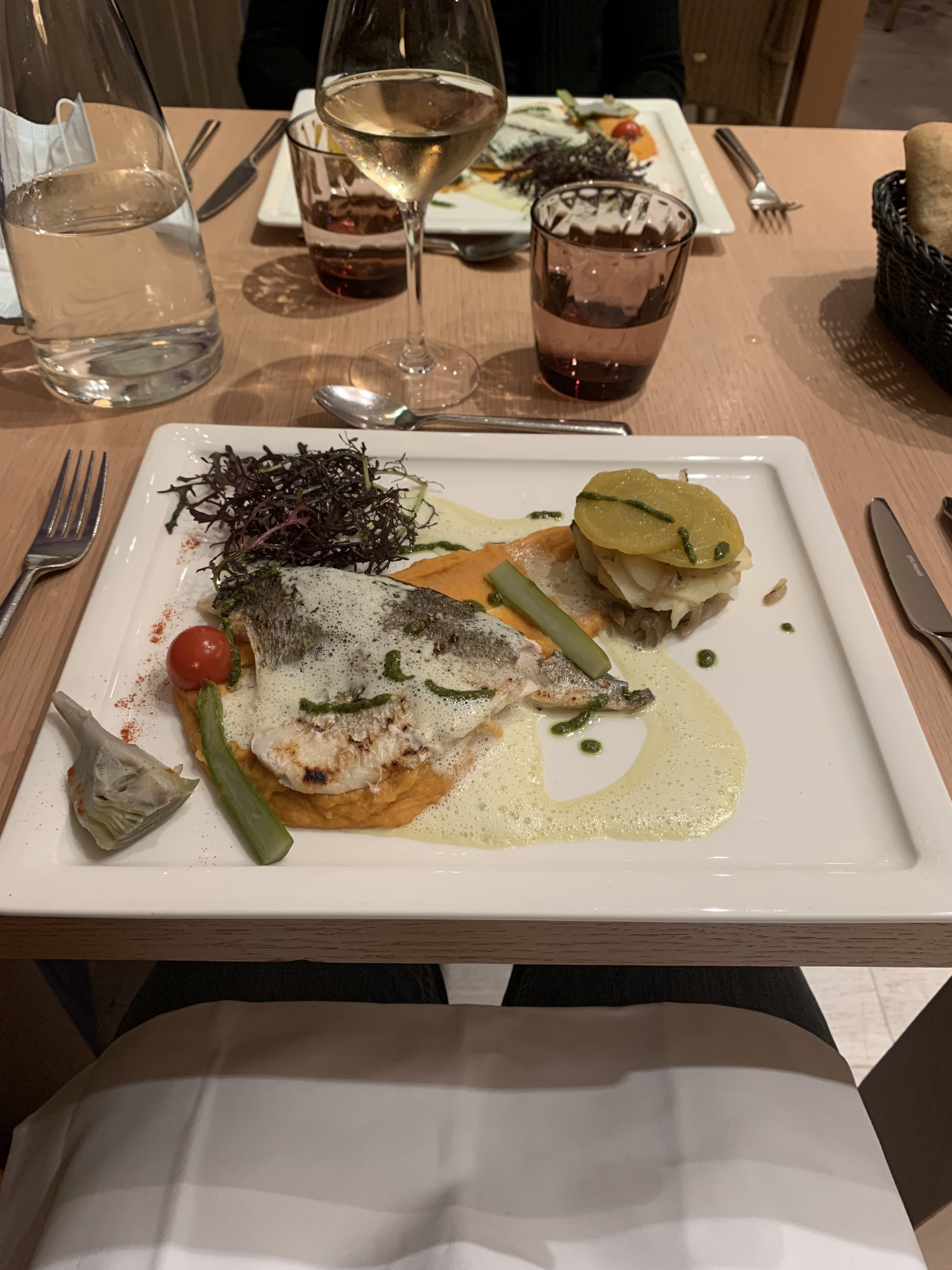 Malgré les excellents avis que possède cet hôtel/restaurant, mon conjoint et moi avons été très déçus par la prestation de ce restaurant : - Service médiocre : les serveurs étaient peu aimables, nous avons dû réclamer du pain pour avoir deux maigres tartines et un tout petit morceau de beurre pour deux personnes, le serveur ne connaissait pas la carte, etc... - Le poisson était trop cuit et la viande grasse... Le meilleur moment du repas fut le dessert non fait maison... Vive la glace ! - Erreur sur la note lors du règlement. En résumé, il y a place à amélioration !