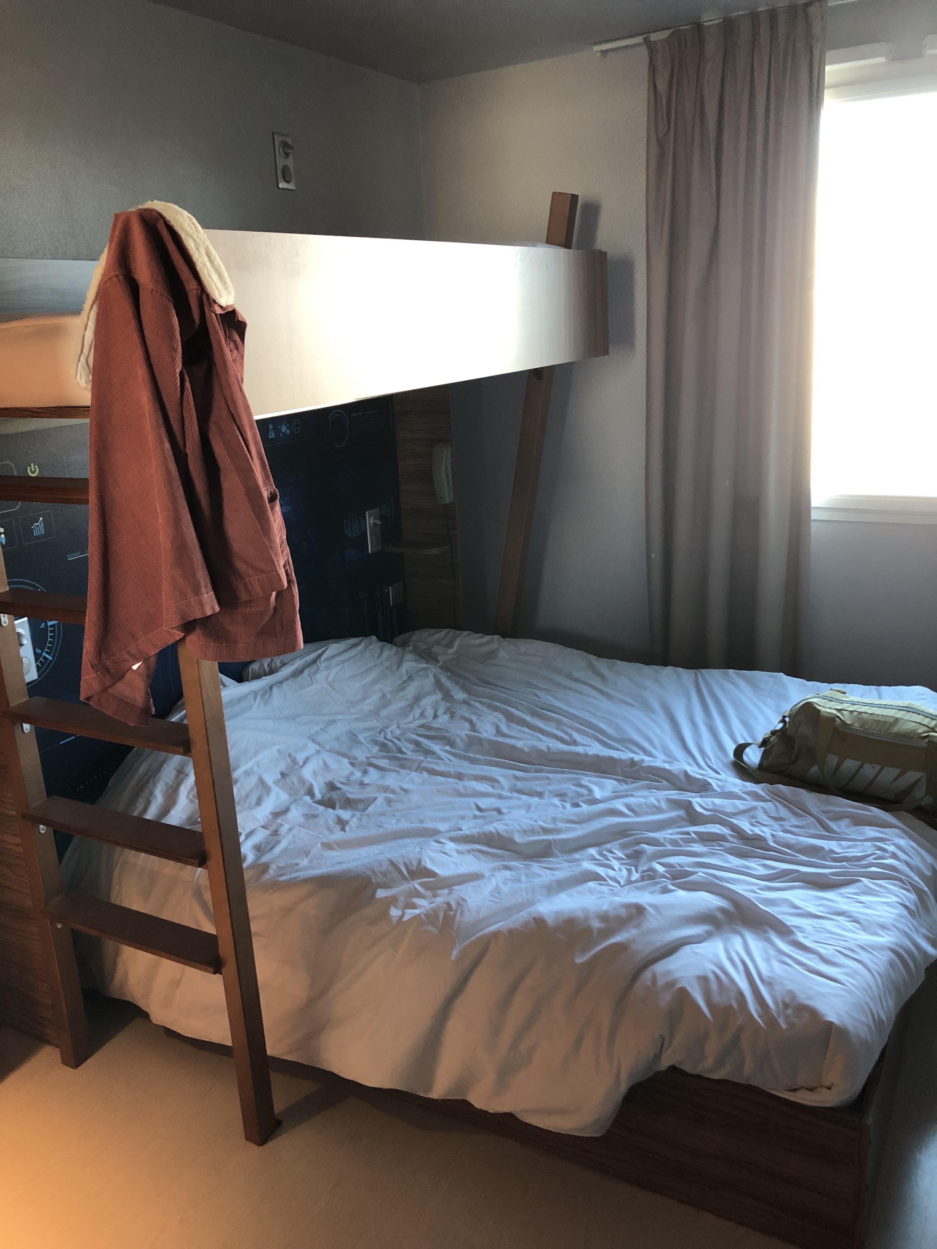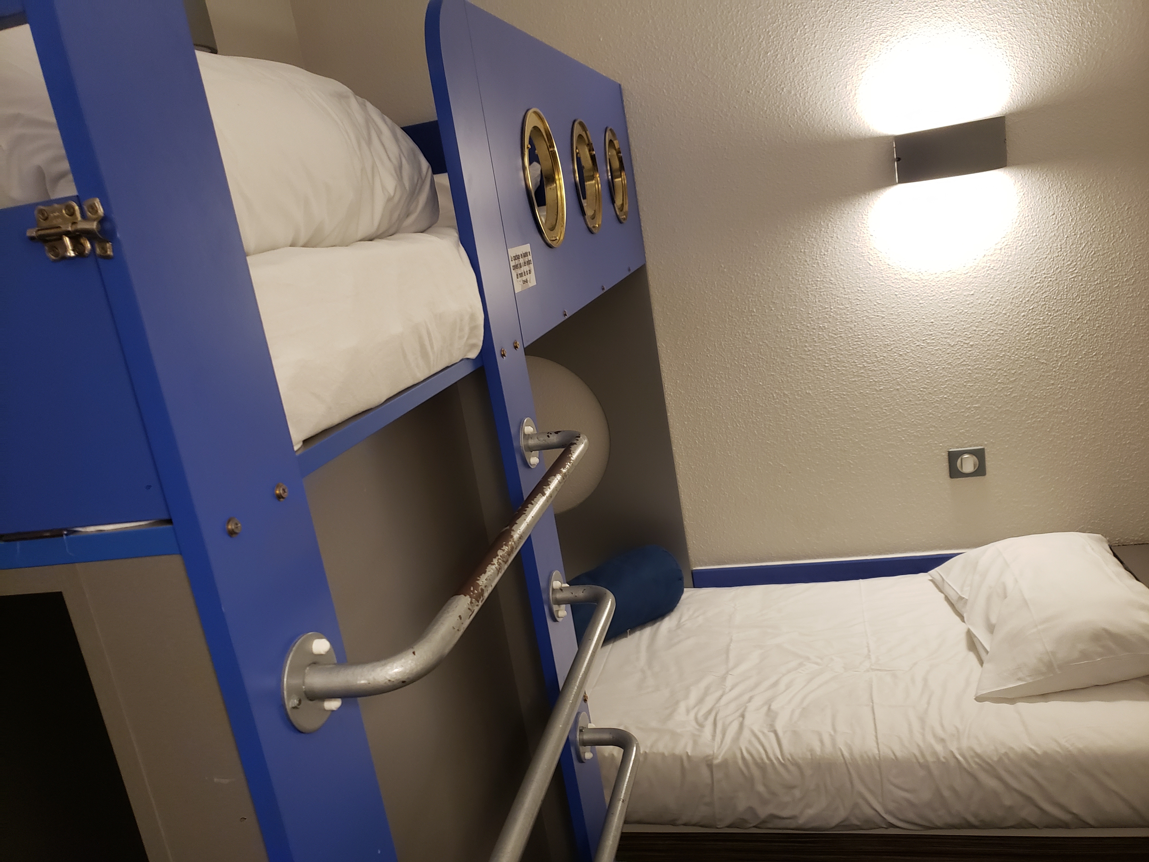 Personnel aux petits soins mais la salle de bain des chambres pmr mérite quelques améliorations (sol un peu glissant une fois mouillé et pas de rideau de douche). Seul un hublot décore le lit superposé, pour le reste, on cherche encore la déco Jules Verne. Grosse pagaille pour la salle du petit déjeuner, à réorganiser dès que possible.... Merci.