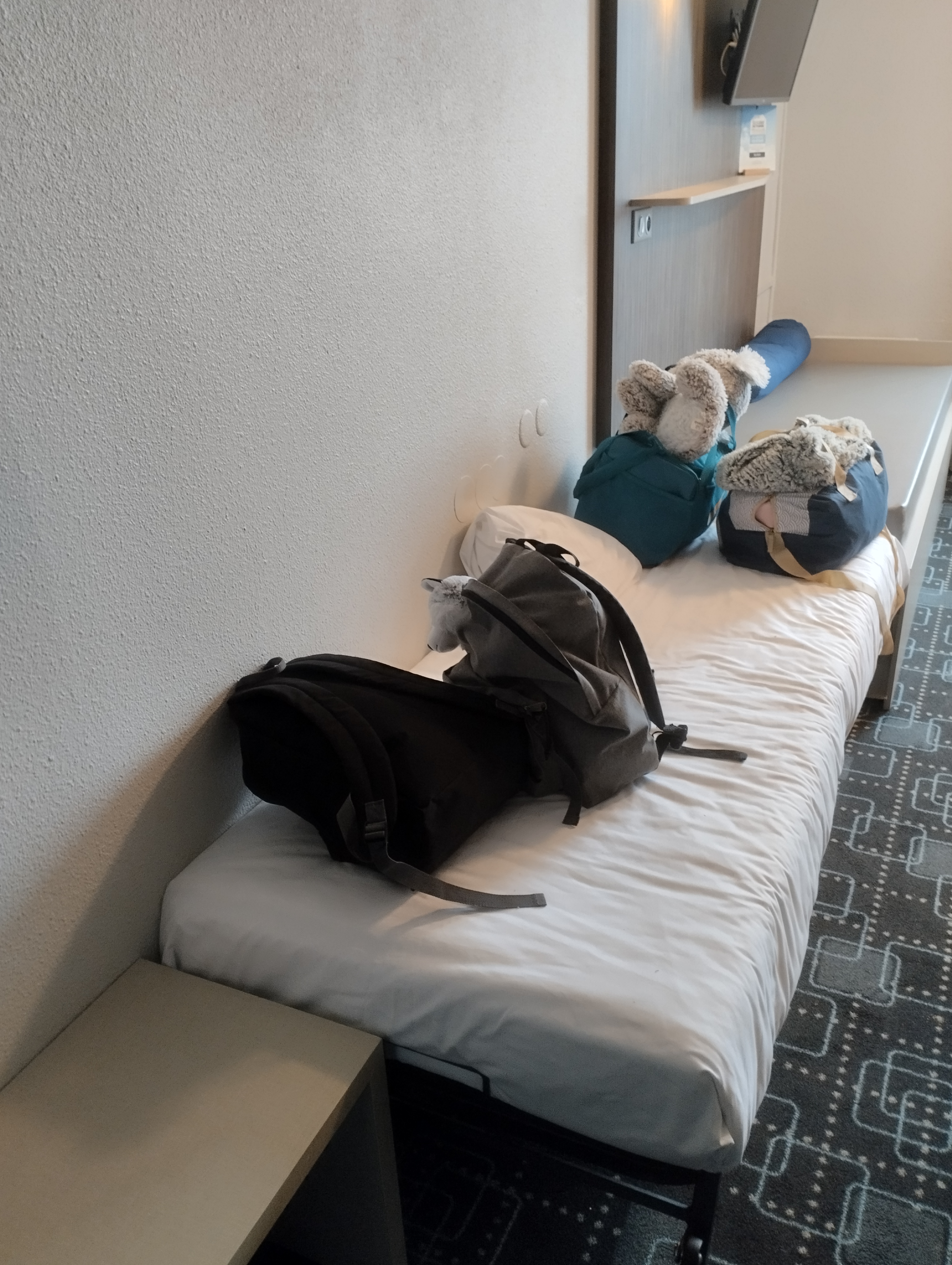 Un seul mot: décevant ! Chambre pour normalement 4 personnes mais qui ressemble à davantage à une chambre pour 2 ! Très petite, avec deux lits de camp sur le côté le long du mur. 2 distributeurs de gel douche qui étaient vides à réception de notre chambre. Propreté médiocre. Peu de places de parking et places pas larges !