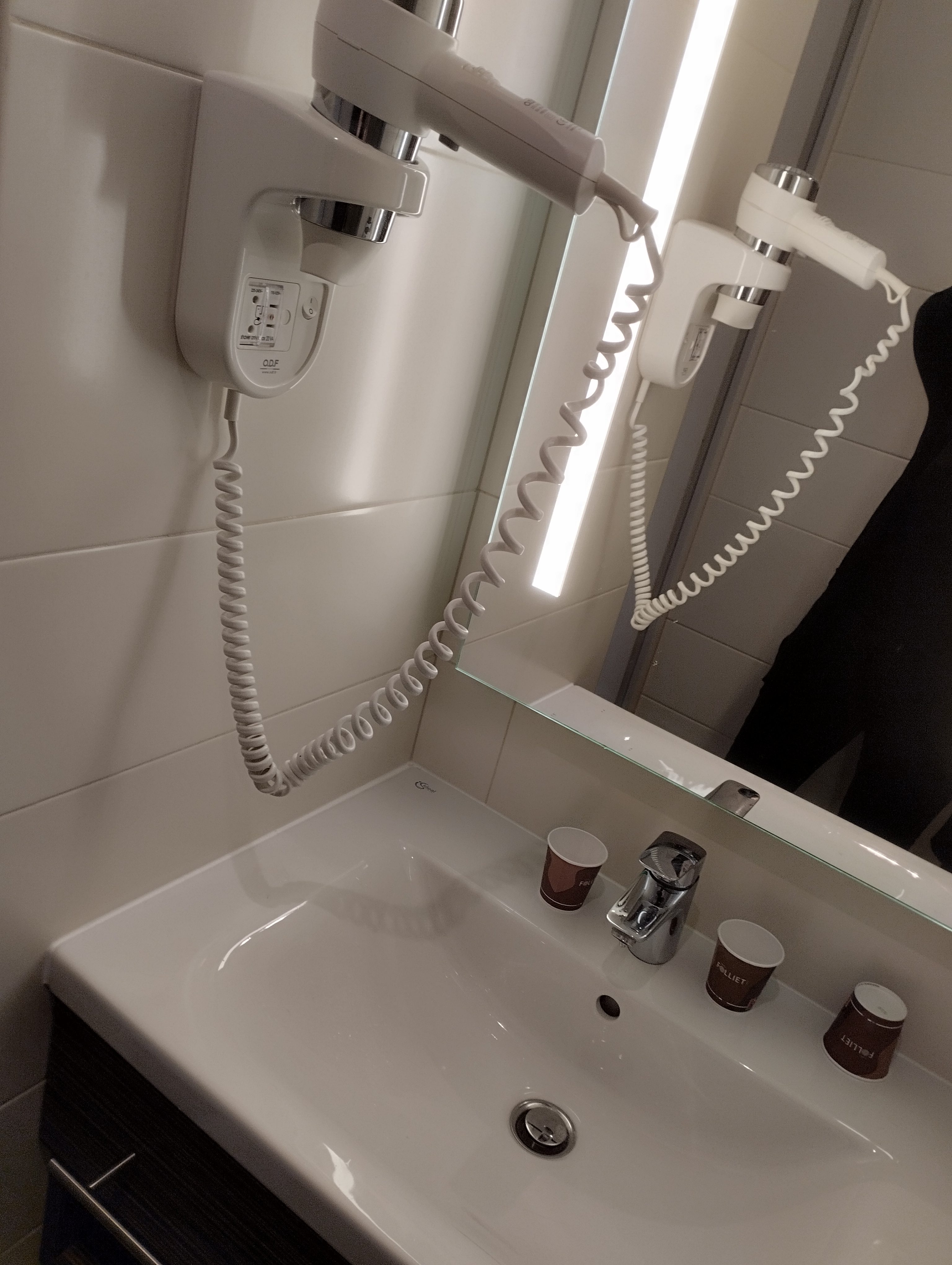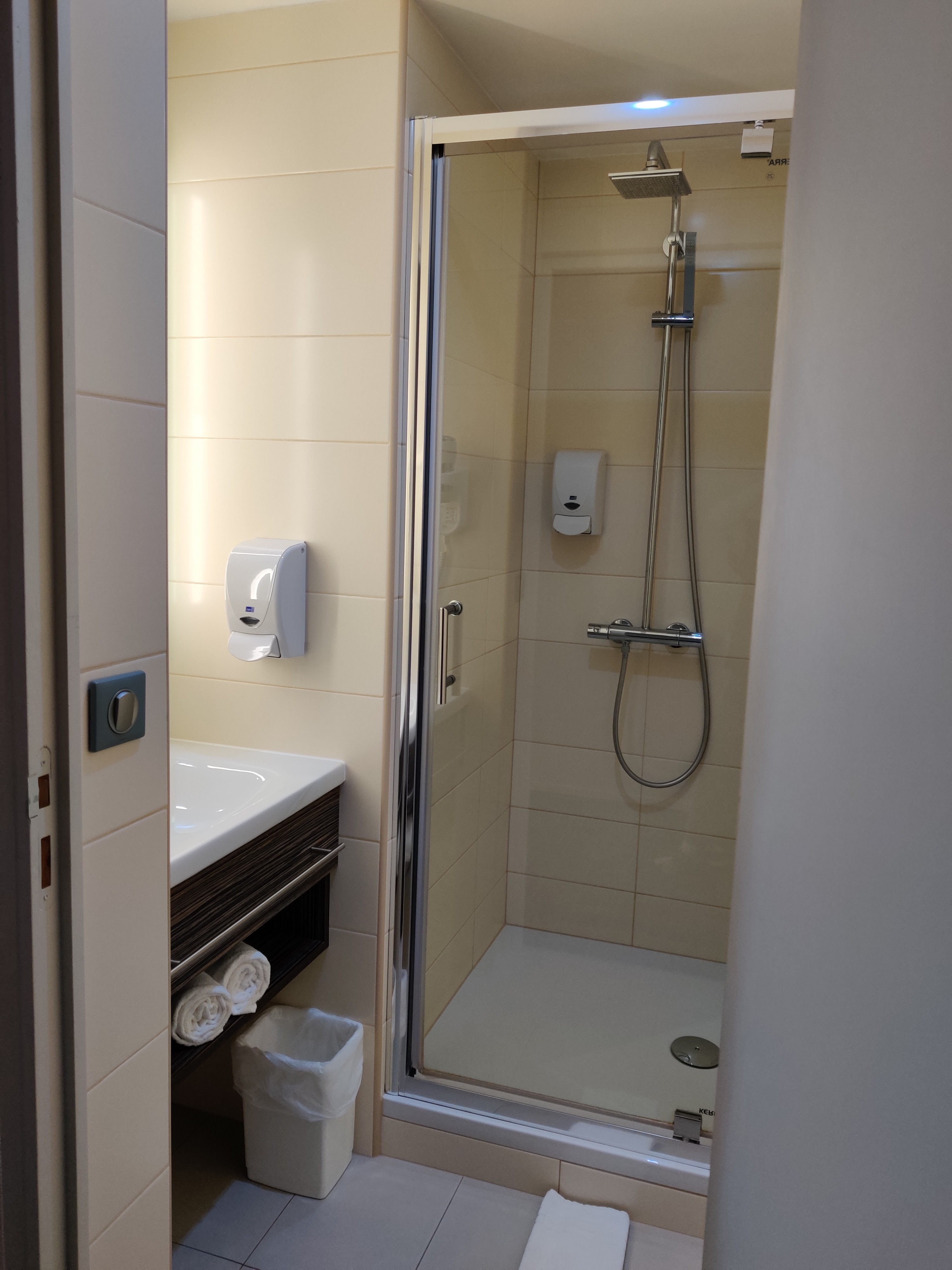 Les chambres ne sont pas terribles. La douche est face au lit, le lavabo à l'entrée, c'est particulier. Trop de bruits de clac clac dans la douche , je pense que ça vient de la tuyauterie mais c'est très dérangeant. Les oreillers sont trop mous. La lumière rentre trop dans la chambre. Le petit-déjeuner est minimaliste. J'ai trouvé quand même 2 points positif : L'accueil de la personne qui travaille de nuit et l'emplacement. Ce qui est certain, c'est que je n'y retournerai plus.