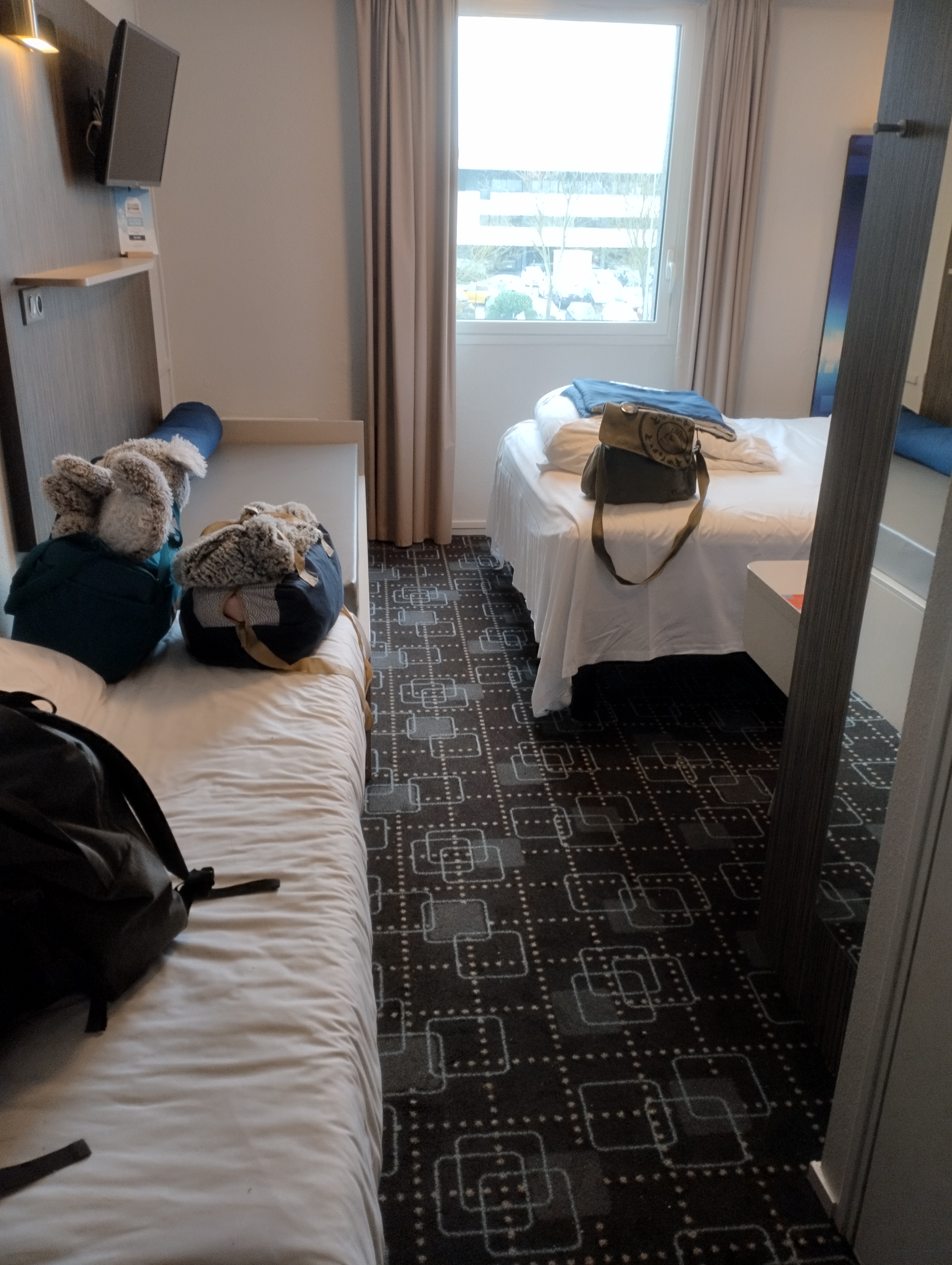 Ne mérite pas vraiment 3 étoiles, chambre pour 4 plutôt petite. Pas de frigo ni coffre fort dans la chambre. Petit déjeuner avec des produits plutôt bas de gamme. Nous avons eu le droit à une alerte incendie a 1h du matin (on a pu retrouver tous nos voisins de chambrée sur le parking), ce n’est pas de leur faute mais une explication sur la raison aurait été bienvenue.