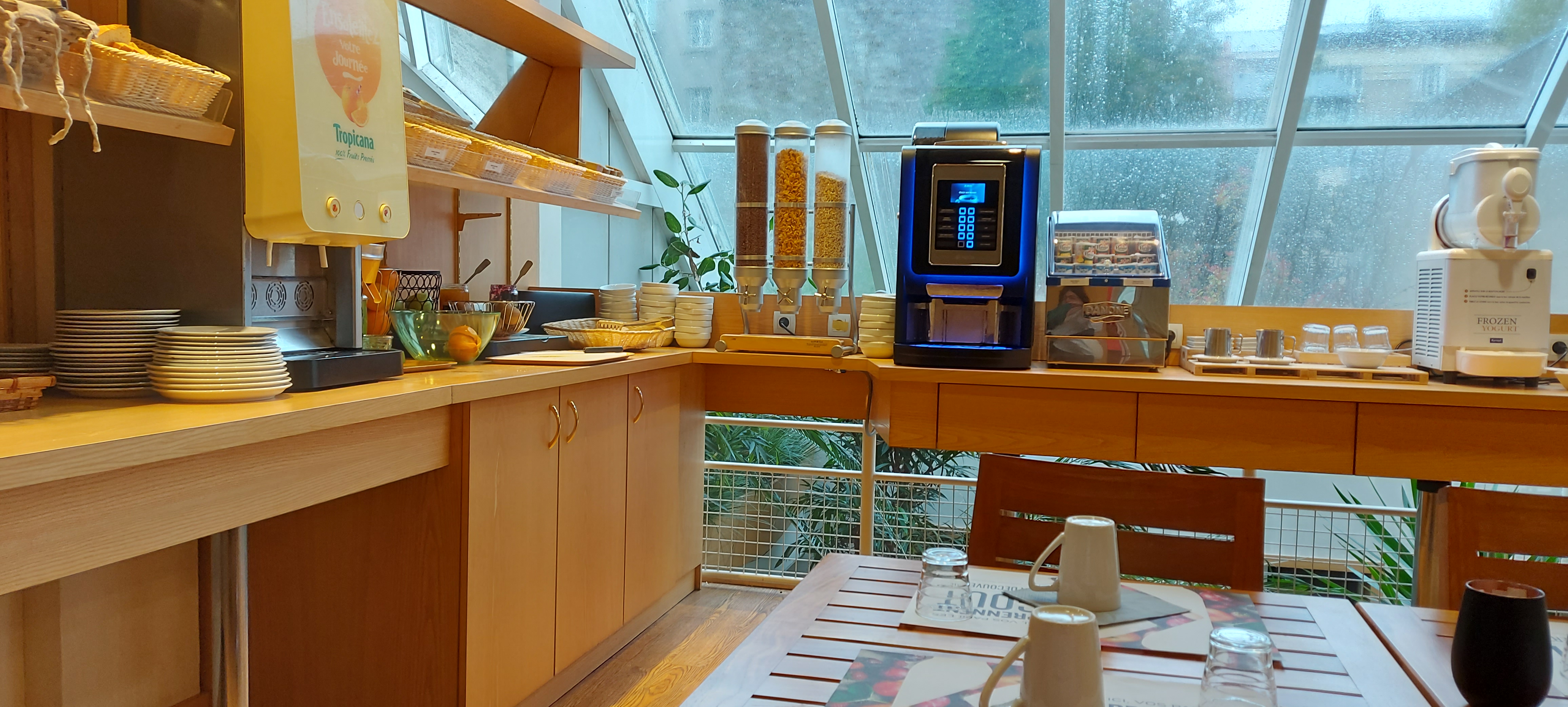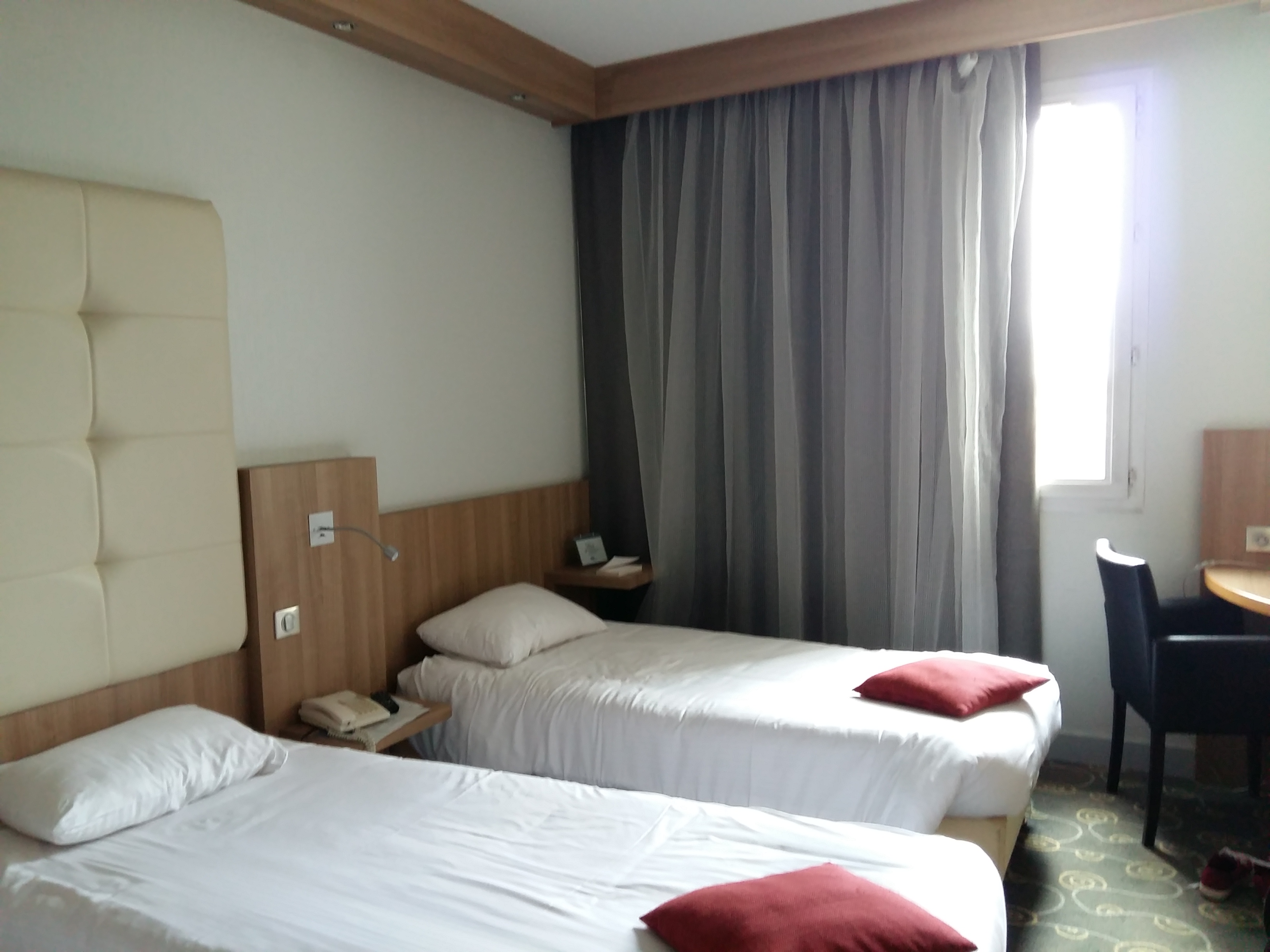 Nous avons été déçus par cette hôtel, la chambre n'était pas propre : poil dans la baignoire, coin de la chambre pas aspiré et poussière sur la table de nuit d'autre part la chambre était bruyante donnant sur un boulevard très fréquenté. concernant la salle petit déjeuner en se croirait dans une cafétéria, le choix des produits proposés est vraiment pas terrible croissant congelés et le reste que de l'industriel. Nous ne retournerons pas dans cette hôtel.
