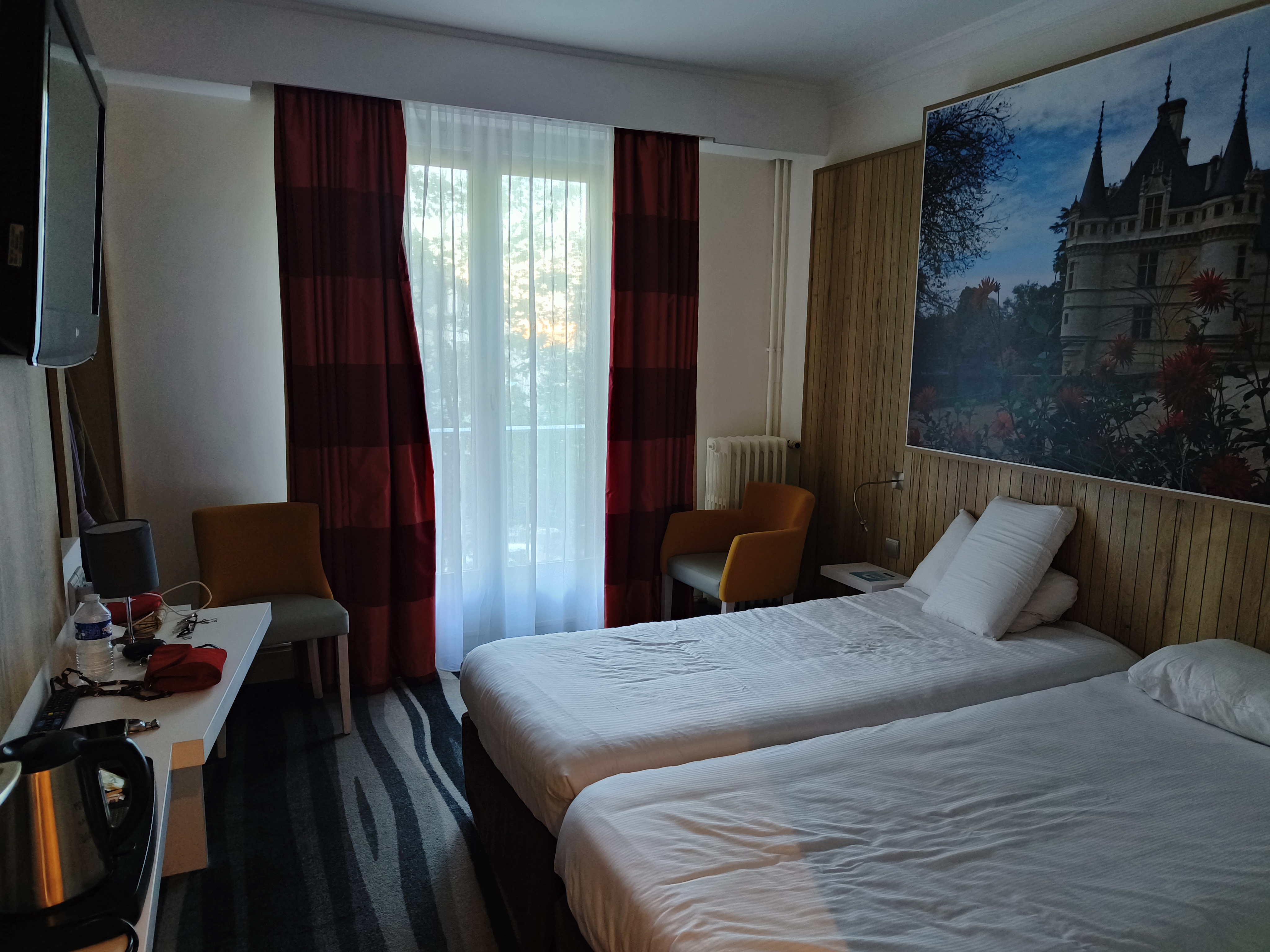 Bon hôtel, pas excessif (pris resa directe et par hôtels.com), lit très confortable, clim fonctionnelle, petit-déjeuner copieux (je recommande le yoghourt glacé, excellent). Parfait pour visiter les châteaux de Chenonceaux et Amboise...