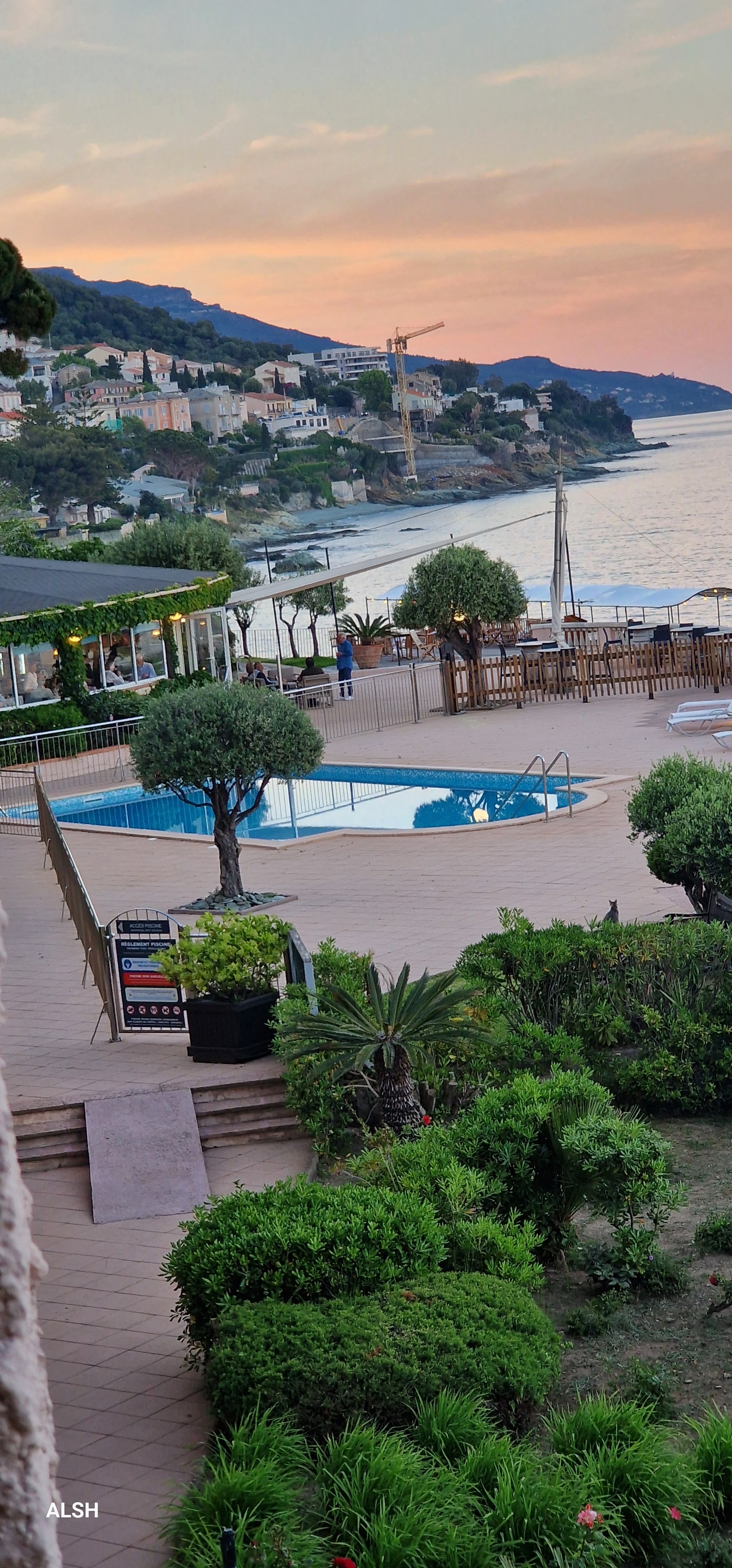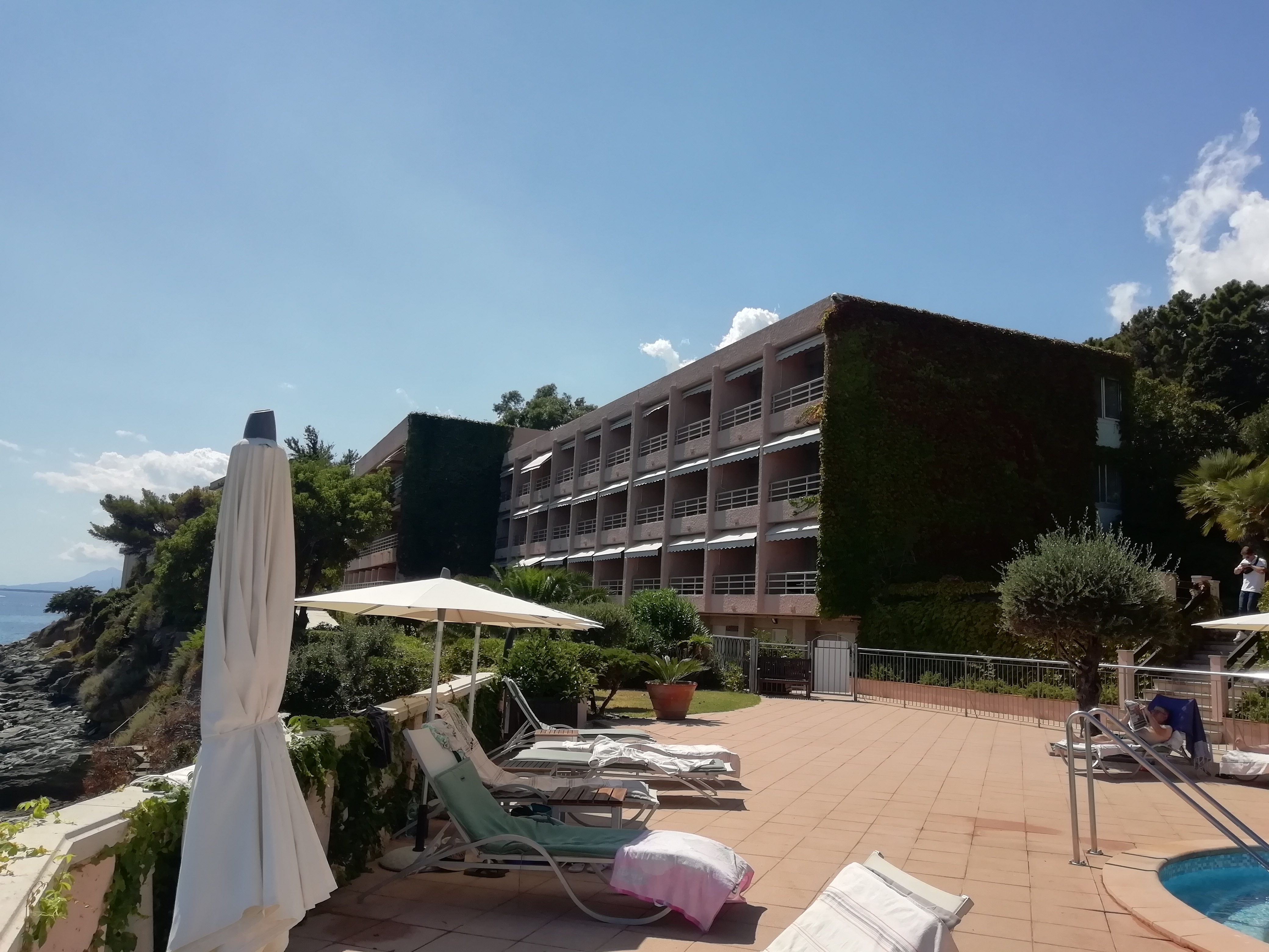 Très bel hôtel, bien placé et avec une vue magnifique et un personnel sympathique. Belle piscine surplombant la mer. A éviter le restaurant (sauf pour le point de vue tout simplement magnifique et le personnel sympathique) car vraiment trop cher pour des assiettes peu copieuses (versus les rations très généreuses des restaurants corses) et sans véritable attrait. Première fois qu on me sert un loup (bar) cuit en croûte de sel en 10 minutes ...!? 🤔