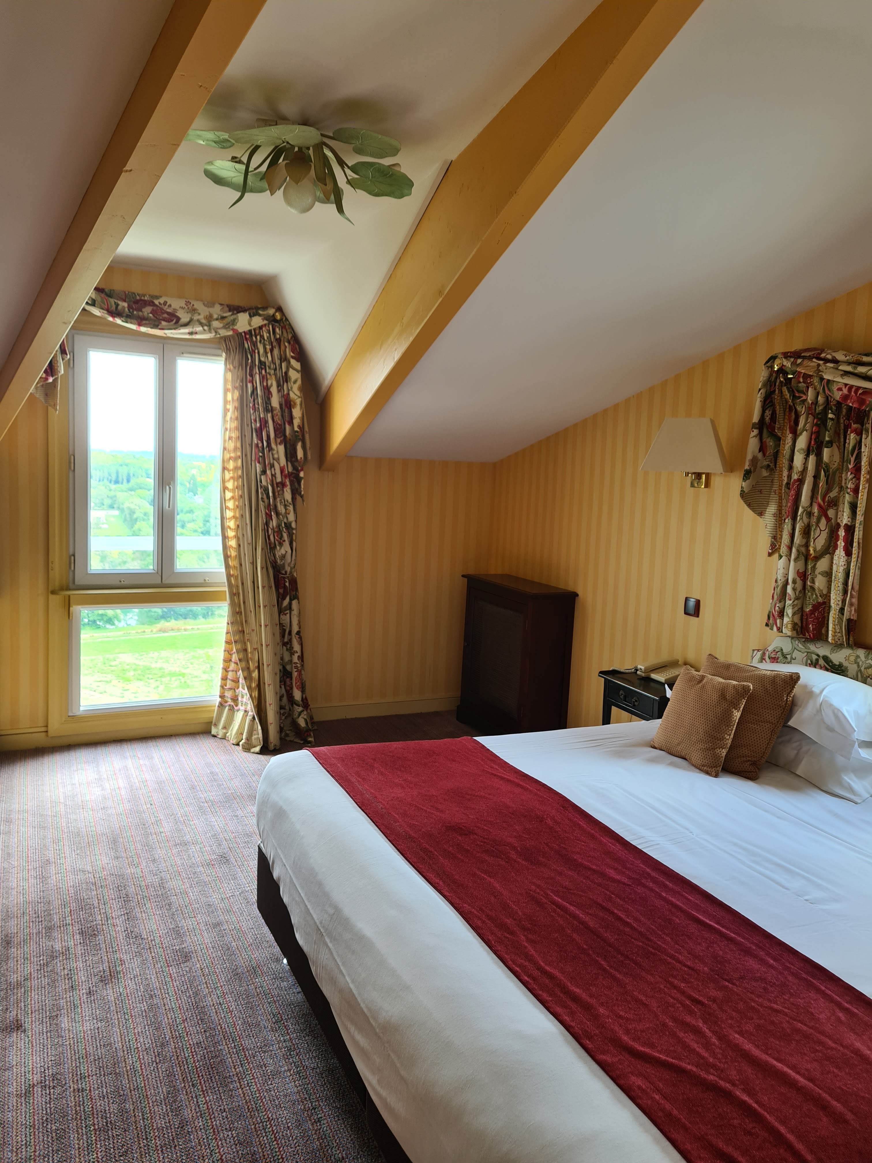 Très bel hôtel installé dans un château situé sur une colline surplombant la plaine et le fleuve local : cadre magnifique. Néanmoins, je qualifierai le style des chambres de roquoquo... que je n'apprécie guère. Le restaurant est excellent, je le qualifierai de gastronomique !