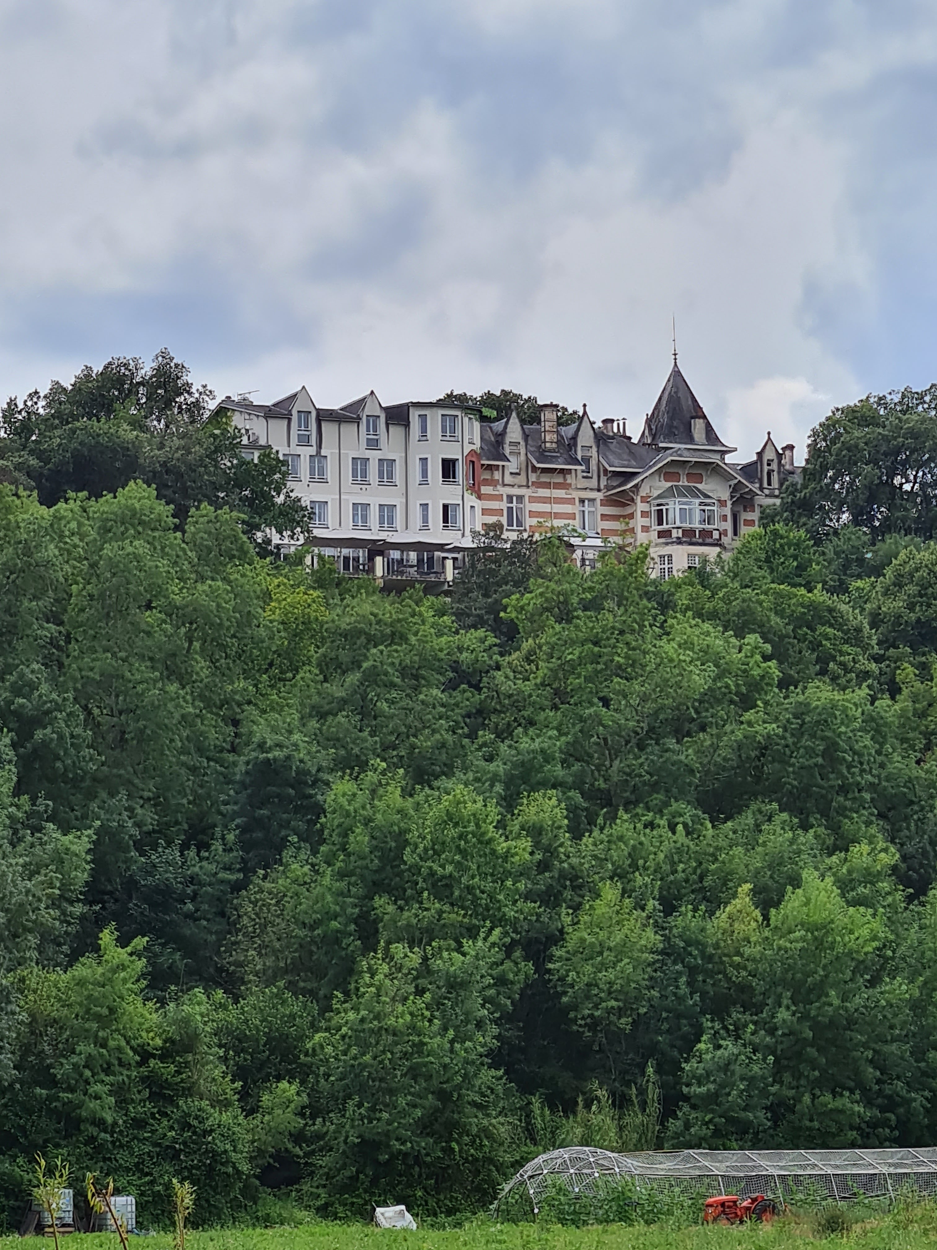 C'est un hotel de standing, mais que je qualifierais de grande bâtisse bourgeoise, ceci plutôt qu'un vrai château. Le staff est très agréable, autant l'accueil que le service en salle. Il y a une très jolie terrasse à l'arrière avec vue sur la vallée, elle justifie le prix du petit-déjeuner en été . Une agréable installation balnéaire au sous-sol comprend sauna, jacuzzi et hammam. Notre chambre était vaste, et bien décorée, seul bémol... le ronronnement persistant de la ventilation (VMC) ... nous avions arrêté la clim croyant que c'était elle mais... hélas non.