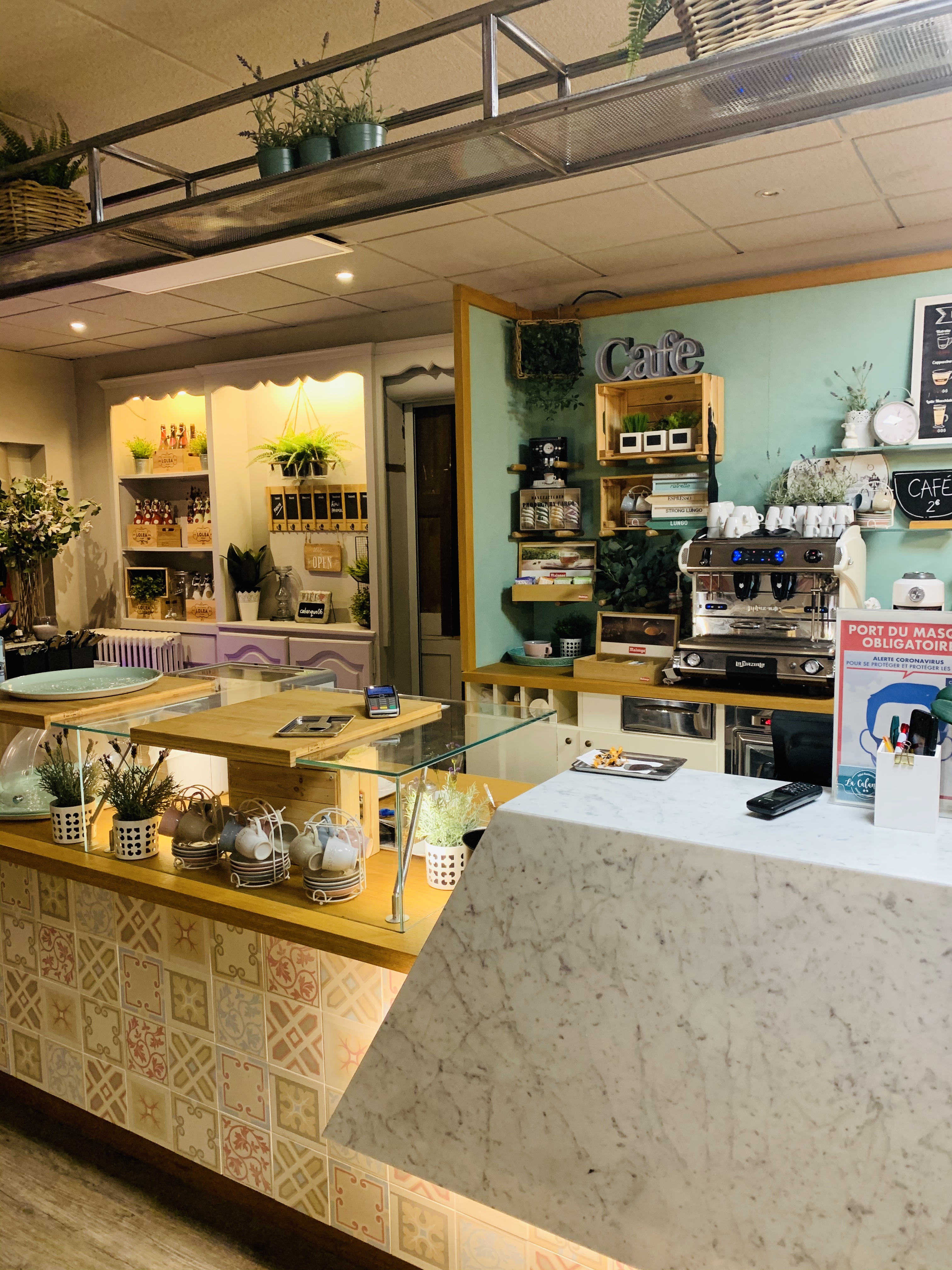 Une belle terrasse avec de magnifiques platanes. Une serveuse et sa patronne très sympas .On a pu goûter une spécialité Sud Africaine aux saveurs de cannelle. Une belle expérience