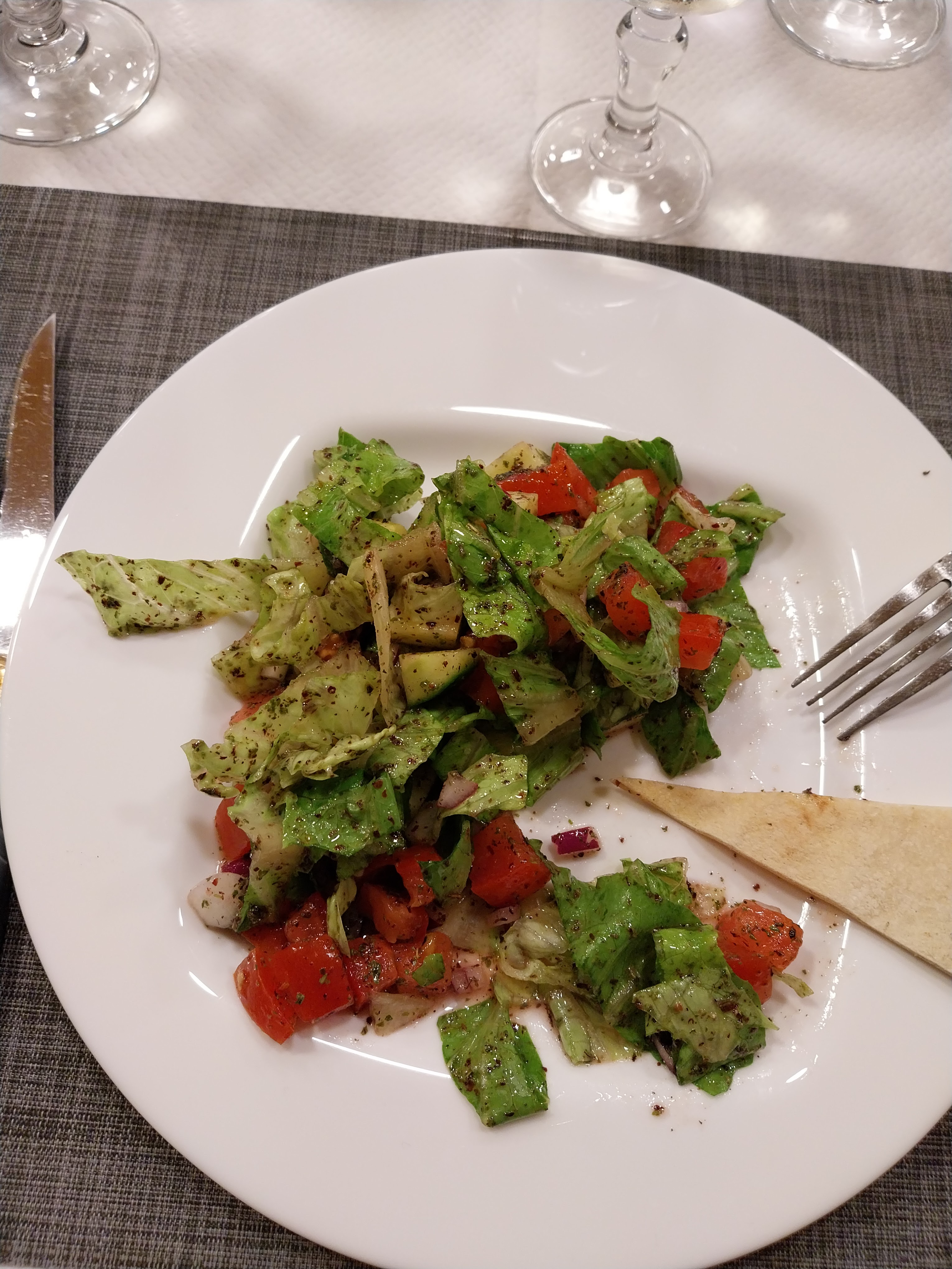 Nous avons été bien accueilli. Le gérant très sympa. Le repas été très copieux mais bon. Un bon dessert. Le vin de table qui était un vin libanais a été offert à mon conjoint qui l'a trouvé excellent. Nous recommandons !!!