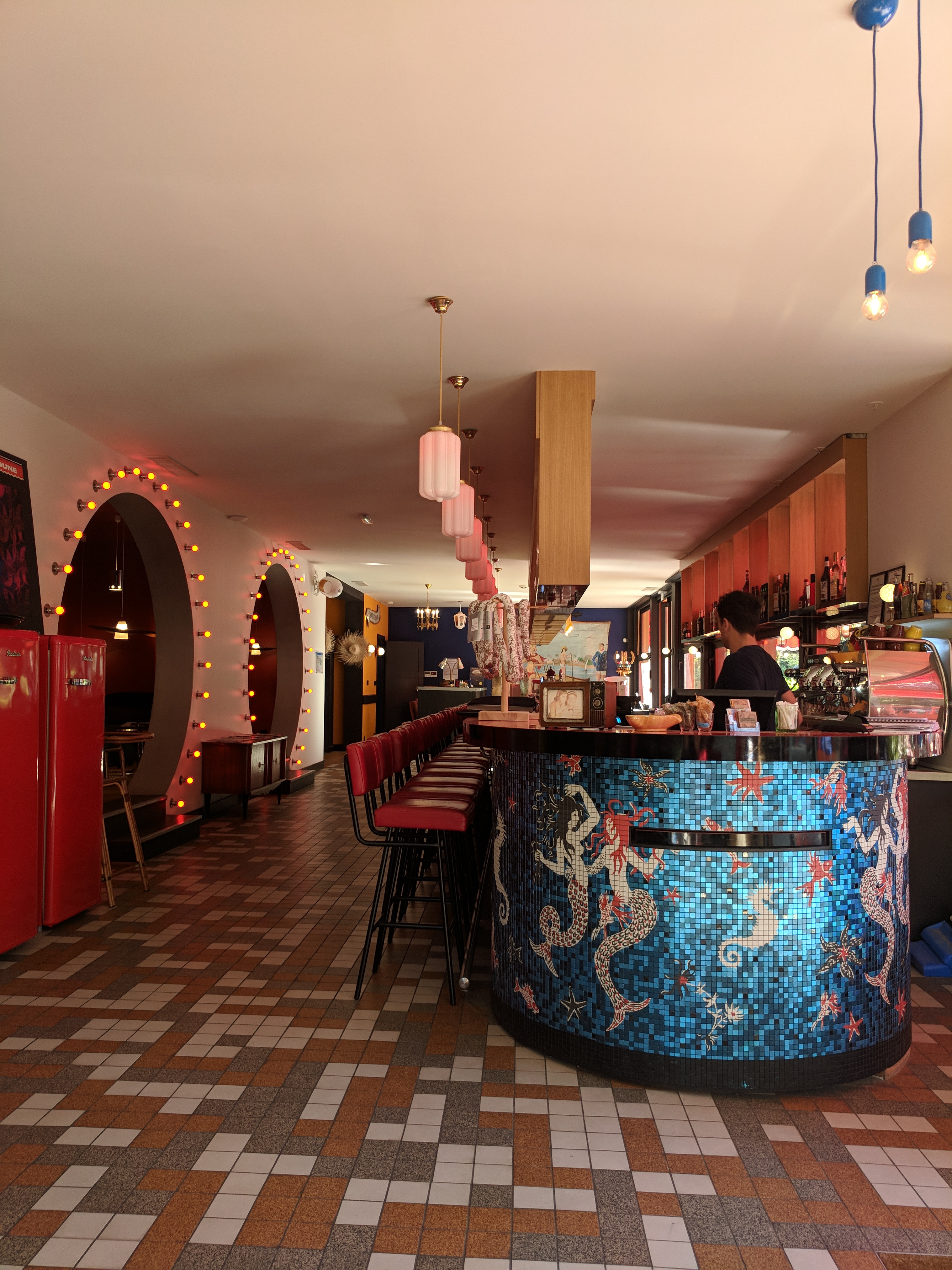 Superbe bar restaurant. Une déco très 70's. Une équipe très sympathique. J'y ai passé un excellent moment. MERCI