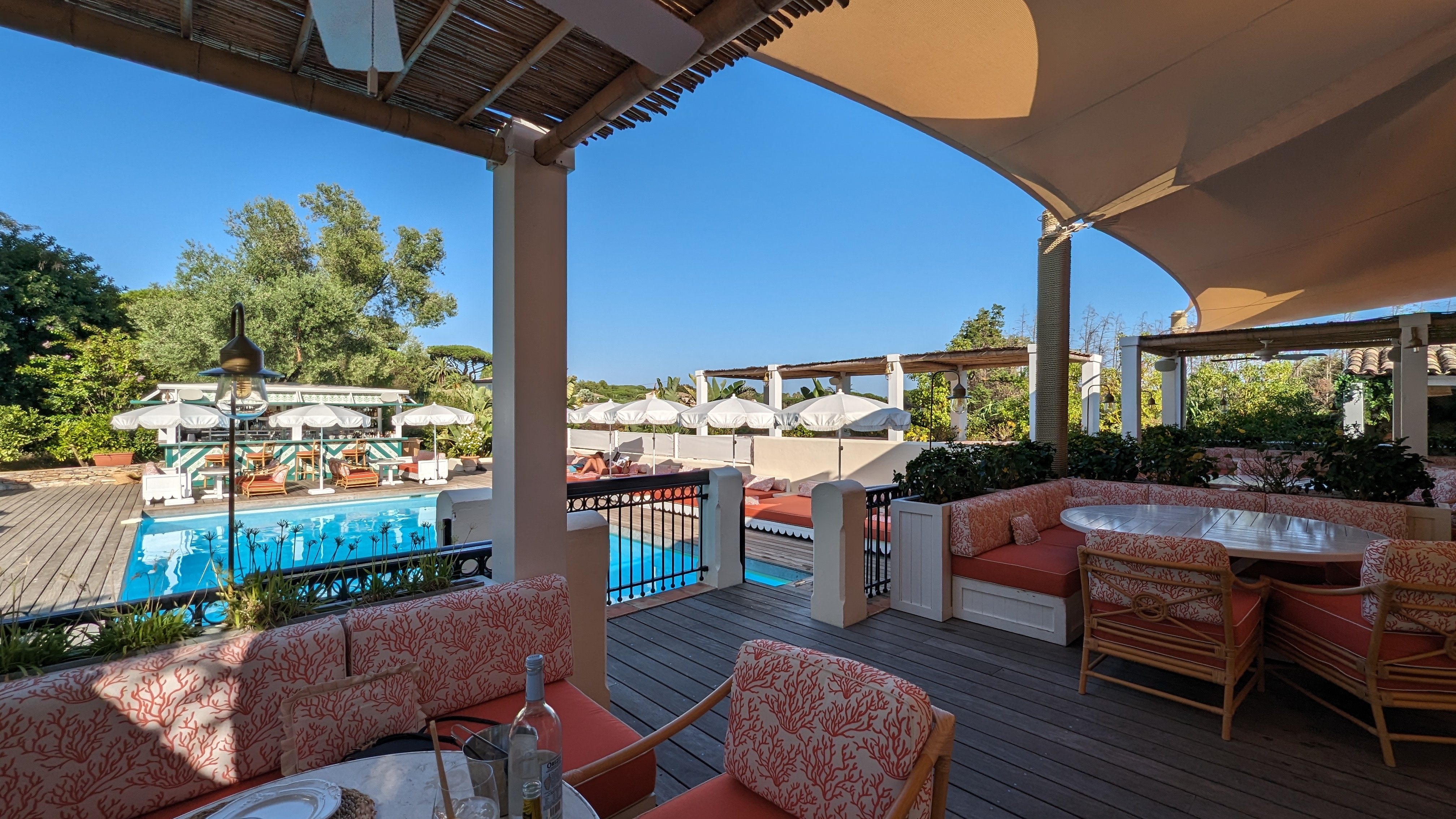 Accueil voiturier bien Accueil resto très bien Repas excellent Terrasse magnifique à côté de la piscine Prix dans la moyenne de st tropez.