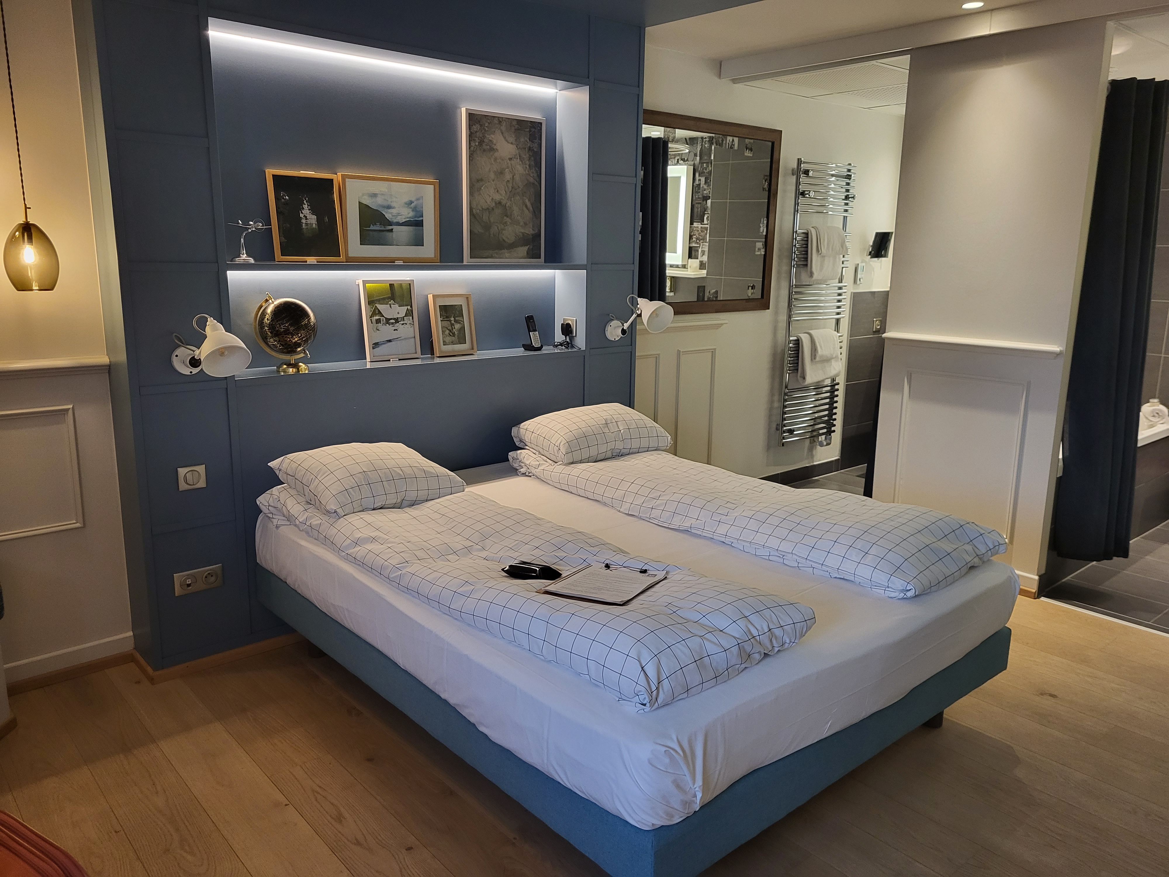 Accueil parfait avec accompagnement jusque dans la chambre et explications concernant le fonctionnement de la douche et baignoire. Tout est impeccable de propreté. L'ambiance est cosy, chaleureuse. Le personnel très sympathique et au petits soins. Le resto : nous n'avions pas réservé mais cela n'a pas été un problème. La carte est très bien montée avec une liste des allergènes claire et précise. Idem pour la carte des vins qui donne des indications sur les meilleurs mariages possible en lien avec les plats de la carte. Cette dernière est renouvelée tous les 3 mois à chaque saison. Le petit déjeuner est servi jusqu'à 11h00. Impeccable pour les lève tard. Il est rechargé jusqu'en fin de service (a 10h45, ils rechargaient en saumon fumé 👏🏻). Pour couronner le tout, les taxes de séjour nous ont été gracieusement offertes lors de notre départ. Nous y reviendrons avec plaisir si notre route nous ramène dans les environs.