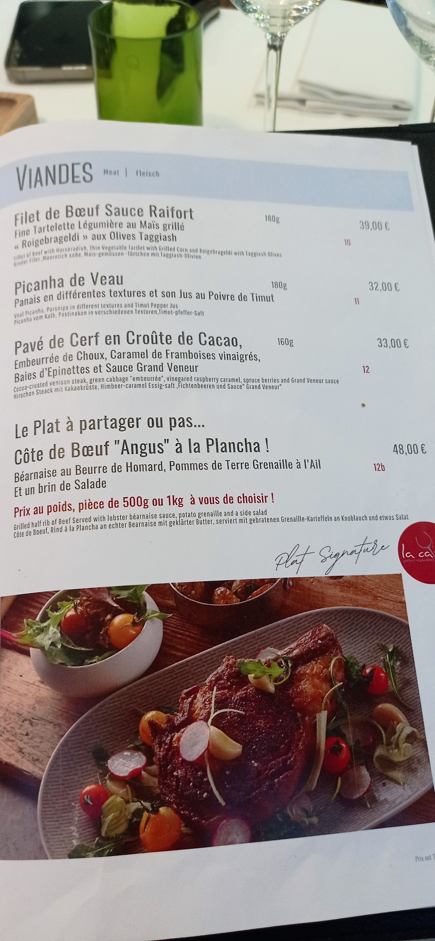 Nous avons passé une délicieuse soirée au restaurant de la villa k. Le personnel était aux petits soins et très professionnel. La qualité des mets irréprochable (particulièrement la viande et la sauce qui l’accompagne)