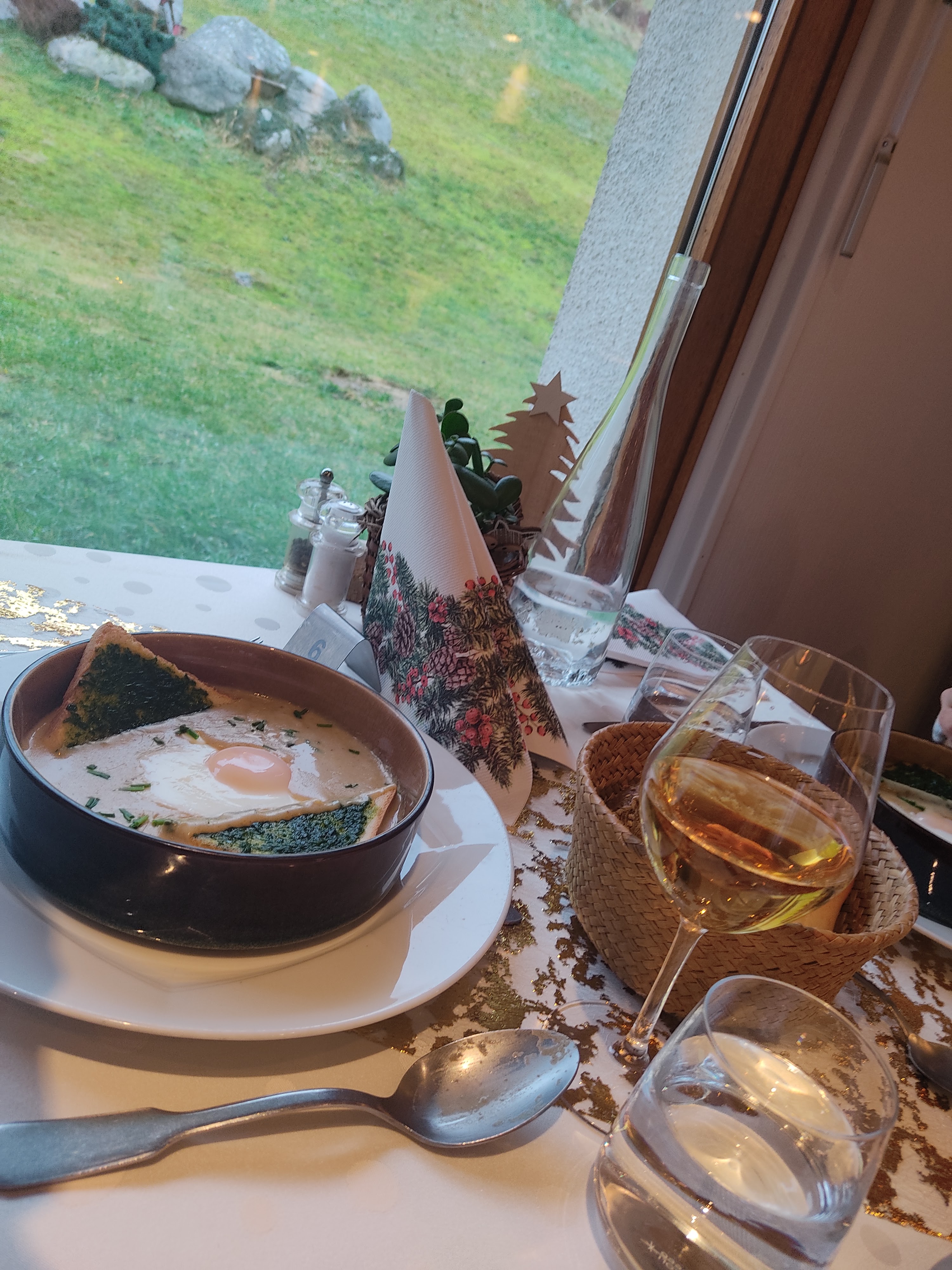 venu exclusivement pour le repas du réveillon de noël en amoureux, nous avons mangé une cuisine raffinée pour un prix très correct. le personnel est au petits soins. nous recommandons.