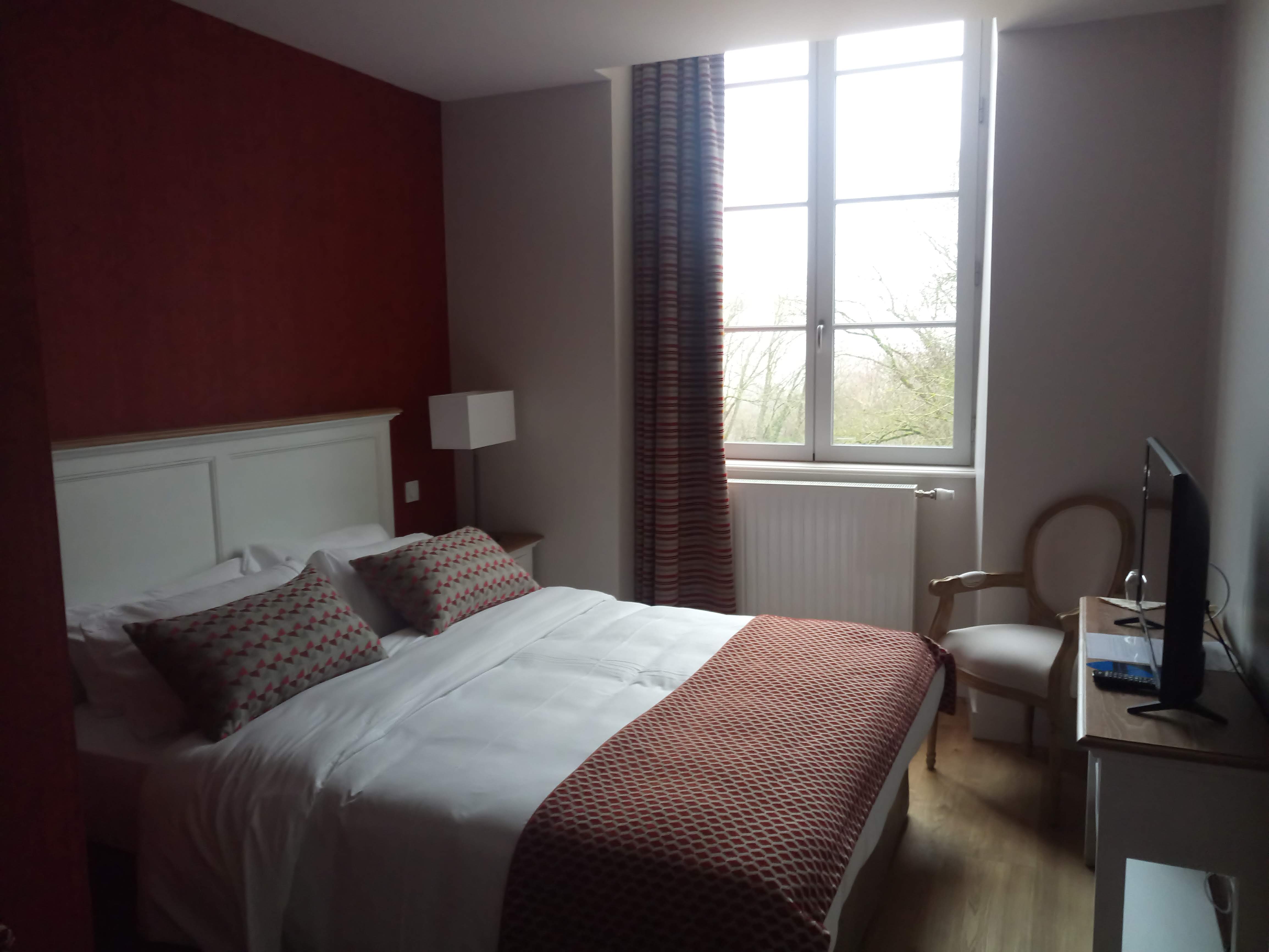 Cadre magnifique ! Ravissant domaine arboré avec un Château recouvert de vigne vierge (réalisation de très jolies photos dans un cadre authentique). Vastes chambres : décorées avec goût, entièrement neuves et bien équipées (mini bar, internet, coffre, accès handicapé sans problème !). Un mot tout particulier concernant la gentillesse et professionnalisme avec lesquels nous avons été accueillis ! Réception inoubliable.