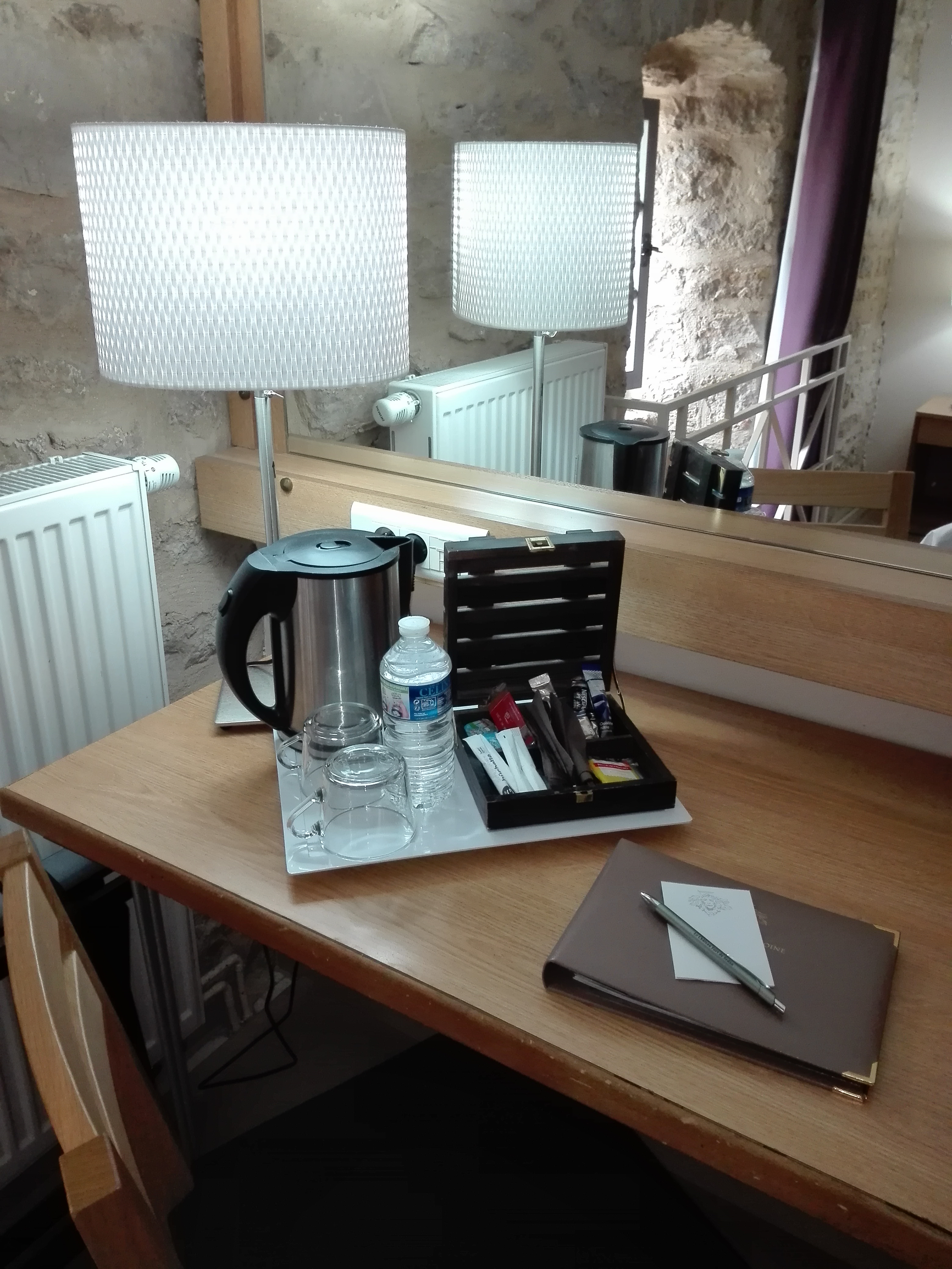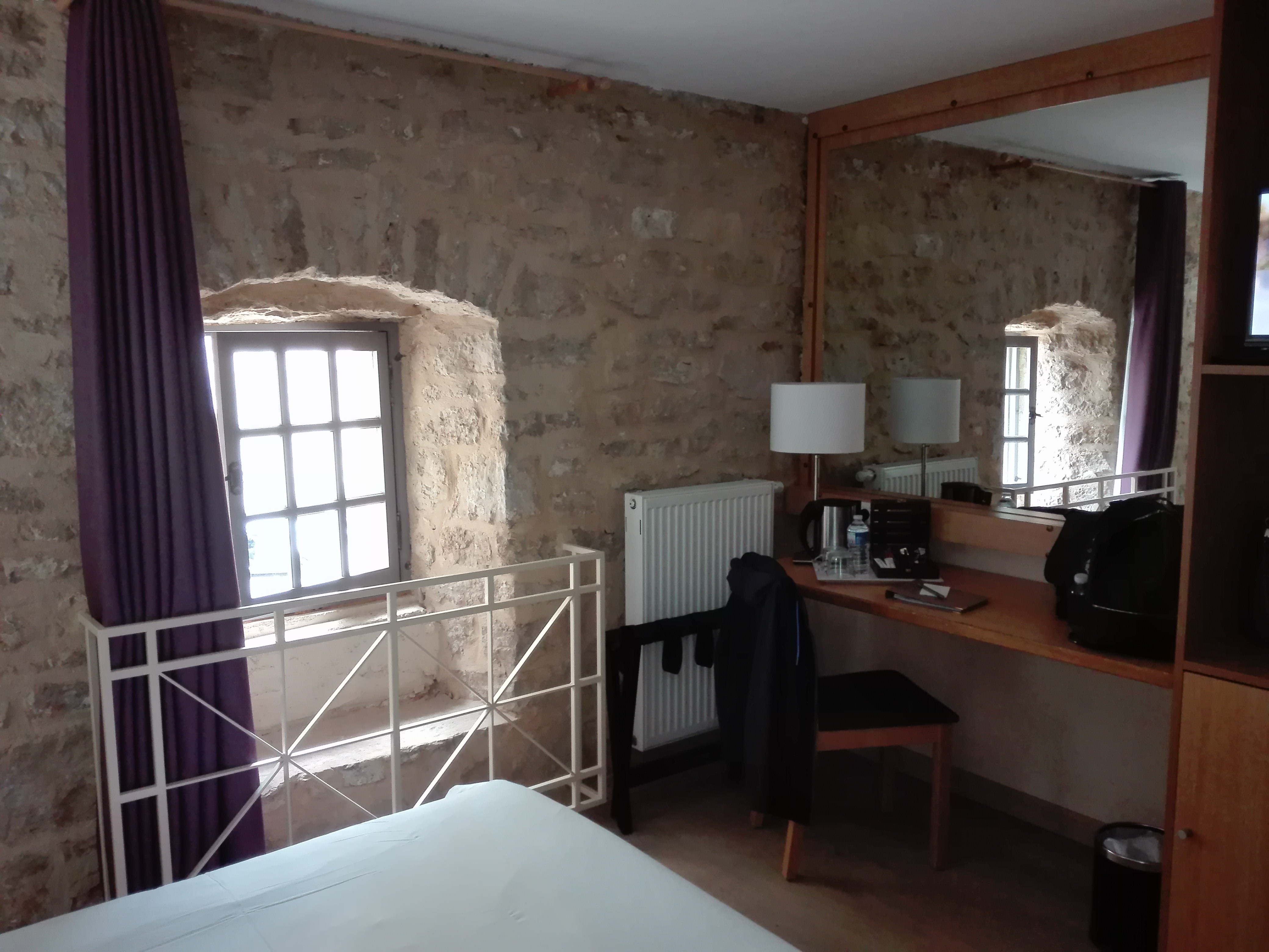 Hôtel dans un bâtiment très bien restauré avec des matériaux de qualité et dans un cité exceptionnel. Il est dommage que le petit entretien ne soit pas réalisé avec promptitude cela doit tenir de la jeunesse des employés qui d'ailleurs sont très agréables. L'isolation entre les chambres est parfaite quant à celle avec l'extérieur le simple vitrage des fenêtres n'est pas assez efficace. Je vous conseille le restaurant où le chef nous a cuisiné un repas de très grande qualité, cuisson juste à point, saveurs au top. Une signalétique très simple pour le restaurant situé au troisième étage serait un plus en sortie des ascenseurs. Le bar et la terrasse permettent des moments conviviaux. Pour la nuit, il est possible de stationner la voiture à l'intérieur de l'enceinte du château devant l'hôtel.
