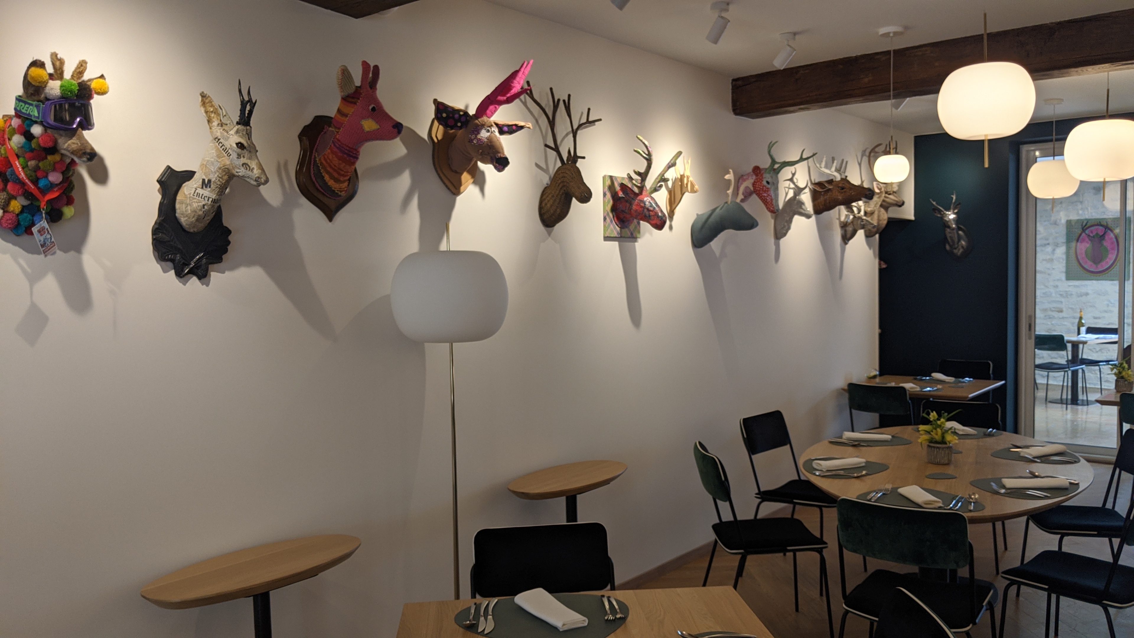 Hôtel-restaurant face à l'église au coeur de Meursault. C'est vraiment un endroit idéal pour dormir et excellent (!) pour manger. Avec une collection artistique de cerfs sur le mur et une grand-mère (peinte dans une fenêtre) qui regarde au premier étage. Coup de cœur personnel.