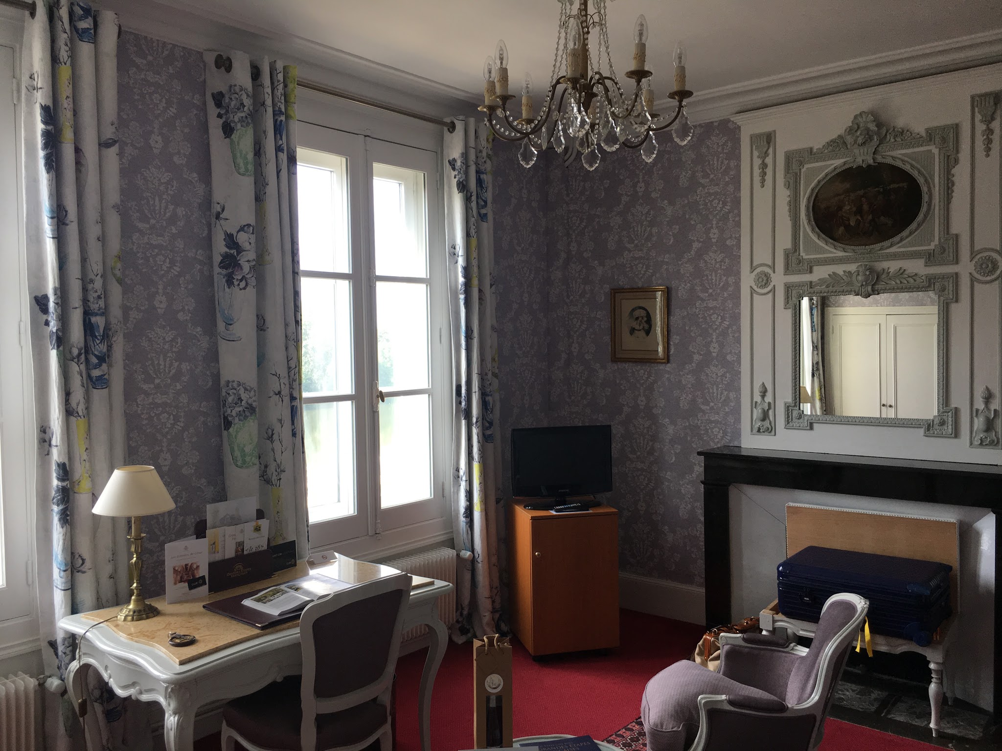 La chambre offre l'accès à une terrasse laquelle ouvre sur le parc, la piscine. Alors qu'elle n'offre pas la vue sur la Loire, elle a l'avantage du calme, loin du trafic automobile et du tumulte du centre-ville. Nous avons également apprécié la disponibilité du sommelier qui semble très averti sur leqsq vignobles ligériens. Ce fut un grand plaisir, comme lors de notre précédent séjour.