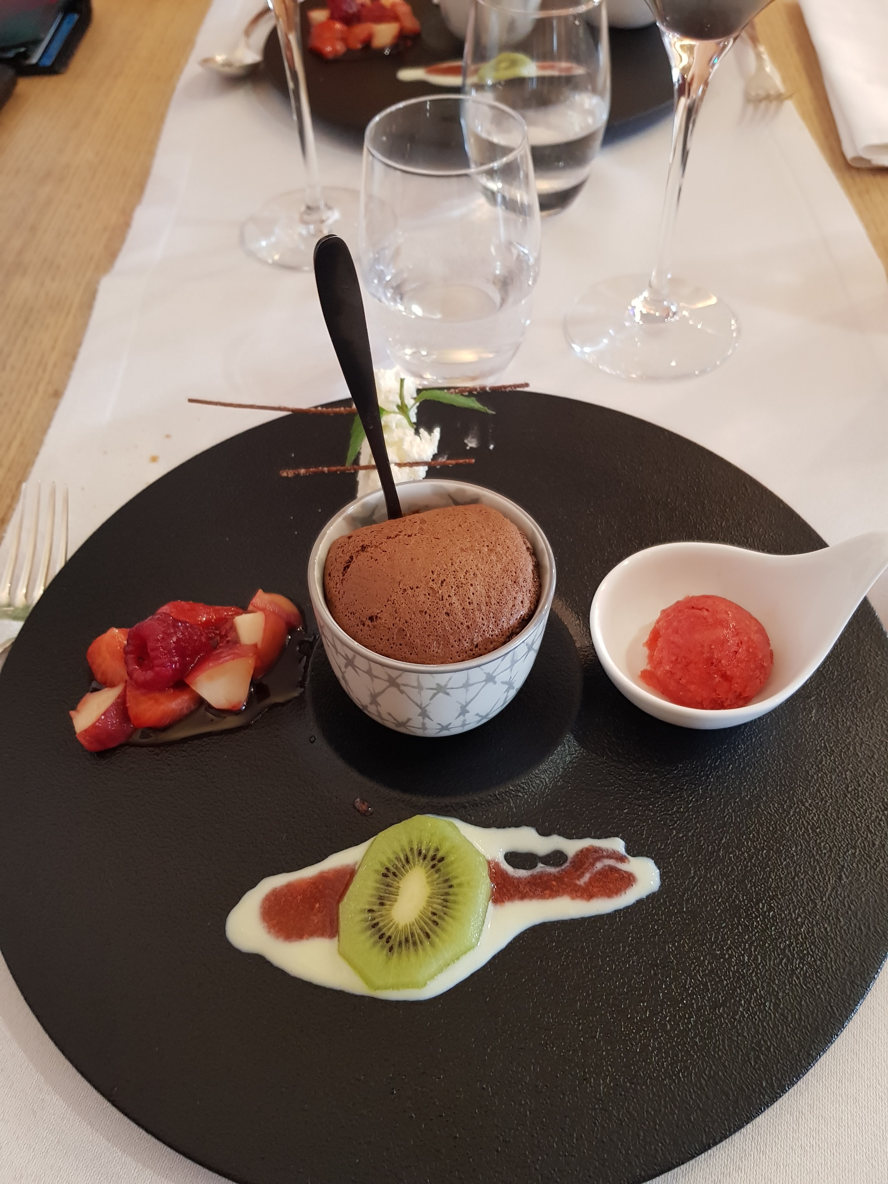 Dîner restaurant anniversaire. Un.peu déconcertant au debut avec la présentation des plats par le chef sans savoir quel est le menu et son prix. Mais ensuite belle decouverte. Un coucou de rennes excellent, avec une merveilleuse sauce et un tres joli dessert copieux mais rafraichissant. Nous decouvrons un chef passionne par sa cuisine.