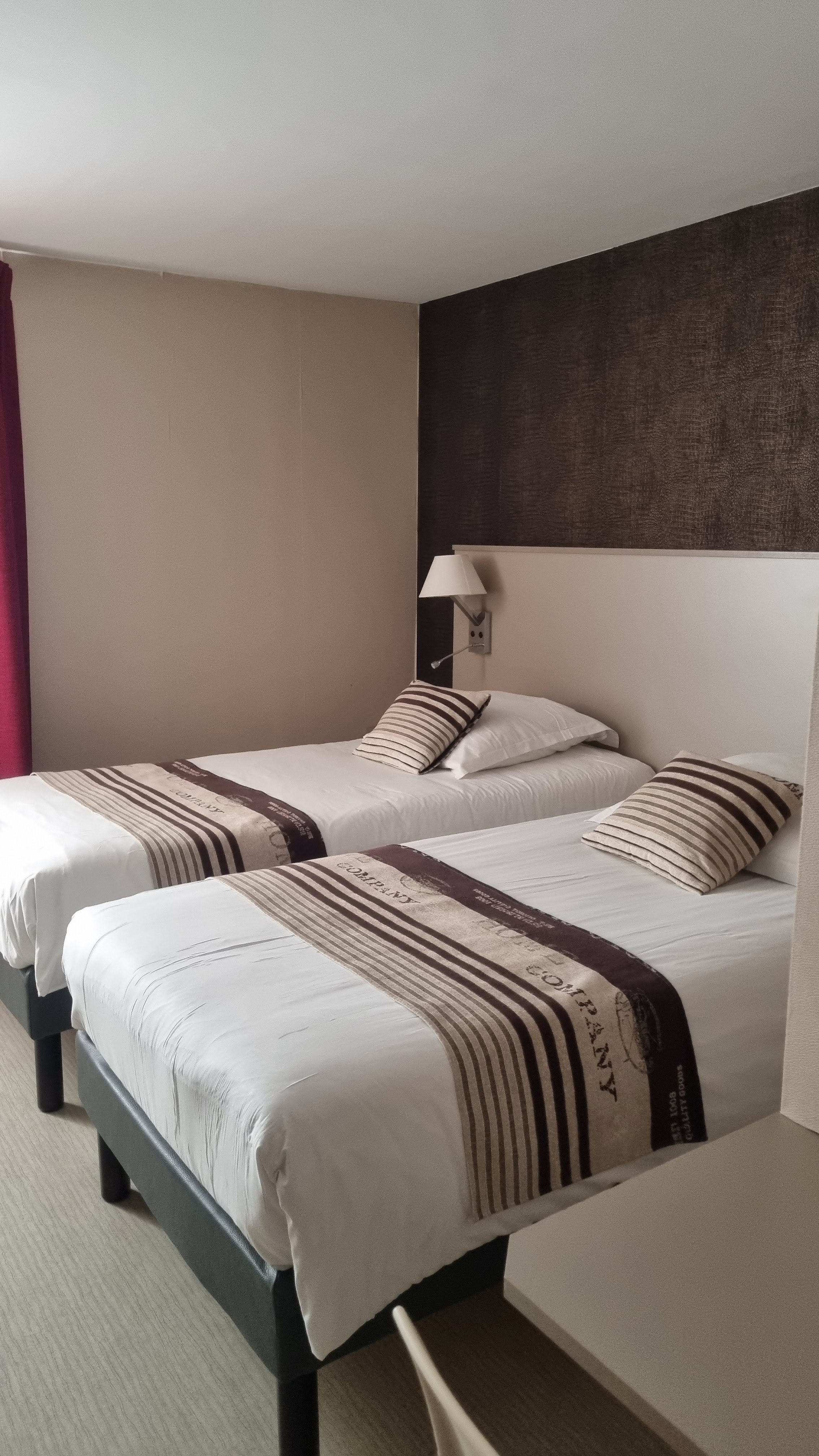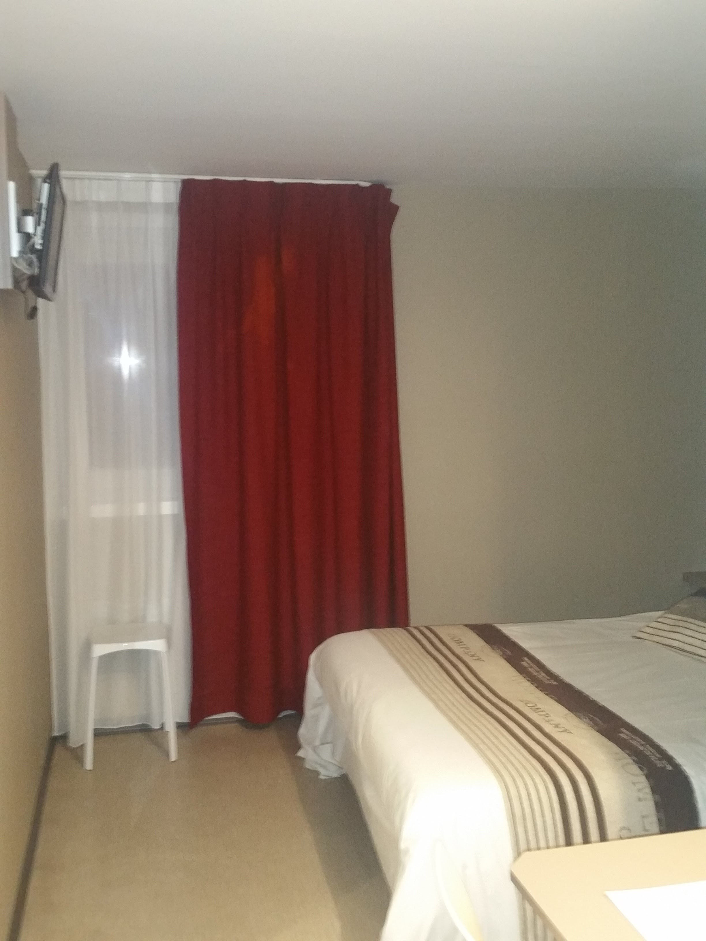 L'hôtel en lui-même n'est pas mal, place de parking, climatisation puissante, lits confortables, bonne pression d'eau et pas de bruit malgré qu'il y ait un mariage le jour de mon sommeil, le prix n'est pas mal du tout, 116 € la chambre double et concernant l'emplacement eh bien, ce n'est pas très loin et c'est quand même un hôtel de transit. Par contre le service de réception peut être très amélioré, le bar comme s'il n'existait pas, restant complètement fermé, le gars qui vous sert ne parle que français, pas anglais et encore moins espagnol (chose très courante en France, il pratiquement ne parle anglais personne nulle part, ils vous parlent français comme si vous deviez le comprendre quoi qu'il arrive et c'est ça) un spectacle pour s'enregistrer, imaginez faire la paperasse pour 14 personnes avec le traducteur mobile.... Mais bon, hormis le service en général, je dois dire que c'était bien, l'aventure n'était pas mauvaise.