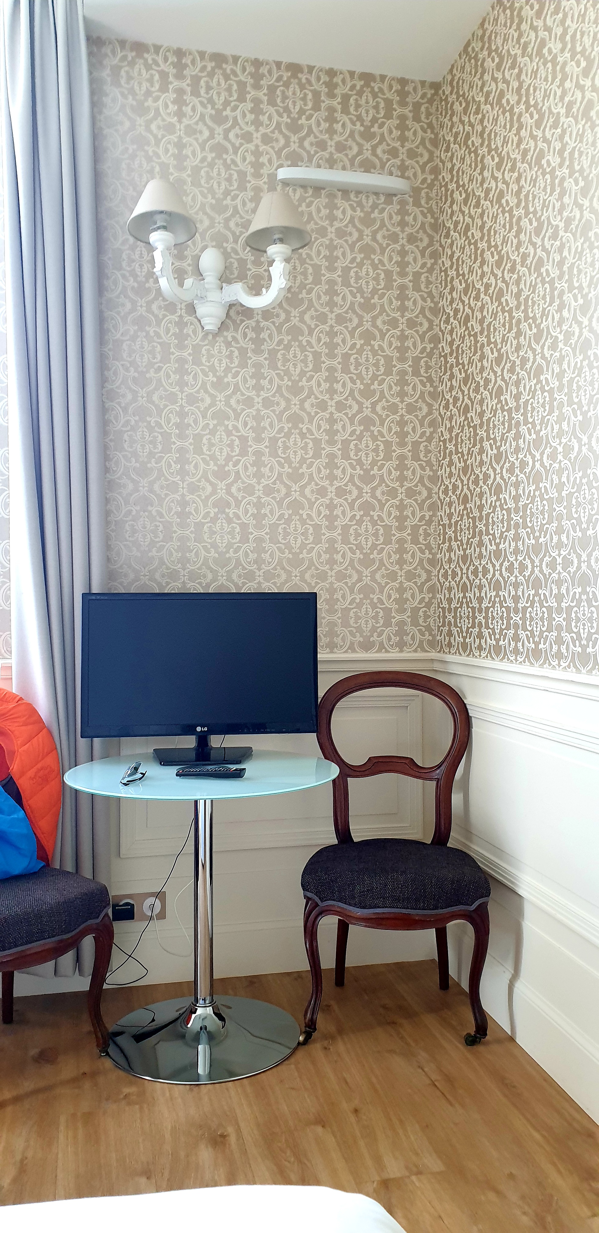 2ème séjour et toujours très bon hôtel, accueil courtois et discret, propreté de l'établissement en général +++, Juste une suggestion mettre un tabouret et surtout une tablette pour poser ses affaires dans la salle de bain. Bien situé juste à côté du château et des rues piétonnes. Parking privé fermé, pour info payant.