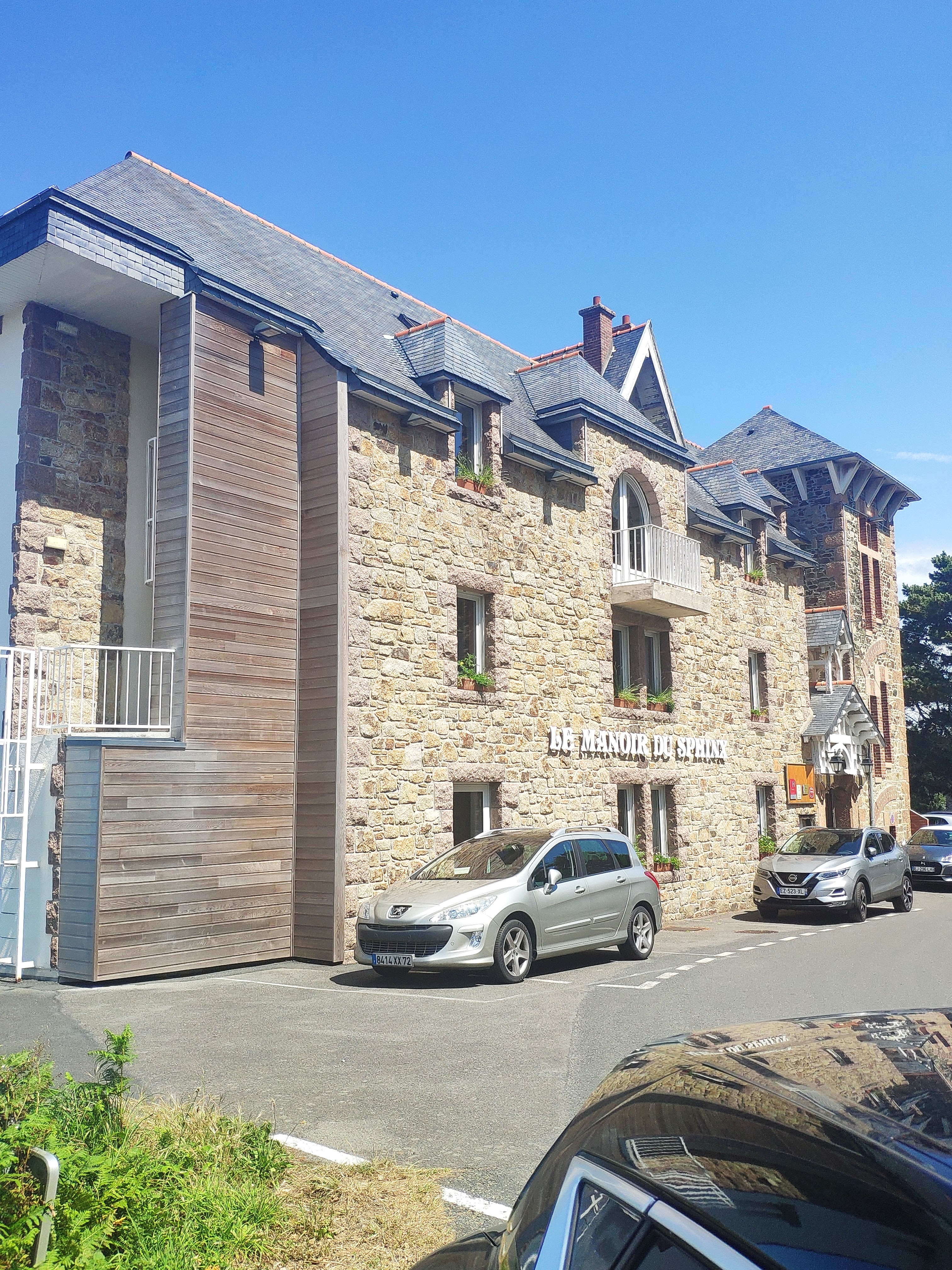 Établissement vue sur mer panoramique comme dans un paquebot. Bâtiment d'époque en granit possédant des chambres très propres, insonorisées, immense dressing, spacieuse. Proche de la plage de Perros. Les places de parking sont gratuites. Les petits-déjeuners sont top, avec le pain et les croissant fait maison par le maître restaurateur. Possibilité de déjeuner et dîner sur place. La carte est réduite mais c'est du fait maison. Parc accessible au pied du manoir. Ouvrez la fenêtre pour être en connexion directe avec la mer, refermez la, et retrouvez calme et silence. Bref, c'est un établissement à la situation exceptionnelle, tourner vers la mer. Rapport qualité prix, prestations remarquables.