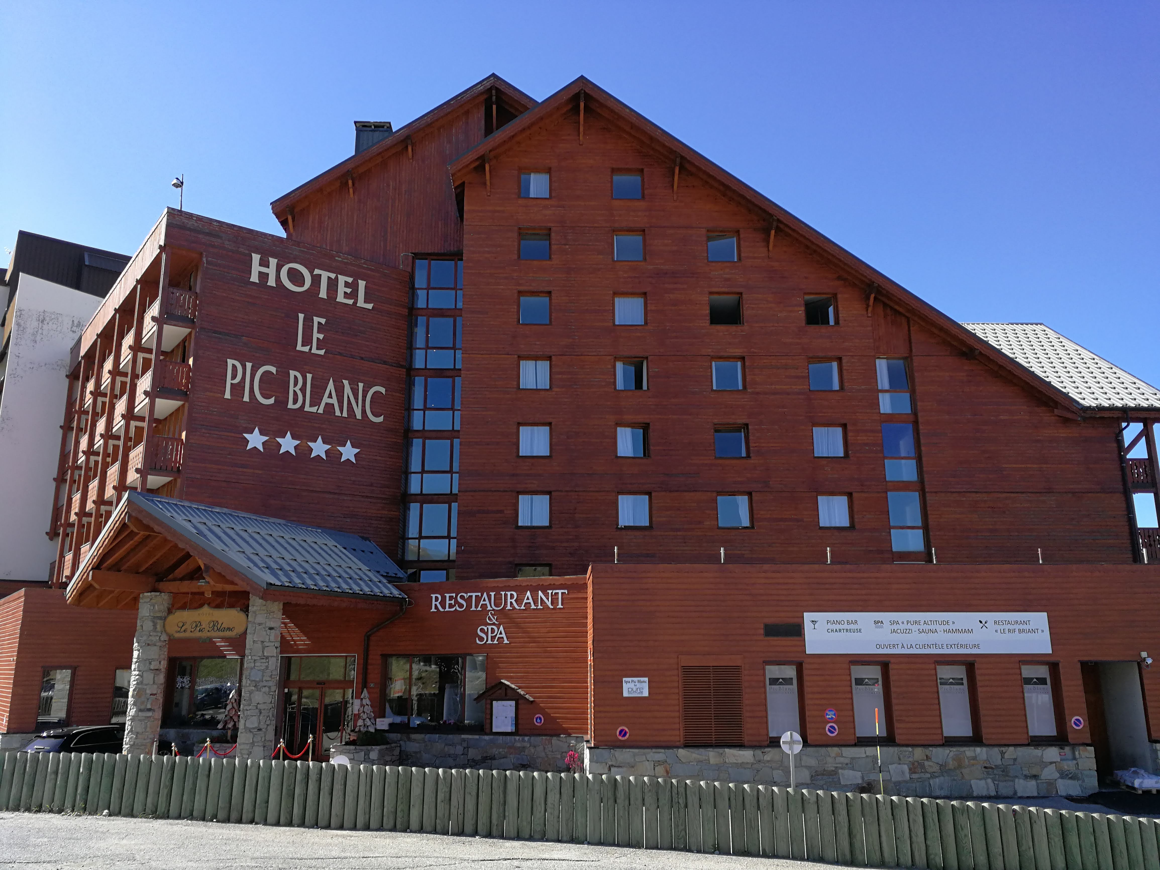 L'hôtel le Pic Blanc, est un hôtel avec tout le confort garanti, mais surtout le plus de cet hôtel, c'est son personnel, la charmante hôtesse aux petits-déjeuners, qui se préoccupe, 《si le buffet nous convient》, Mathieu au bar, qui à peine assise, sait, ce dont j'ai besoin, Les Dames de chambre adorables...En résumé TOUT le professionnalisme du personnel a de loin, un professionnalisme de Palace, merci à Mr le Directeur pour cet excellente gestion, à l'année prochaine...
