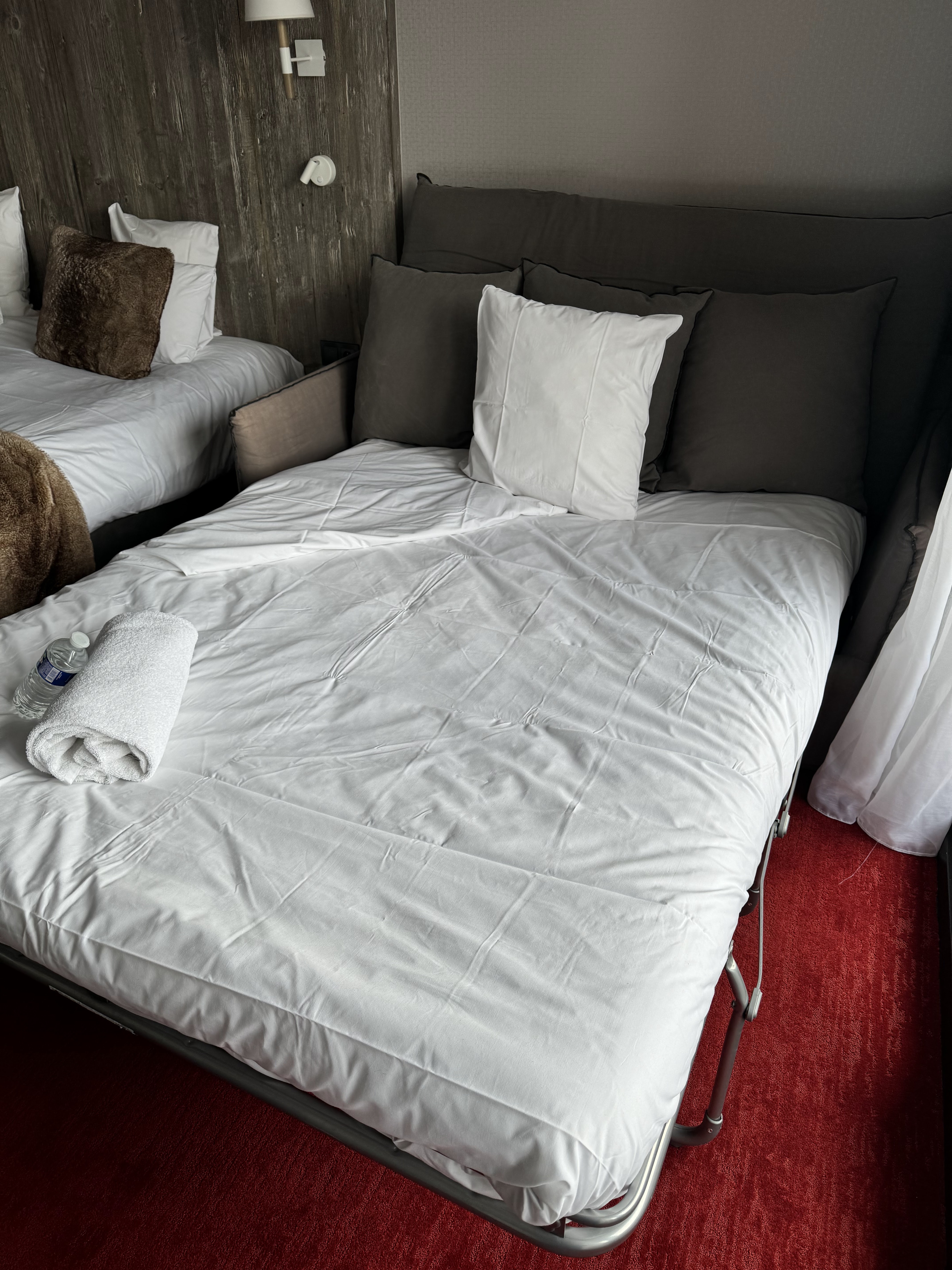 La chambre était de qualité 4 étoiles, tout le reste était plutôt 3 étoiles. Le seul inconvénient de la chambre était que nous avons été réveillés par les pelleteuses et les camions qui transportaient la neige à partir de 7 heures du matin. Le petit déjeuner était correct, rien de spécial à part des crêpes fraîches. Il faut payer et réserver le jaccuzi dont je n'ai jamais entendu parler auparavant, surtout pour un hôtel « 4 étoiles ». Je ne pense pas que nous ayons eu une seule interaction avec le personnel entre l'enregistrement et le départ... Très bien situé par rapport aux pistes, à environ 3 minutes à pied des vestiaires !