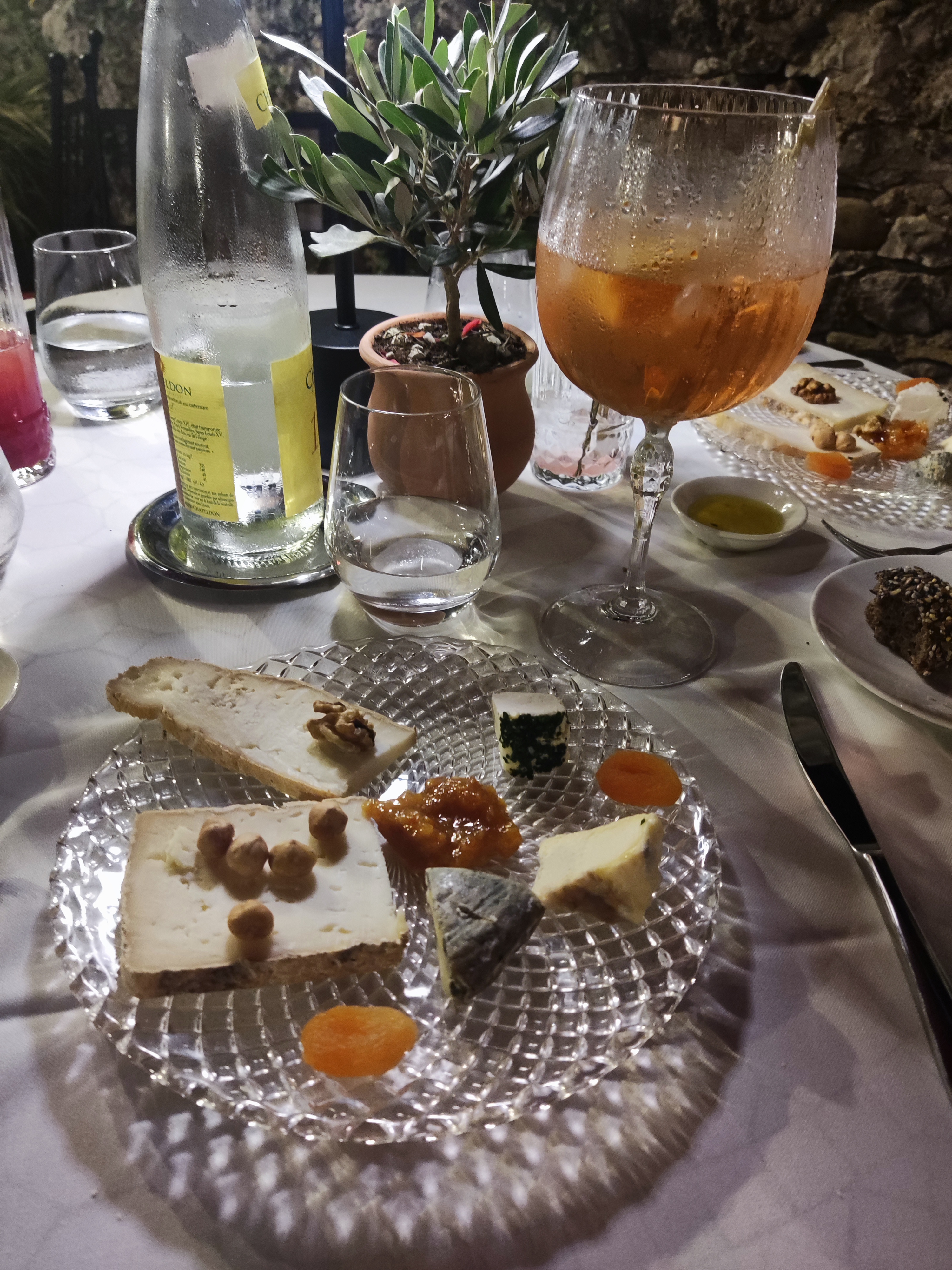 Nous avons visité le village de San Paolo di Venza, véritable perle à visiter, et avons déjeuné sur la terrasse panoramique de l'hôtel. Personnel très sympathique et professionnel. En attendant, ils ont servi quelques dégustations, notamment un disque de pastèque avec du pâté d'olives et du pecorino. Le poulpe rôti aux tomates cerises confites et l'épaule d'agneau aux légumes sont exceptionnels. La présentation de la sélection de fromages accompagnés de croûtons aux raisins est efficace.