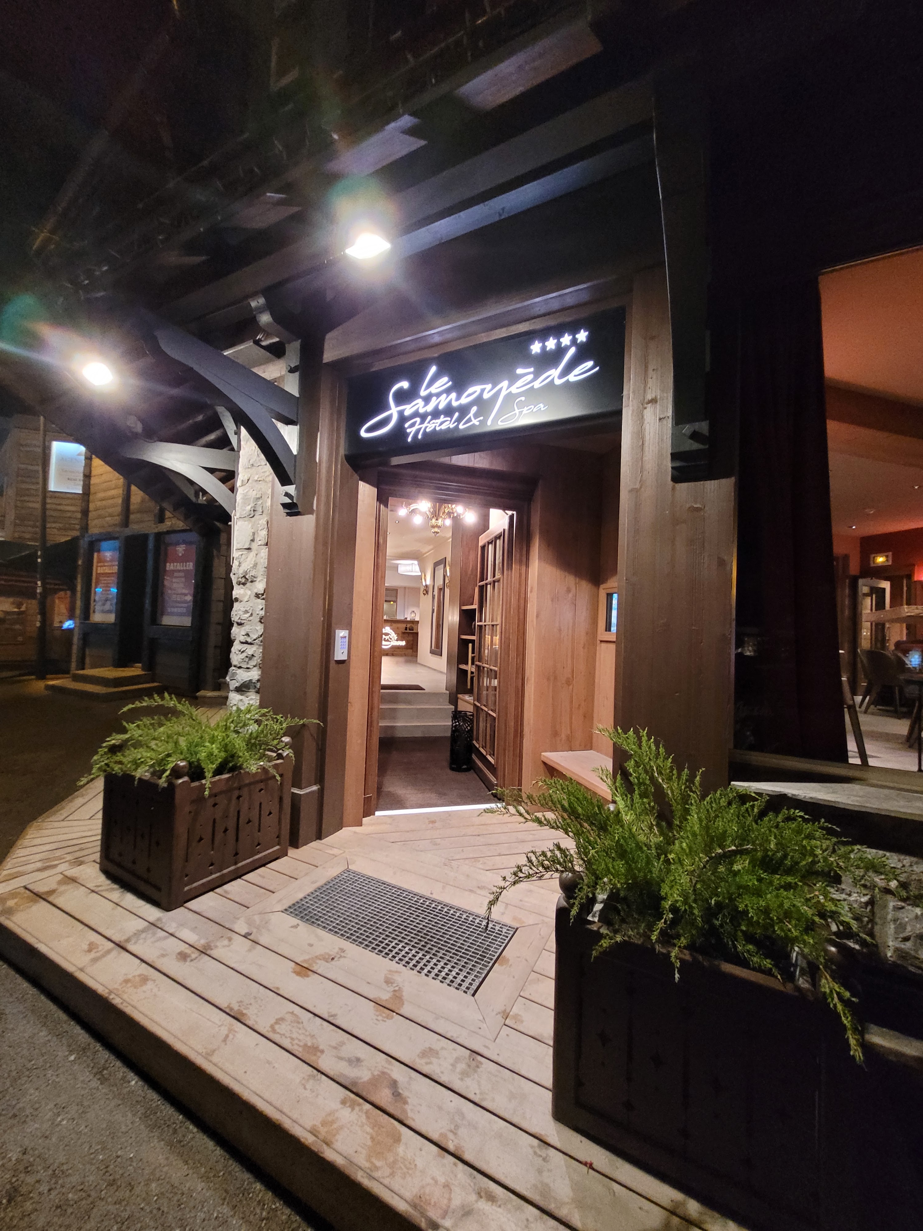 Nous louons régulièrement des chalets avec traiteur pour la semaine avec de grands groupes de 20 personnes. Cependant, avec Covid et les temps actuels, nous n'étions que 4 prêts à voyager, nous avons donc décidé de ne pas suivre notre pratique habituelle et avons opté pour un hôtel. L’Hôtel Le Samoyède n’a certainement pas déçu. La nourriture était incroyable et c'était un bon repas tous les soirs. Ce fut un énorme point positif pendant notre séjour, mais le facteur le plus agréable était probablement les propriétaires et le personnel extraordinaires. De haut en bas, tout le monde était super agréable et professionnel et nous avons tous réservé notre voyage de retour l'année prochaine. Je recommande vivement cet hôtel