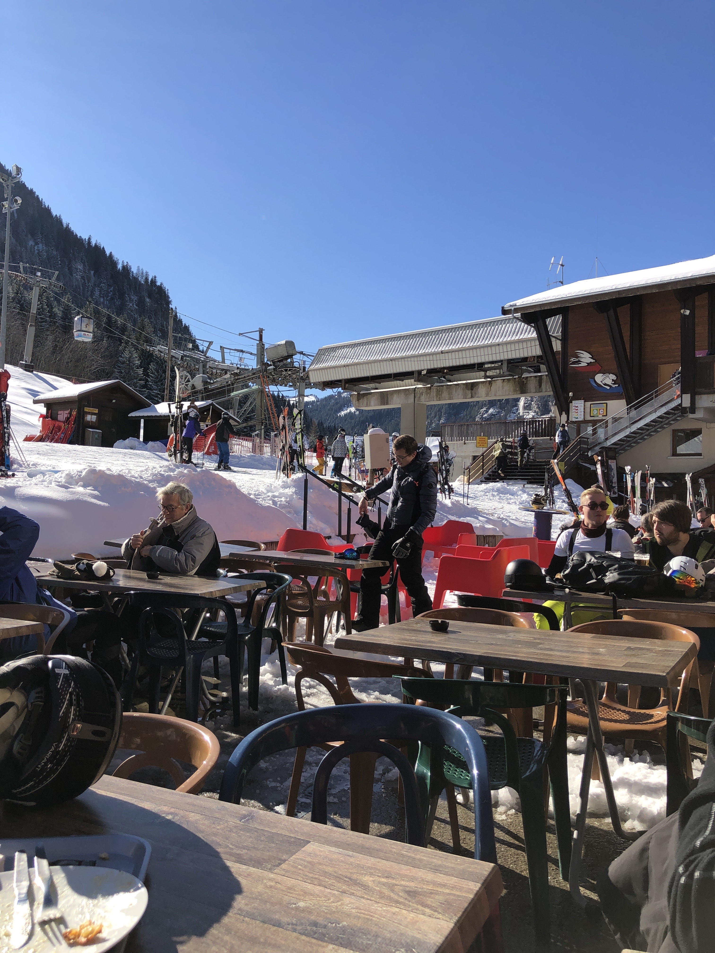 Bel endroit pour prendre une bière après le ski. Agréable terrasse au soleil. Service parfois un peu hargneux. Juste à côté de l'ascenseur de la Linga. La distance jusqu'à Châtel est accessible à pied ou avec le bus gratuit. Grand parking juste devant la porte. S'il vous plaît 👍🏼